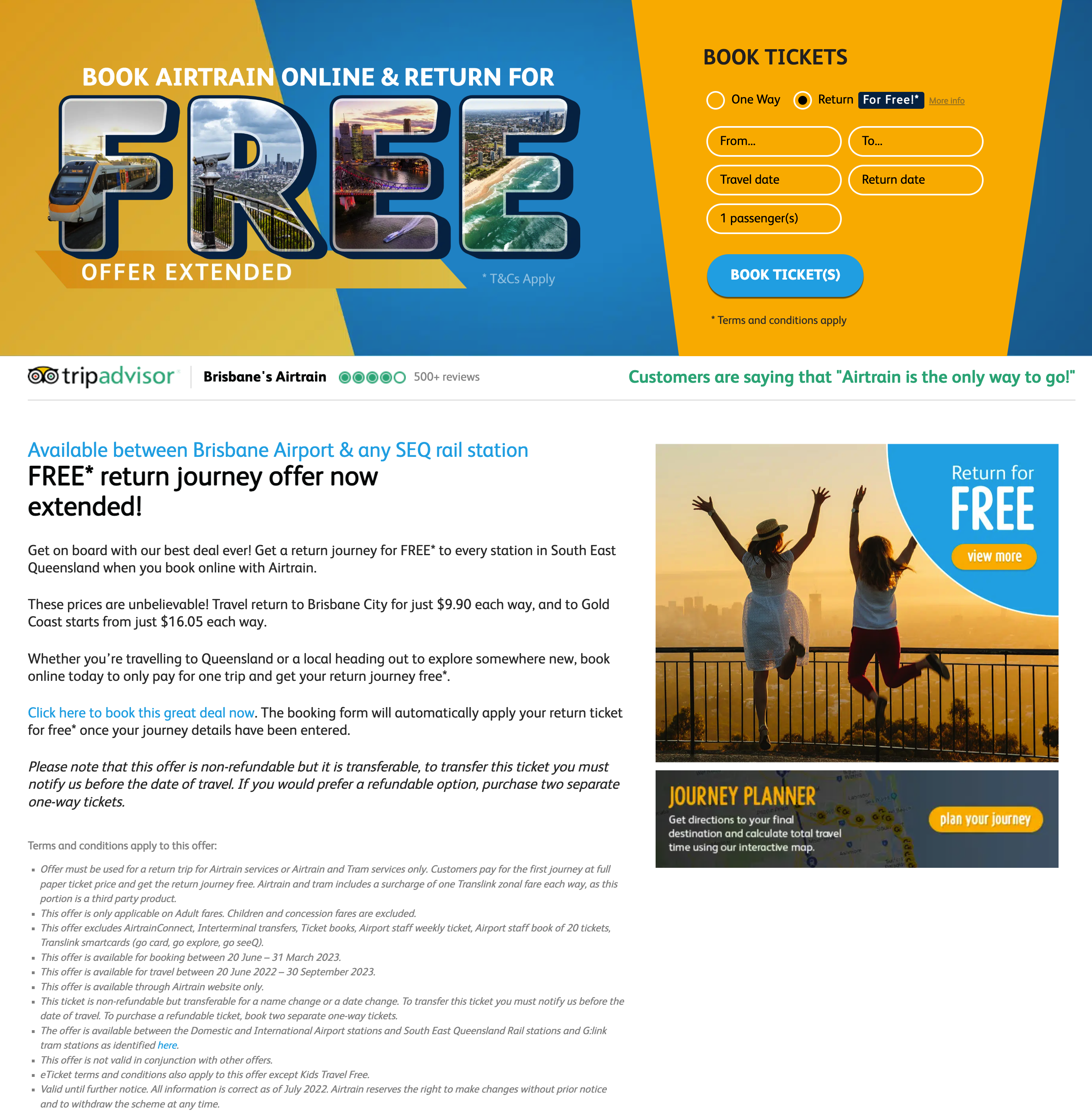 브리즈번 에어트레인 1+1 행사 페이지 (c) airtrain.com.au