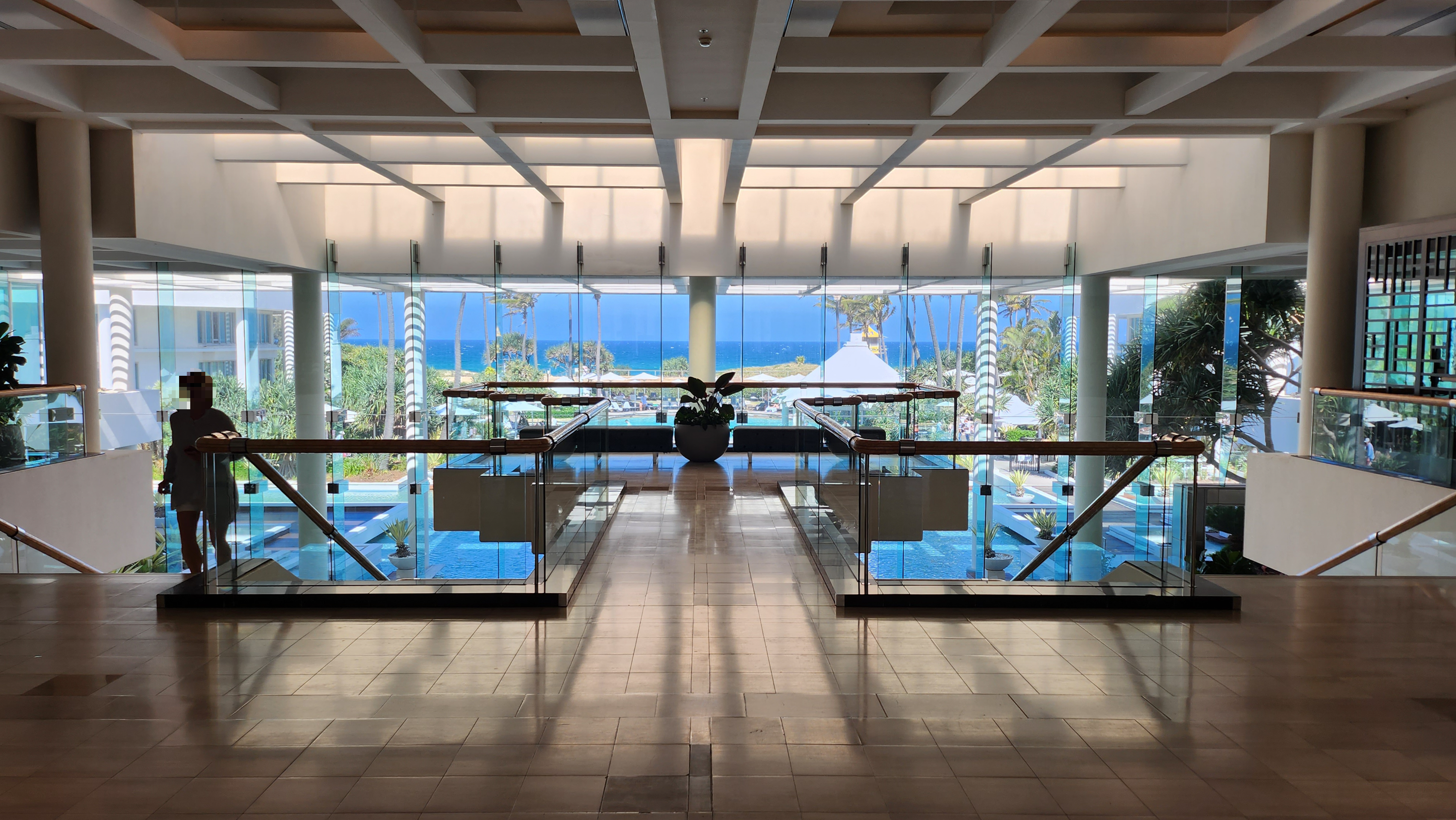 어쩌면 이러한 고생길 끝에 골드코스트의 호텔에 도착을 했기에 더 감동이 컸을 수도 있습니다만, 골드코스트에서 제가 묵었던 호텔, 쉐라콘 그랜드 미라지 리조트 골드코스트는 생각 이상으로 좋았습니다. 아, 이제부터는 호텔이 아닌 리조트라고 칭해야겠네요. 위의 사진이 33시간이 넘게 걸려 도착해서 리조트 로비에서 처음으로 봤던 뷰입니다. 저 뷰를 보자마자 딱 한 생각이 들었습니다. 아씨, 드디어 도착했다.
