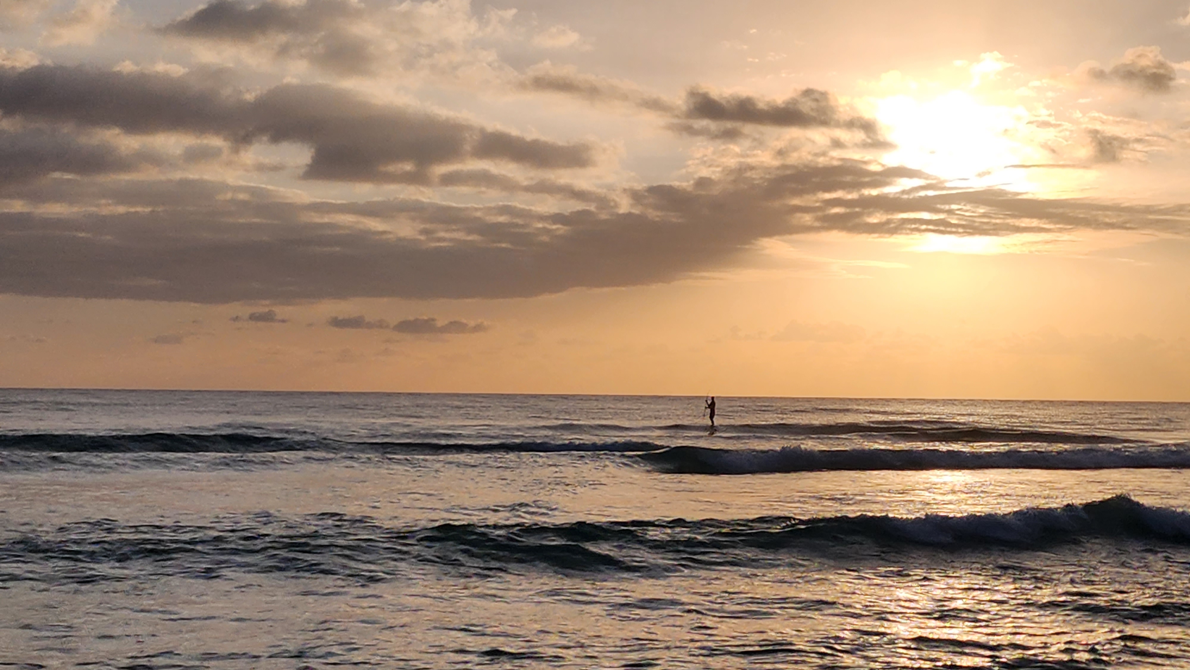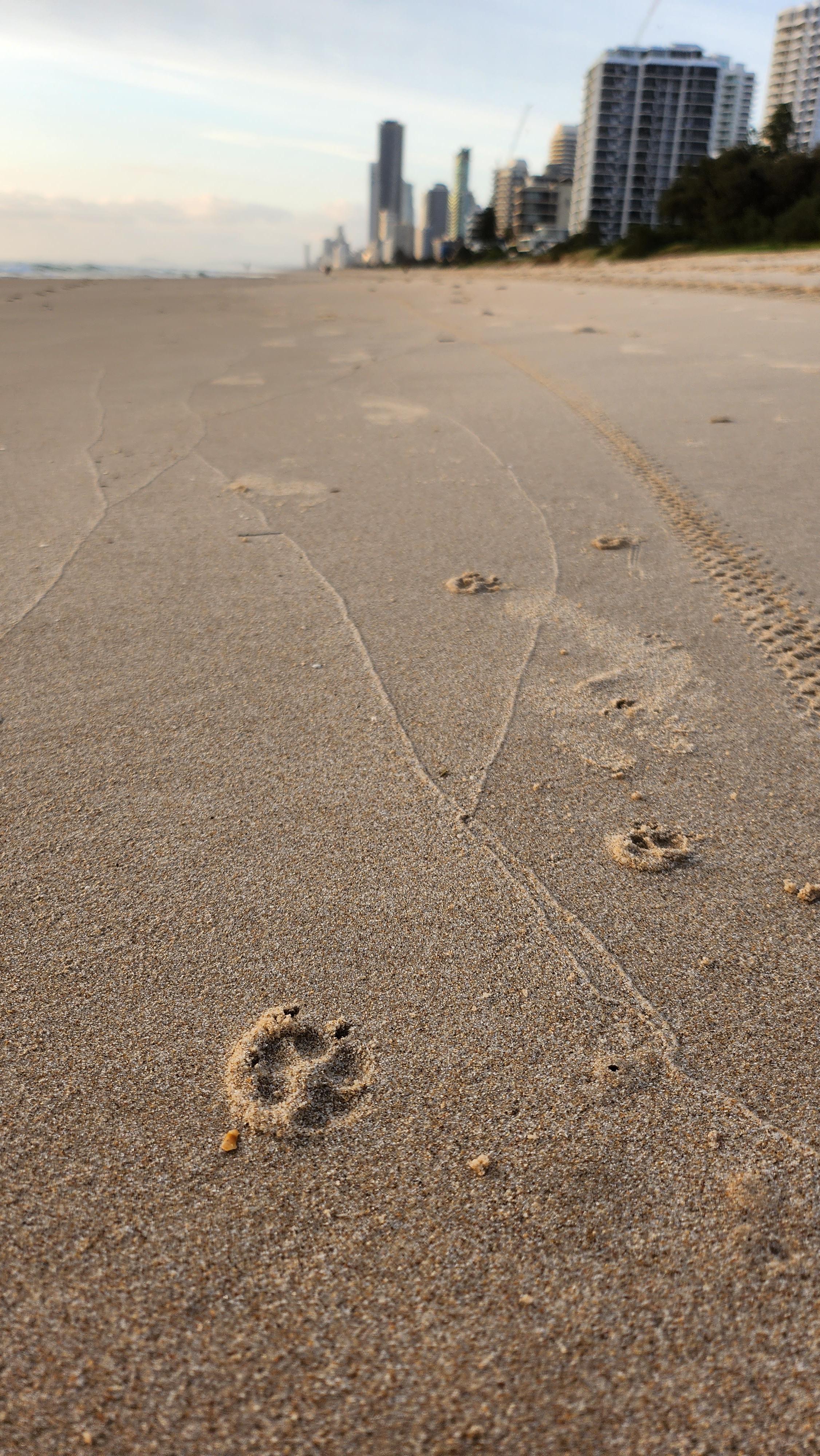 해가 뜬 직후의 골드코스트 텍사스 오스틴은 서머타임이 끝나기 전인 11월 초에는 해가 거의 8시가 다 되어서야 뜨고, 서머타임이 끝난 직후인 11월 중순이 되어도 7시가 되어서야 해가 뜨곤 합니다. 아침에 출근을 하는 시간인 6시 30분 정도에는 거리에도 공원에도 많은 사람을 찾아보기 힘듭니다. 이 시간에 보이는 사람은 아침 일찍 일을 시작하는 공사장 인부들이 대부분입니다. 이곳, 골드코스트의 시간은 이제 겨우 5시를 넘기고 있지만 이미 골드코스트의 해변은 사람들이 꽤 보입니다. 아침 산책을 나온 사람들도, 아침 운동을 나온 사람도, 신난 멍멍이도 있습니다. 다른 곳이었다면 해가 뜨고 얼마 지나지 않아 해변을 떴겠지만, 지금만큼은 로컬 사람들처럼 해변을 거닙니다. 벌써부터 바다에 몸을 맡기는 사람들도 있습니다. 밀려올듯 밀려오지 않을 듯하다가 큰 파도와 함께 제 발목 위까지 덮는 얕은 바닷물이 포근하게 느껴집니다. 수영복을 가져오지 않은 게 못내 아쉽습니다.