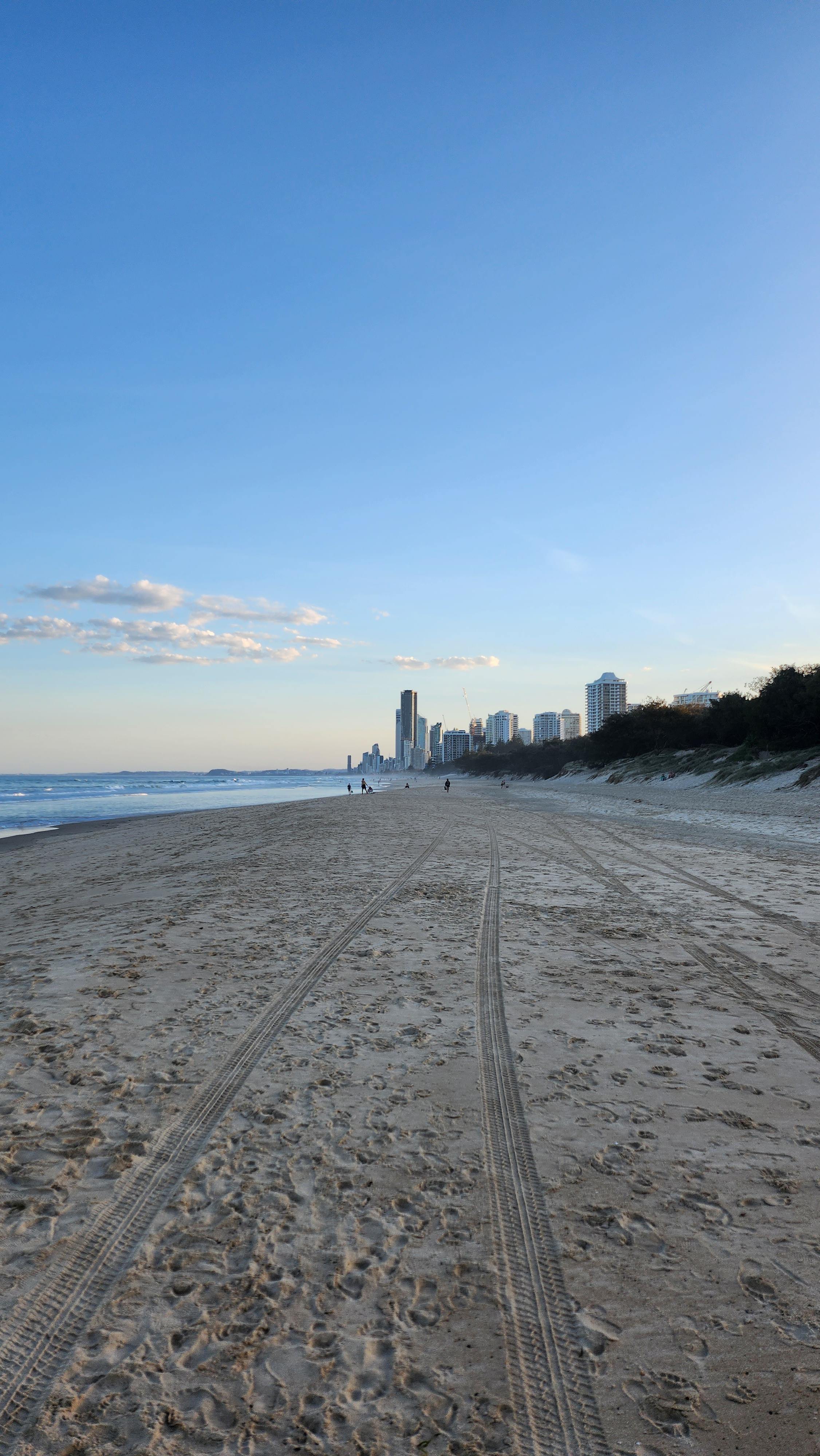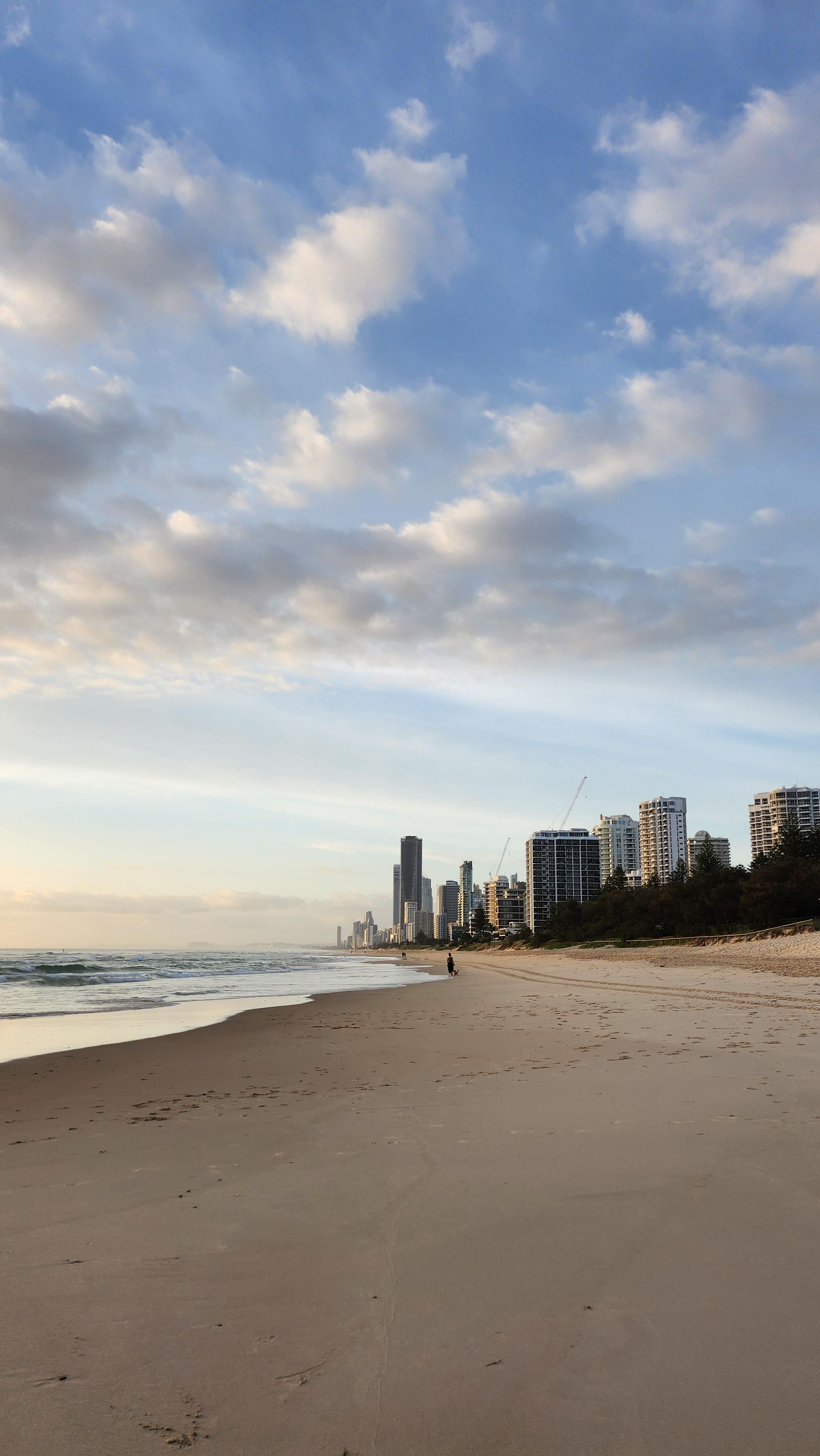 골드코스트의 해변에 발을 내딛으니 따뜻하고 고운 모래가 두발을 슬며시 품습니다. 앞으로는 끝없이 펼쳐진 거대한 태평양이 보이고 양 옆으로도 끝을 가늠할 수 없을 정도로 긴 모래사장이 두 눈에 담깁니다. 동해의 바다가 깨끗하면서 약간은 시원한 느낌이라면, 골드코스트의 바다는 거대하면서도 따스한 느낌입니다. 해변을 따라 밀려드는, 규칙적인 척하면서도 중구난방인 파도는 왜 골드코스트가 서핑으로 유명한지 말해줍니다. 긴 시간 동안 좁은 비행기와 기차, 버스에서 갑갑했던 마음이 탁 트인 바다를 보니 조금은 여유로워집니다. 이제 6시가 다 되어가는 시간이지만 벌써 골드코스트의 해는 뉘엿뉘엿 넘어갑니다.