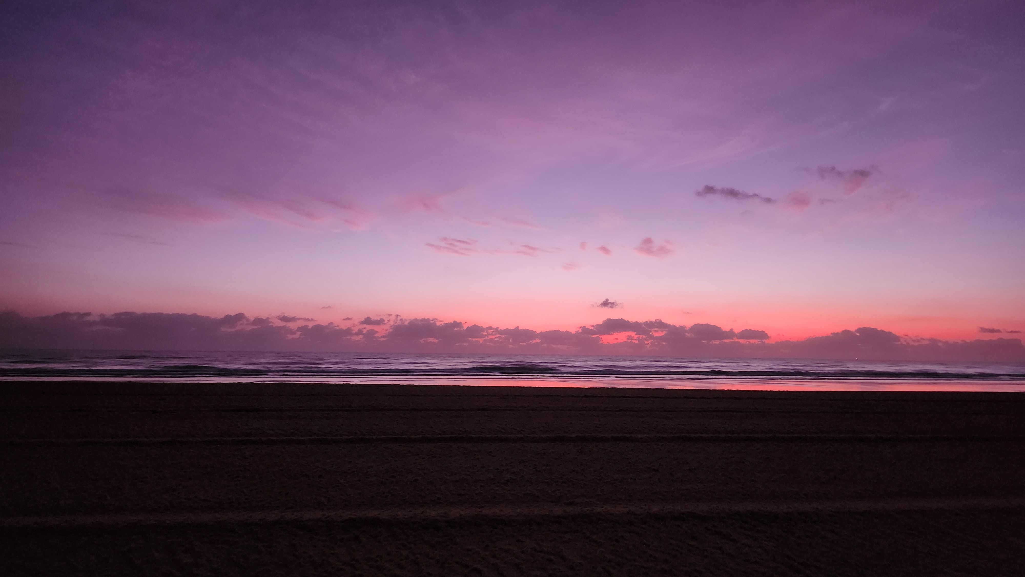 골드코스트 해변의 해 뜨기 40분전(좌), 해 뜨고 15분 후 (우) 제가 머무르던 날, 골드코스트에서는 해가 새벽 4시 45분에 뜹니다. 골드코스트의 일출을 보기 위해 3시 30분에 일어나 해변으로 향합니다. 밤사이에 모래를 고르는 차량이 몇 번 지나가서인지 모래가 반듯하게 펼쳐져 있습니다. 평평한 모래에 발자국을 남기며 걷습니다. 해변에는 몇몇 사람들이 이미 시간을 보내고 있습니다. 해가 뜨는 시간이 조금씩 가까워지면서 하늘은 보랏빛으로 물듭니다. 하루 중 가장 추운 이 시간에 세상은 가장 따뜻한 빛깔로 물듭니다. 해 뜨는 시간이 점점 다가오며 따뜻하던 세상은 조금씩 밝아집니다. 어느 순간부터 하늘은 파란색으로 바뀝니다. 해가 뜨는 순간입니다. 오늘도 동쪽에서 서쪽으로 갈 길이 먼 해는 뜨자마자 눈에 띌 정도로 위로 올라갑니다. 해가 제 갈길을 갈수록 세상은 맑아집니다. 잘 보이지 않던 서퍼스 파라다이스와 브로드비치의 고층 건물들이 햇빛을 반사하며 밝게 빛납니다. 본격적인 아침의 시작입니다.