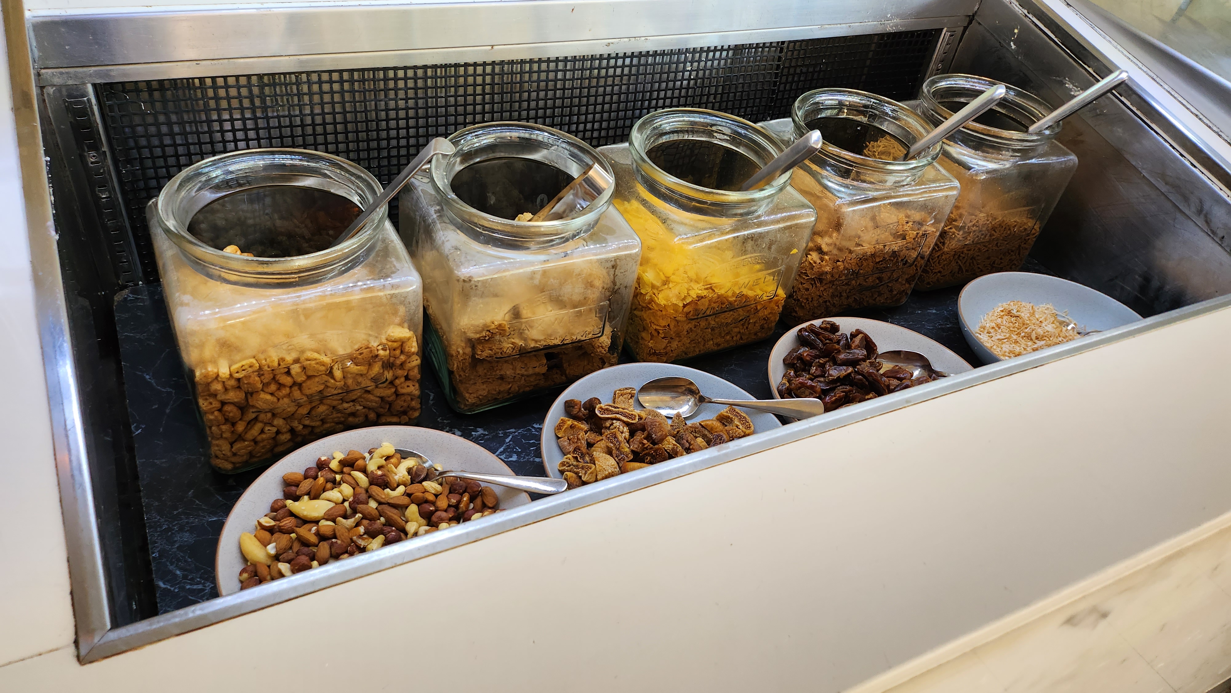 쉐라톤 골드코스트 리조트의 조식은 뷔페 또는 단품으로 주문할 수 있습니다. 조식 뷔페의 가격은 호주달러로 $48, 조식 단품 메뉴들은 호주달러로 $20 부근부터 시작하는데, 단품을 주문하는 것보다는 차라리 뷔페를 선택하는 게 더 나은 선택인 듯 보입니다. 리조트의 조식은 아침 6시에 시작합니다. 하루는 시차 적응이 되지 않아, 다른 하루는 일출을 보기 위해 새벽 3~4시에 일어난 저는 조식 시작 시간인 6시가 되지 마자 조식이 제공되는 식당으로 발걸음을 옮깁니다. 이제 막 시작한 시간이라 식당에는 사람이 많지 않습니다. 조식 뷔페는 대략 5개 정도의 섹션으로 구성이 되어 있습니다. 가장 먼저 빵 종류가 진열되어 있는 베이커리 섹션, 샐러드와 과일, 햄, 치즈 등이 있는 콜드 섹션, 베이컨, 소시지, 구운 토마토, 구운 버섯 등이 있는 핫푸드 섹션, 원하는 스타일대로 계란을 조리해주는 에그 스테이션과 견과류, 주스 등이 있는 섹션입니다.