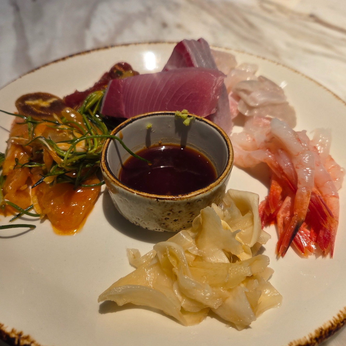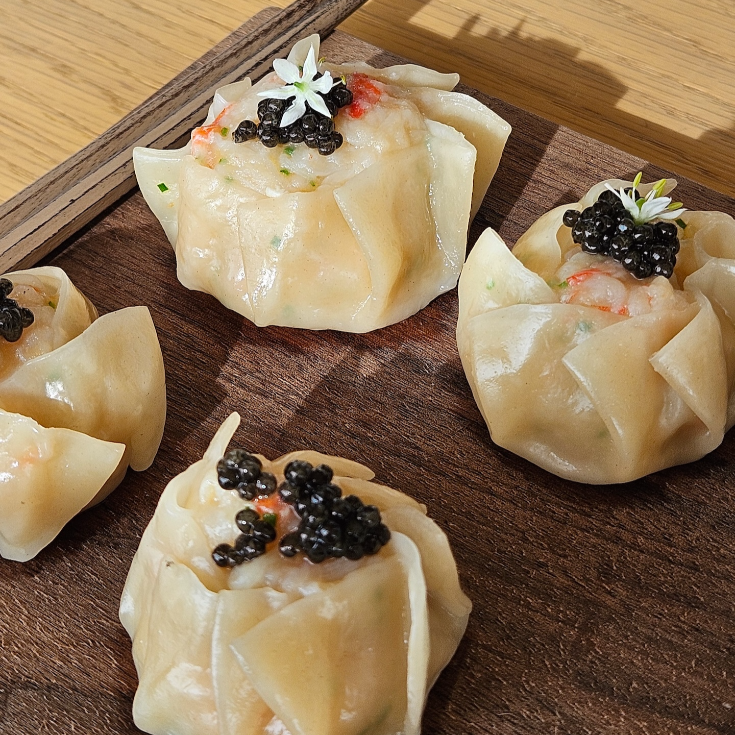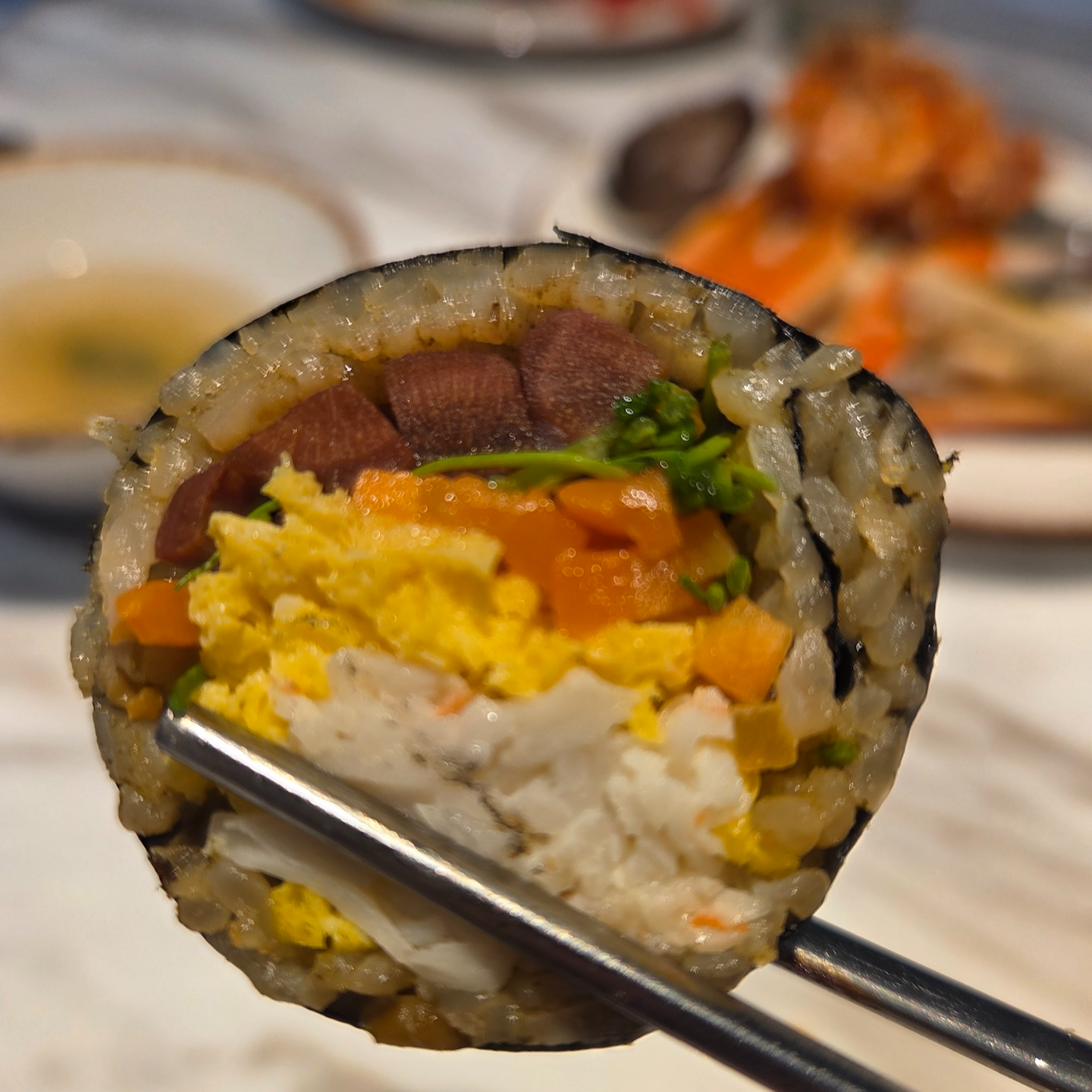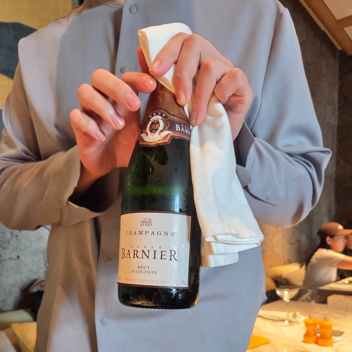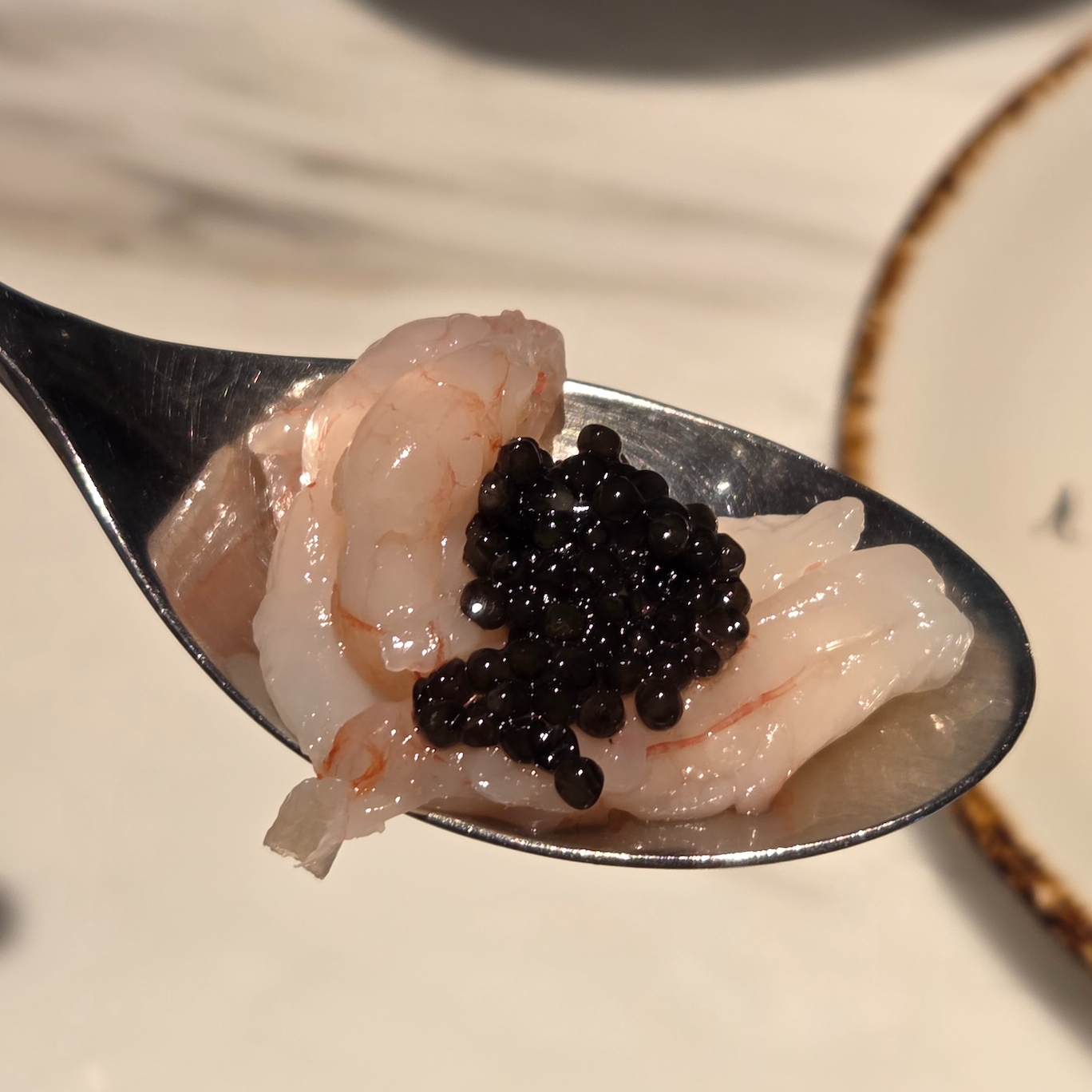 가장 먼저 제공되는 샴페인은 로저 바르니에 셀렉시옹 브뤼입니다. 로저 바르니에는 프랑스 샹파뉴 지방에서 6대째 이어져 온 가족 경영 샴페인 하우스로, 단순한 축배용 샴페인이 아닌 음식과 함께 즐기는 가스트로노믹 샴페인을 지향하는 브랜드입니다. 셰프 출신 창립자의 철학답게 포도 본연의 풍미와 산미의 균형을 중시하며, 과하지 않은 스타일로 요리와의 조화를 가장 중요한 가치로 삼고 있습니다. 로저 바르니에 셀렉시옹 브뤼는 하우스 스타일을 가장 잘 보여주는 논빈티지 샴페인으로, 샤르도네 중심의 블렌딩(샤르도네 60%, 피노 뮈니에 30%, 피노 누아 10%)과 충분한 효모 숙성을 통해 신선함과 깊이를 동시에 갖춘 것이 특징입니다. 화사한 시트러스와 흰 과일 향, 깔끔한 미네랄 피니시가 인상적이며 해산물이나 담백한 요리와 잘 어울려, 해산물 위주의 브런치 로얄 구성과도 잘 맞는 샴페인이었습니다. 캐비어로는 프루니에 캐비어 바에리 제품이 제공되었는데, 어린 시베리안 철갑상어로 만든 캐비어입니다. 최상급 캐비어라고 할 수는 없지만 알은 작아도 텍스처가 섬세하고 크리미한 맛이 나쁘지 않았습니다. 캐비어는 김밥과 함께 제공되었는데, 김밥의 간이 세지 않아 캐비어와 곁들여 먹기에는 무난했지만 아주 완벽한 페어링이라는 느낌까지는 아니었습니다. 참고로 샴페인은 무제한 제공되지만 캐비어는 리필되지 않습니다.