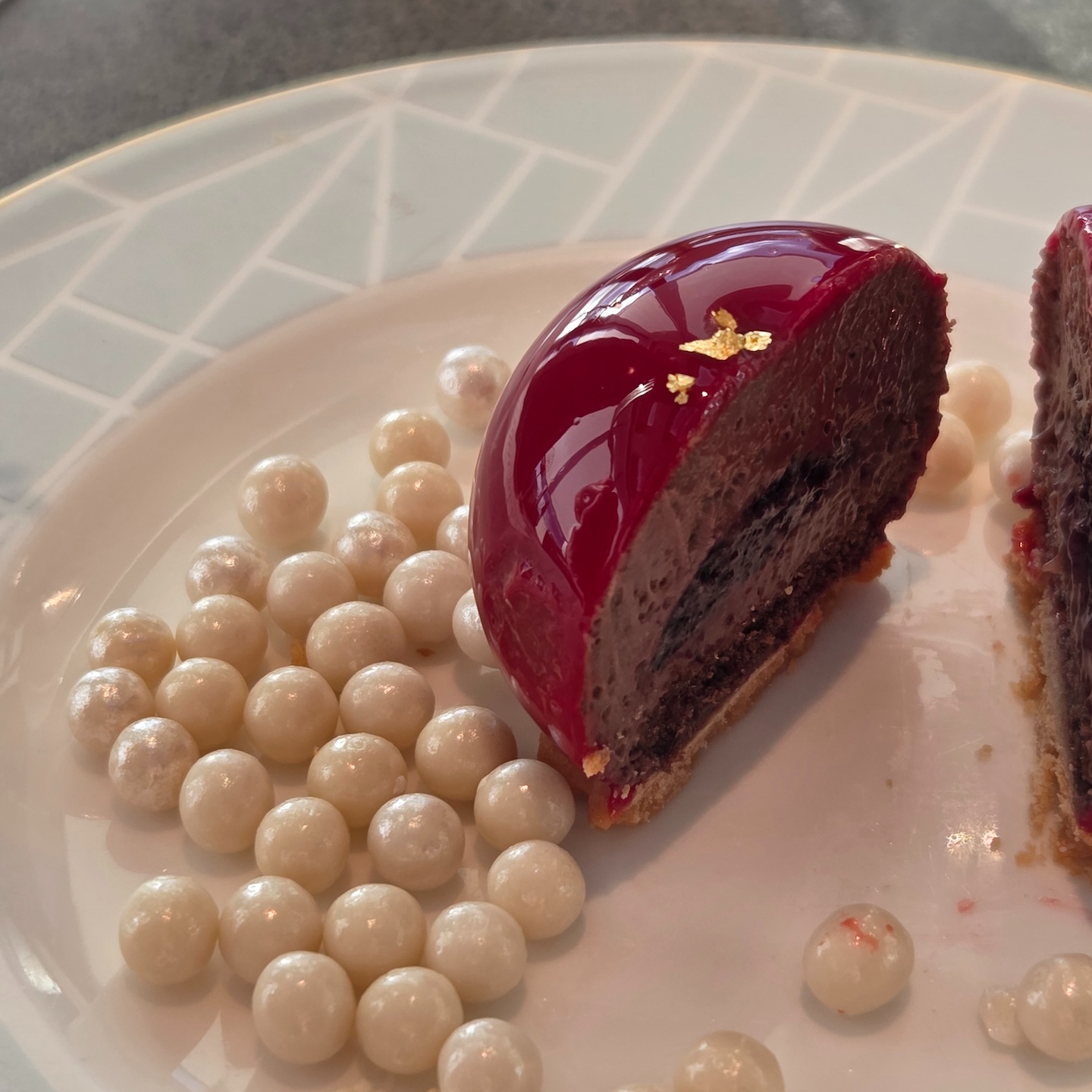 스윗한 디저트는 총 6가지가 제공되었습니다. 첫 번째는 피스타치오 파리브레스트로, 슈 페이스트리와 피스타치오 크림의 고소함, 커스터드의 부드럽고 진한 계란 향, 그리고 아래 깔린 진주 초콜릿의 식감과 달달함이 잘 어울리는 디저트였습니다. 자칫 약해질 수 있는 피스타치오 맛은 구운 피스타치오를 더해 향과 풍미를 충분히 살려 둔 점이 좋았습니다. 이 디저트는 세트 중 가장 화려한 메뉴였는데, 연말의 화려한 분위기를 표현한 디저트라고 설명해주셨고, 위에 ‘Moment’라는 글씨가 적힌 화이트 초콜릿을 더해 ‘기억’이라는 주제도 자연스럽게 전달해줬습니다. 딸기 쇼트케이크는 가장 클래식하고 평범한 디저트였지만, 딸기의 상큼함과 바닐라 크림의 부드럽고 달달한 맛이 무난하게 잘 어울렸습니다. 블랙 포레스트는 이곳의 시그니처인 다크초콜릿 무스 케이크로, 아일랜드 키친 점심/저녁 뷔페에서도 먹을 수 있는 디저트입니다. 한 입 먹으면 체리 향이 먼저 올라오고, 부드럽고 달달한 초콜릿 무스와 바삭한 쿠키가 잘 어우러지는 디저트였습니다. 다음은 한라산에 눈이 온 모습을 표현했다는 레몬 파운드 케이크였는데, 레몬의 상큼함과 유자의 톡톡 튀는 캐릭터에 더해 파운드 케이크 특유의 적당한 달달함이 잘 느껴졌습니다. 딸기 타르트는 바삭한 쉘 안의 커스터드 크림의 달달함, 위에 올라간 딸기의 상큼함, 그리고 맨 위 라임 젤리의 시트러스함이 균형감 있게 어울렸습니다. 마지막 디저트는 애플 크럼블 파이로, 사과의 달달함과 견과류의 고소함, 바닐라의 달달함이 클래식한 여운을 남기는 디저트였습니다.