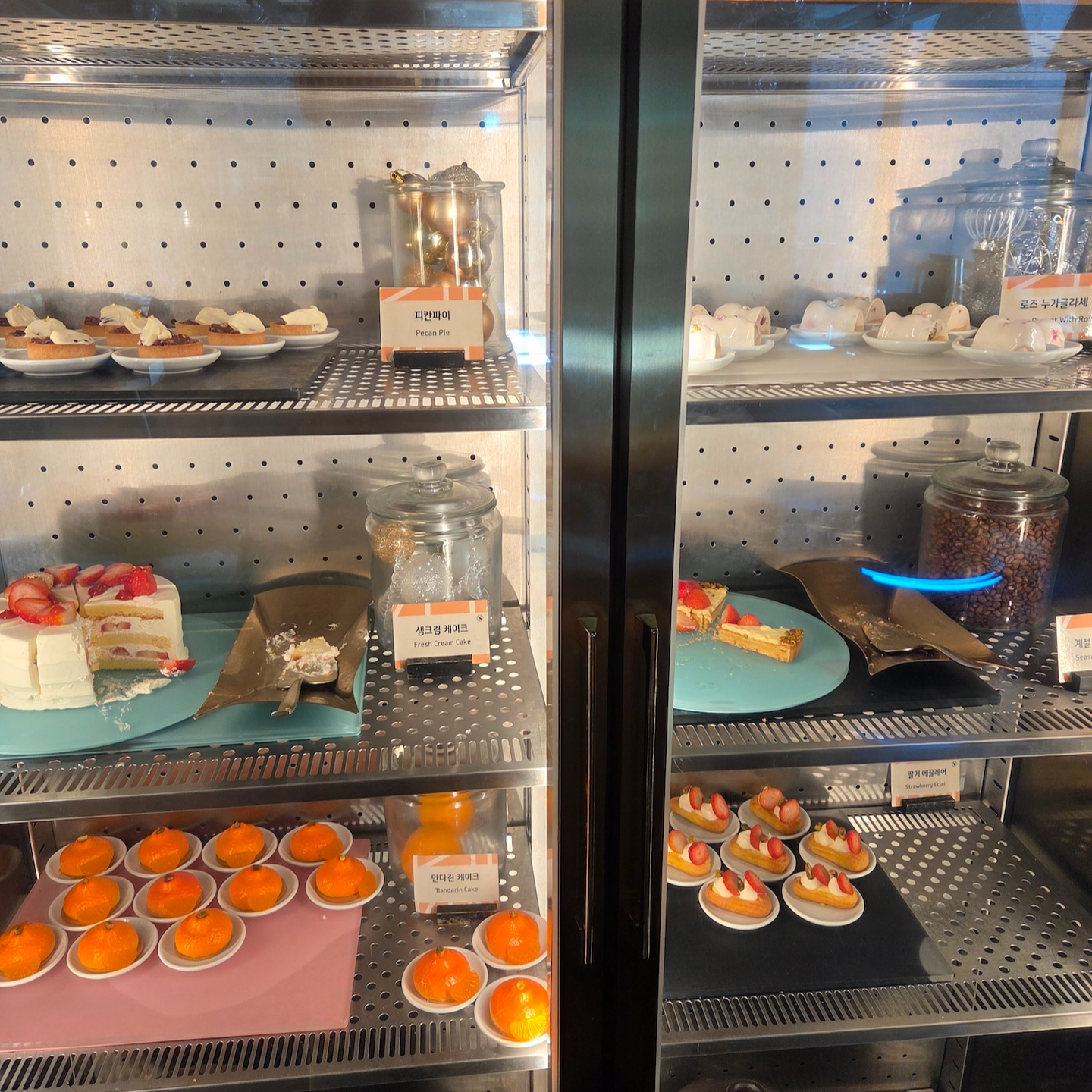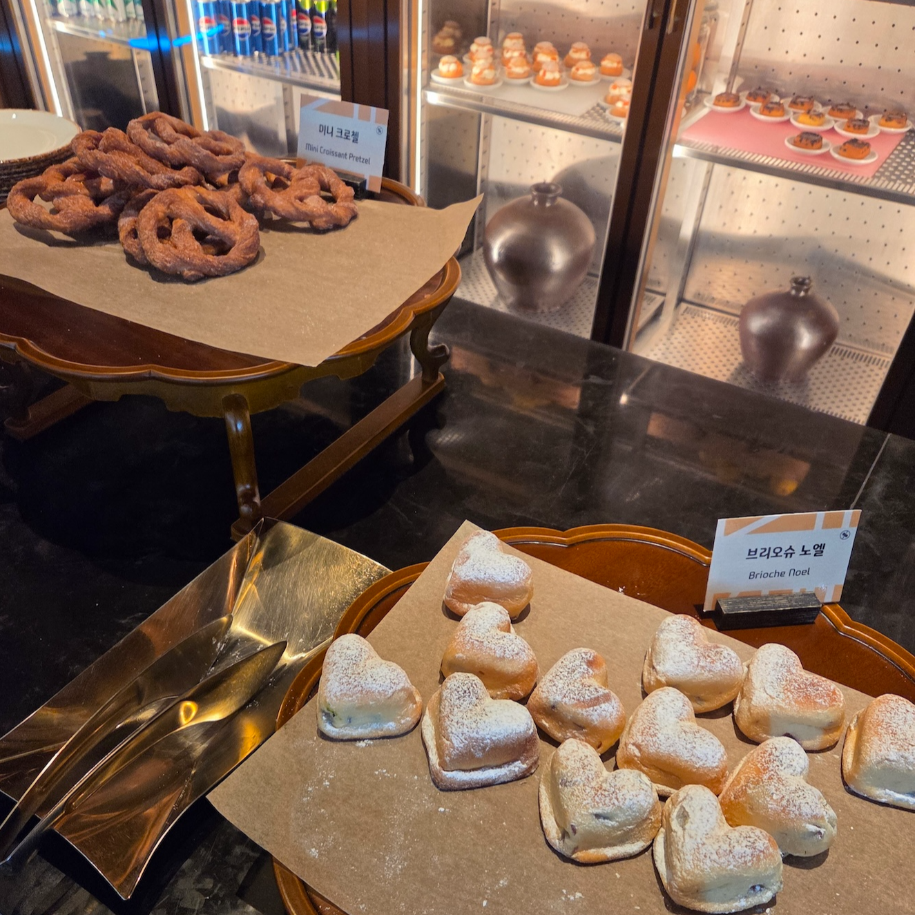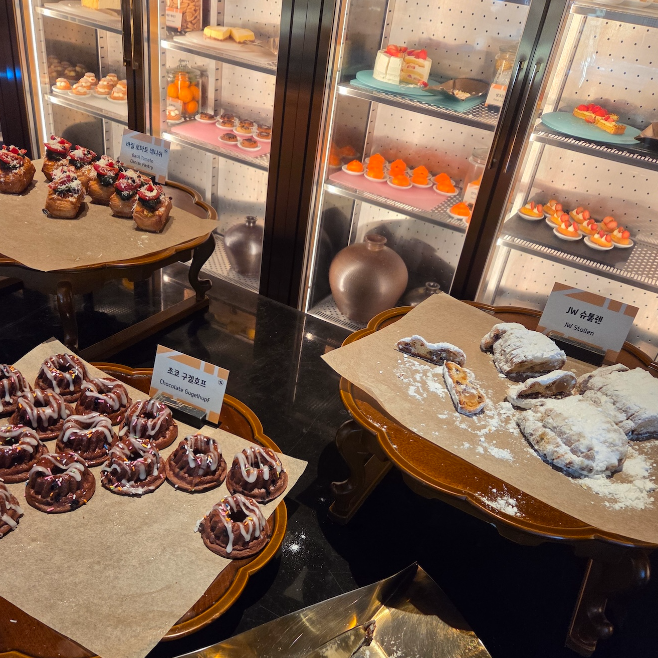 베이커리류로는 미니 크로첼, 브리오슈 노엘, JW 슈톨렌, 바질 토마토 대니쉬, 초코 구겔호프, 티라미수, 레몬 케이크, 오렌지 슈, 블랙 포레스트, 치즈 케이크, 티그레, 피칸 파이, 로즈 누가 글라세, 생크림 케이크, 만다린 케이크, 딸기 에끌레어 등이 있었습니다.