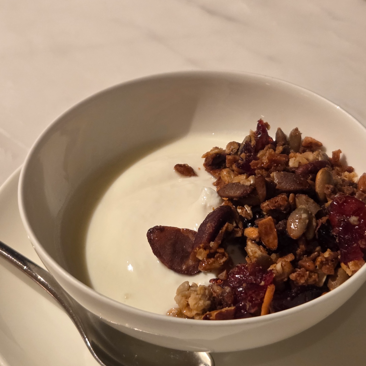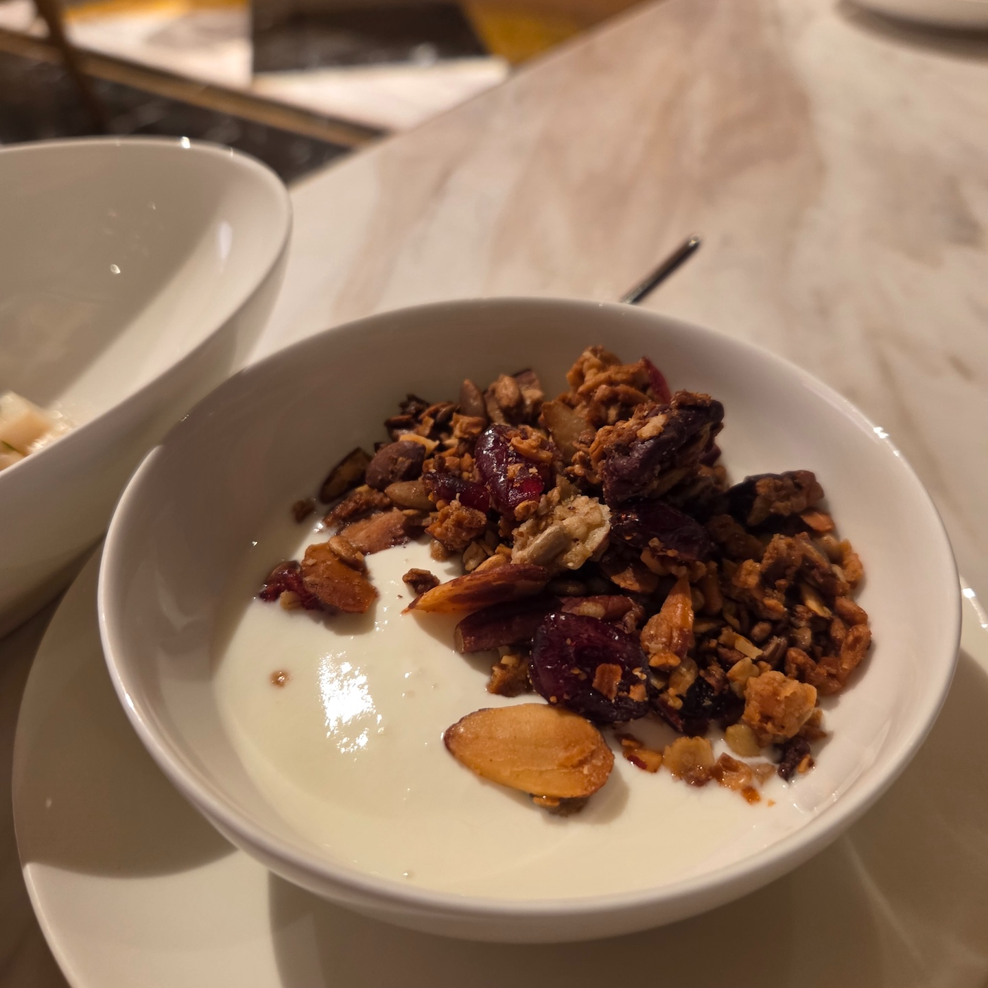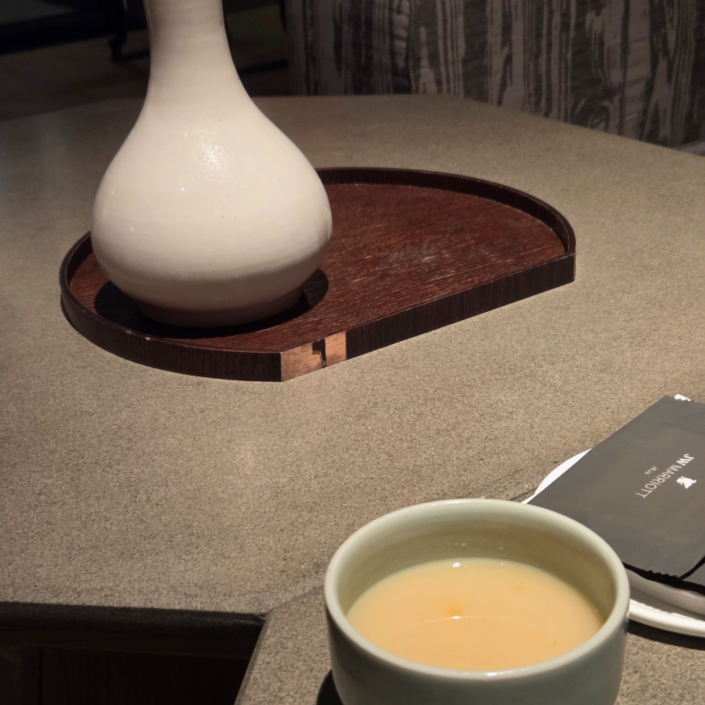 다만 아쉬운 점이 전혀 없었던 것은 아닙니다. 첫 번째는 JW 반상에 포함된 솥밥류 전반에 참기름 향이 다소 강해, 어떤 솥밥을 선택하더라도 참기름 향이 지배적으로 느껴졌다는 점입니다. 함께 투숙한 일행과 서로 다른 솥밥을 먹어봤지만, 담백함이 살았으면 더 좋았을 영양 솥밥에서도 참기름 향이 강해 다른 맛이 잘 느껴지지 않았습니다. 이 부분 때문에 저는 첫날 이후 솥밥 메뉴를 추가로 선택하지 않았습니다. 또 하나는 디저트 제공 타이밍인데, 세트 메뉴가 코스처럼 제공되는 흐름임에도 불구하고 메인을 절반도 먹기 전에 디저트가 나오는 경우가 3일 내내 반복되어 다소 의아하게 느껴졌습니다. 메인과 함께 제공되었다면 상관없었겠지만, 아직 식사가 진행 중인 상황에서 디저트가 먼저 나오니 자칫 ‘식사를 서두르라는 신호’처럼 받아들여질 수도 있겠다는 생각이 들었습니다. 아주 사소한 부분일 수는 있지만, 호텔의 전반적인 지향점과 완성도를 생각하면 조금 더 세심했으면 좋겠다고 느껴진 부분이었습니다.