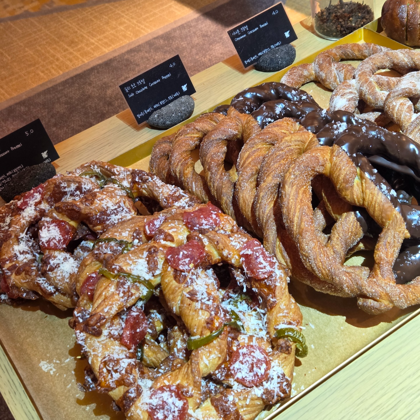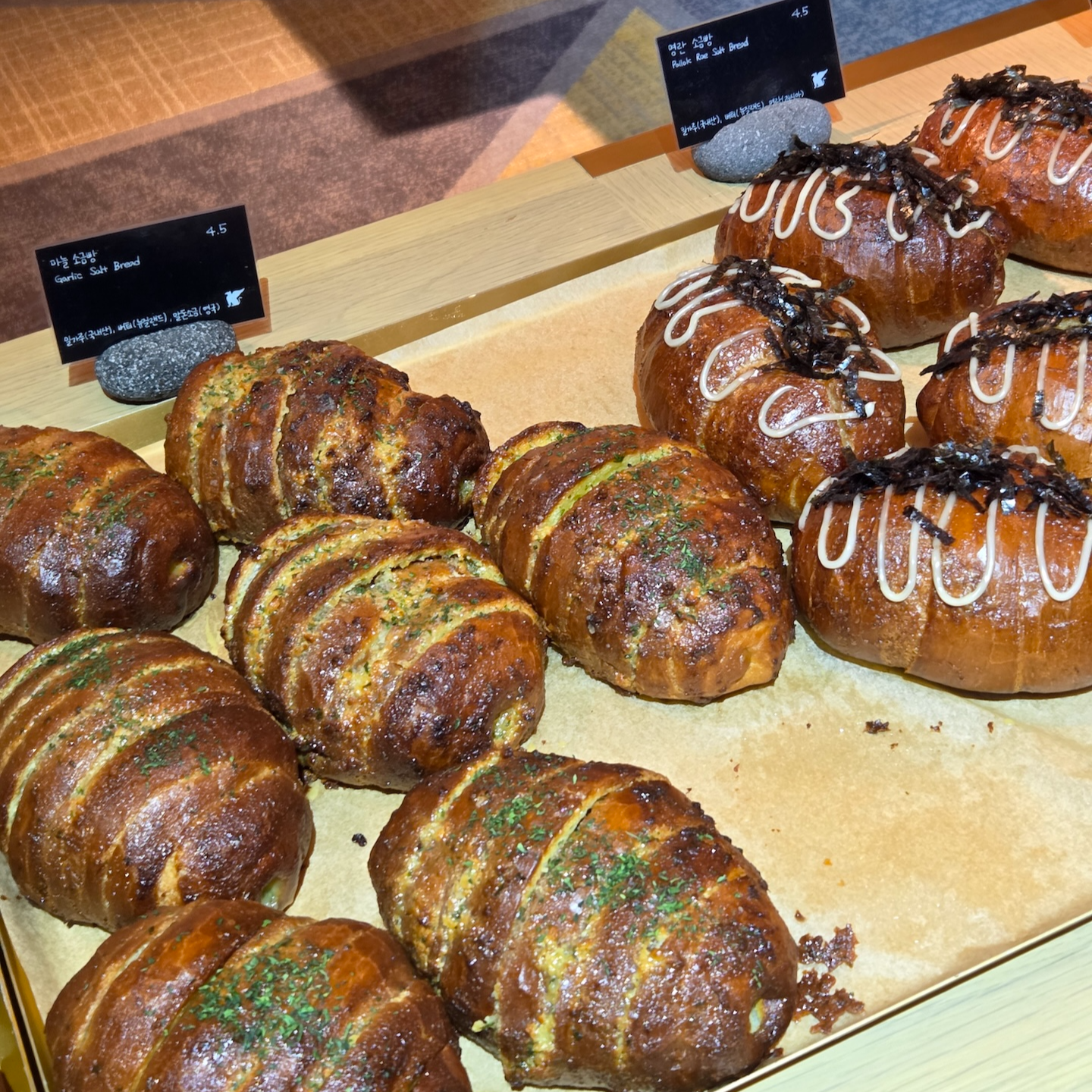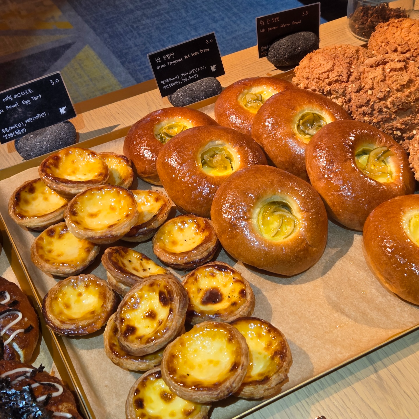 댄싱 두루미는 체크인 로비가 있는 건물 6층에 위치한 베이커리로, 오전 10시부터 오후 8시까지 운영합니다. 댄싱 두루미에서는 생소하면서도 인상적인 다양한 빵들을 판매하는데, 당장 떠오르는 것만 해도 딸기 말차 카이막 대니쉬, 잠봉 포카치아, 청귤 단팥빵, 우도로 간 소보로, 단팥 말차 크루아상 등이 있을 정도입니다. 직원분께서 말씀하시길 오후가 되면 인기 메뉴들은 품절되는 경우가 많다고 하니, 당장 먹지 않더라도 일찍 들러 마음에 드는 빵이 있으면 미리 사두는 것도 좋을 것 같습니다.
