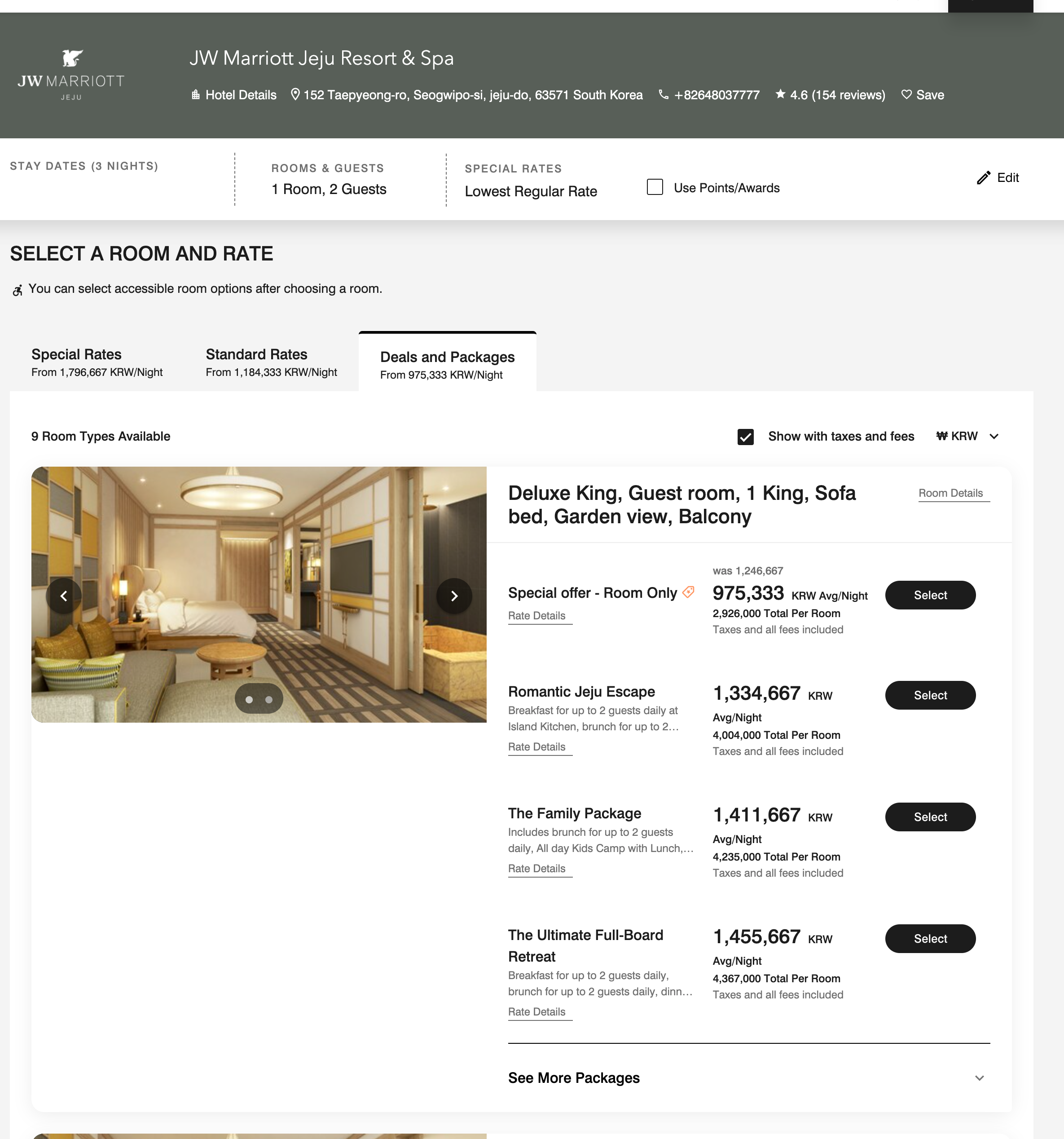 JW 메리어트 제주 리조트 & 스파의 게스트룸 패키지 종류 1 (c) marriott.com