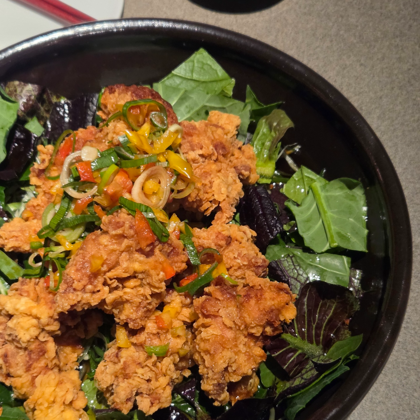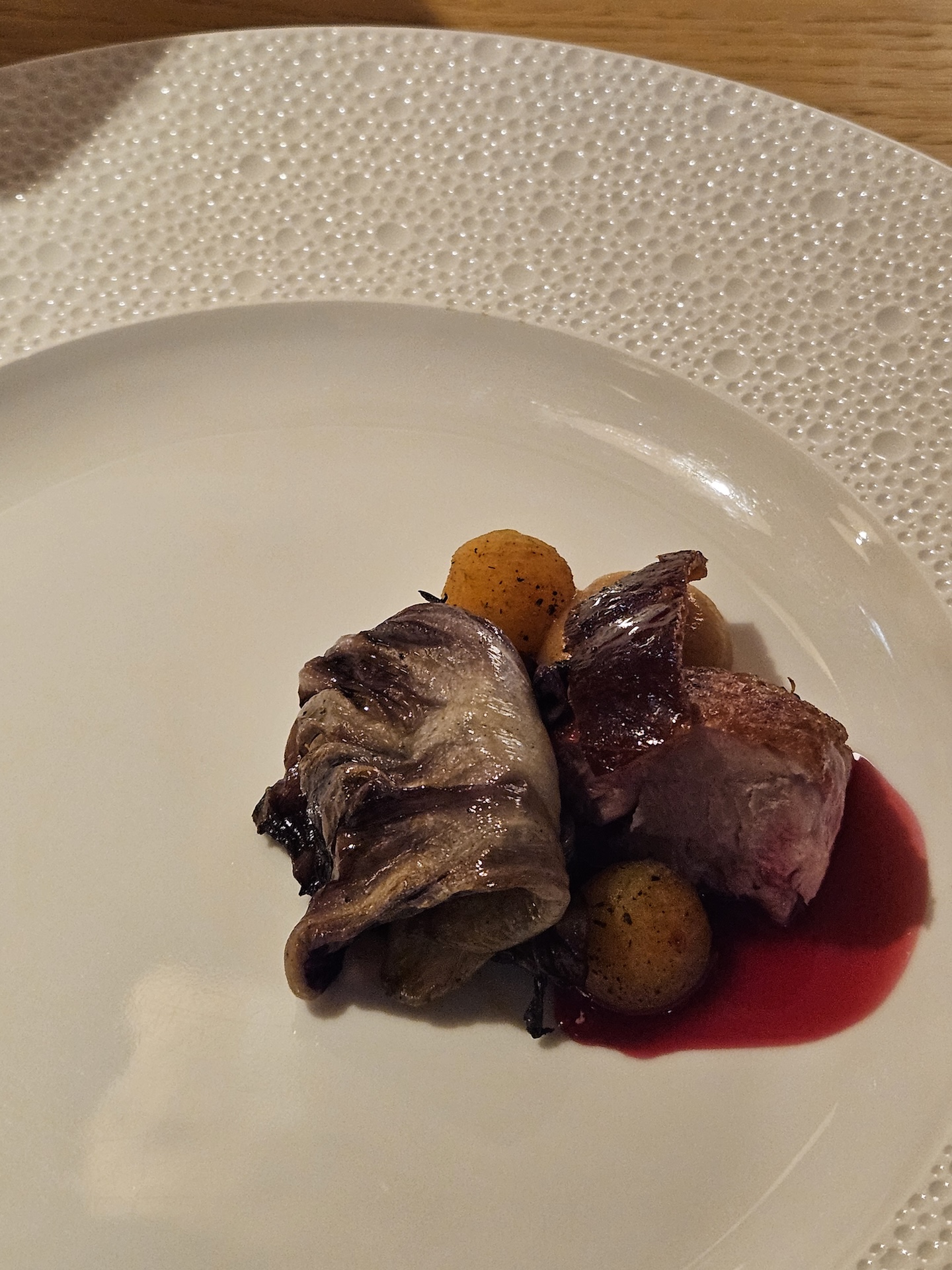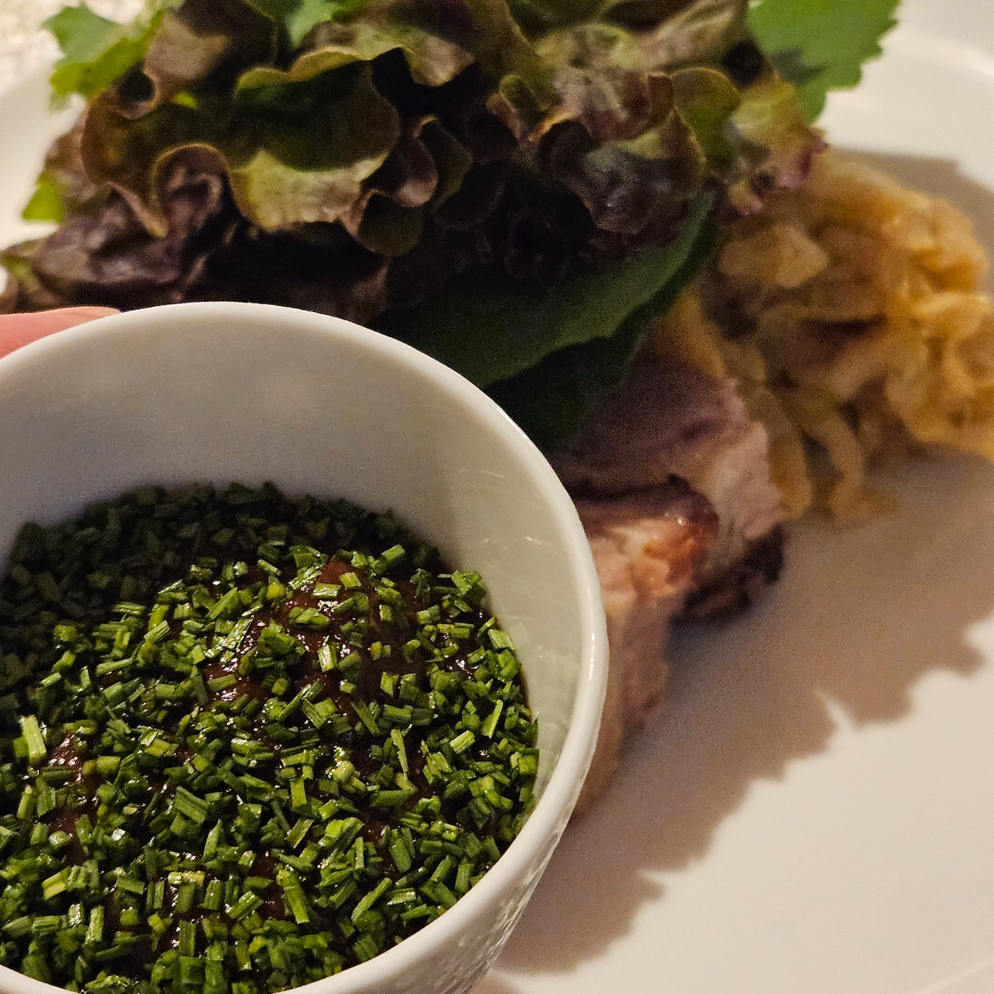가장 먼저 기본 안주로 양배추와 간장 마요 소스가 나왔습니다. 겨울 양배추라 그런지 굳이 소스를 찍지 않아도 양배추 자체가 달고 맛있었고, 이 양배추는 리필이 계속 가능해서 좋았습니다. 마농 치킨 샐러드는 치킨 튀김옷이 너무 두껍지 않으면서 바삭했고 기름이 잘 빠져 느끼하지 않았으며, 속의 닭고기는 촉촉하게 잘 튀겨져 있었습니다. 간장 마늘 베이스 소스가 곁들여진 샐러드와 파와 함께 먹으면 느끼함이 거의 사라지면서 상큼하고 알싸한 맛이 치킨과 정말 잘 어울렸고, 소스의 뒷맛도 깔끔해서 술안주가 아니더라도 충분히 맛있었을 메뉴였습니다. 돔베고기는 오겹살 중에서도 오도독뼈가 들어 있는 좋은 부위를 사용한 데다가 삶기도 잘 되어 누린내가 없었고, 껍데기 부분은 쫀득하고 살은 부드러운 맛있는 수육이었습니다. 돔베고기 자체도 좋았지만, 더 인상적이었던 건 함께 나온 쌈채소와 쌈장이었습니다. 호텔에서 직접 운영하는 텃밭에서 따온 쌈채소라 아주 신선했고 채소 향도 좋았으며, 쌈장도 직접 담근 메주로 만들어서인지 기분 좋게 콩의 쿰쿰함이 느껴지는 맛있는 쌈장이었습니다