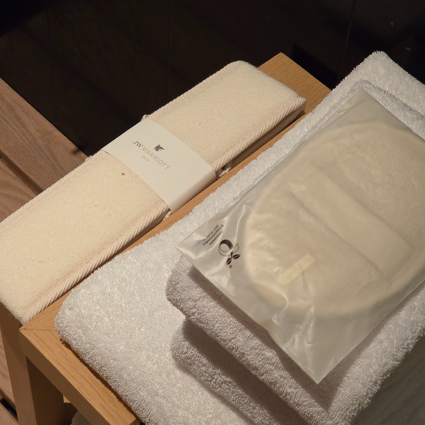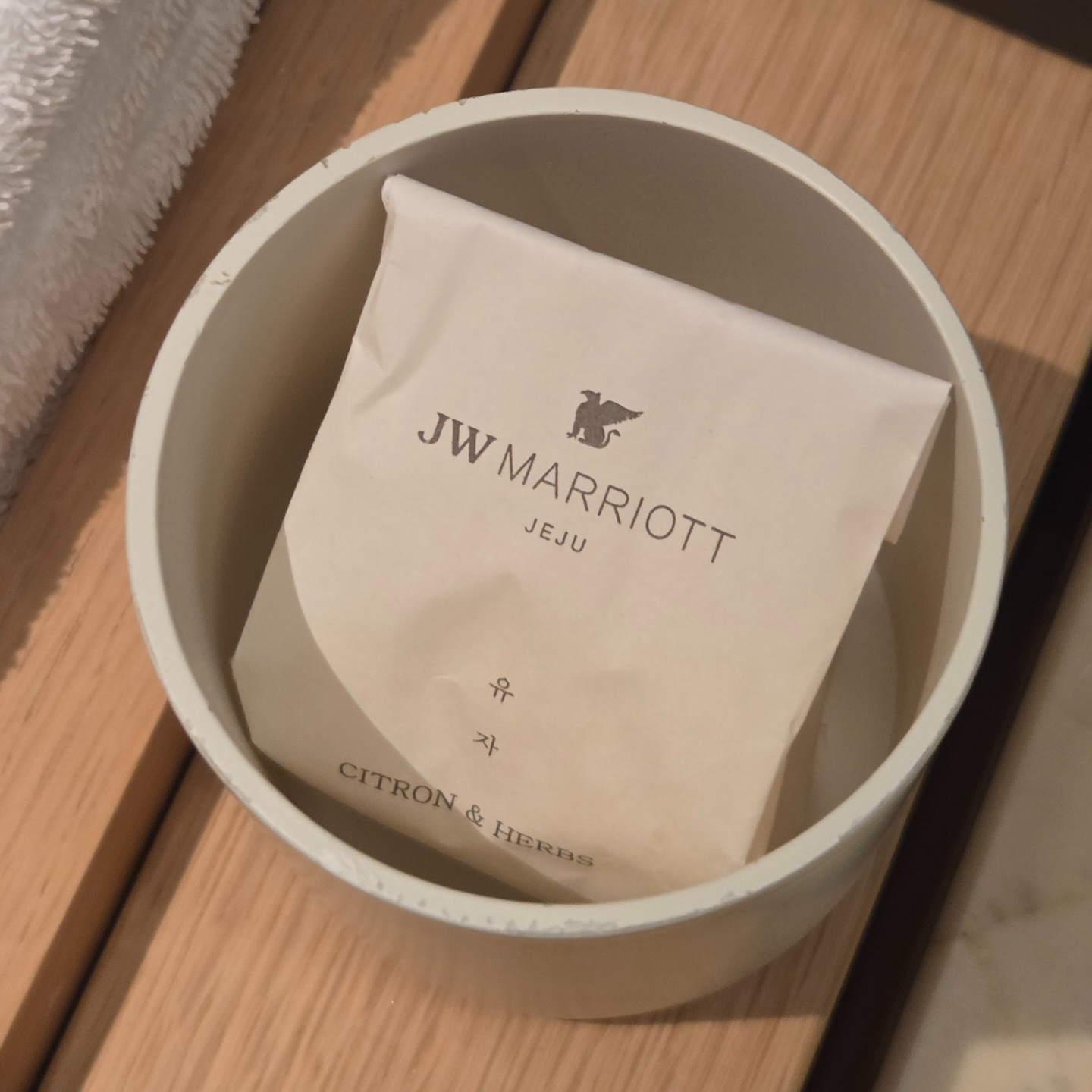 JW 메리어트 제주 리조트 & 스파의 어매니티에서 가장 인상 깊었던 점은 단순히 어떤 물품이 제공되는지가 아니라, 그 물품 하나하나의 디테일에 신경 쓴 흔적이 분명히 느껴진다는 점이었습니다. 티백과 네스프레소 캡슐을 직접 제작한 점이나, 호텔 디자인 경험의 연속성을 고려해 신중하게 선택한 머그컵과 코스터, 그리고 디자인 톤을 맞춘 얼음 메이커, 전기주전자, 네스프레소 머신까지 객실 안의 요소들이 하나의 흐름으로 연결되어 있었습니다. 특히 다이슨 헤어드라이어의 전선을 정리하는 가죽 스트랩마저도 전선 색상과 동일한 톤에 JW 메리어트 제주 리조트 & 스파 로고가 새겨진 디자인이라는 점에서, 방 안의 작은 부분까지 세심하게 고려했다는 인상을 받았습니다. 투숙하시는 분이라면 이런 디테일을 하나씩 찾아보는 것 또한 JW 메리어트 제주 리조트 & 스파에서 머무는 또 하나의 즐거움이 될 것 같습니다.