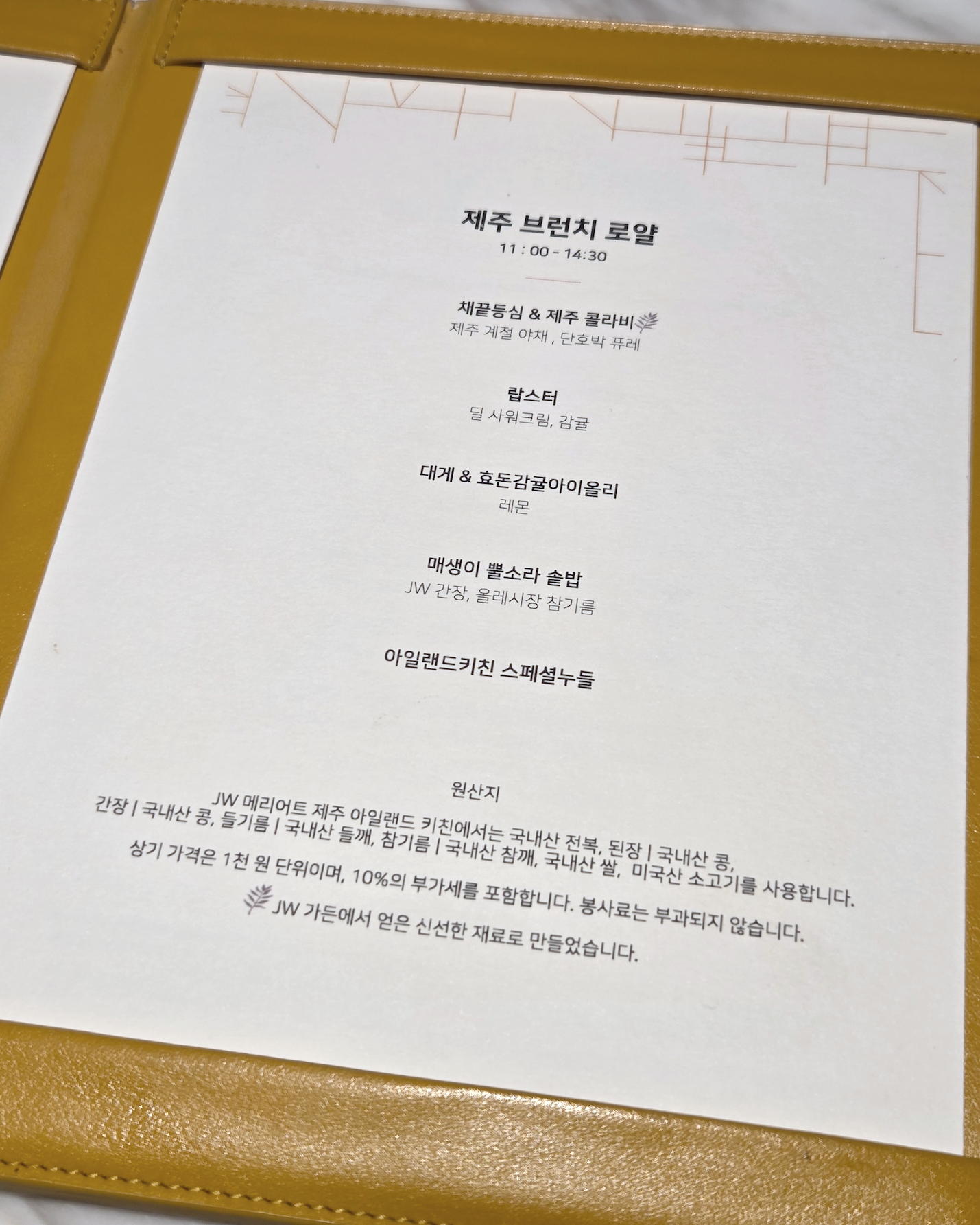 JW 메리어트 제주 리조트 & 스파 여우물 2025년 12월 메뉴
