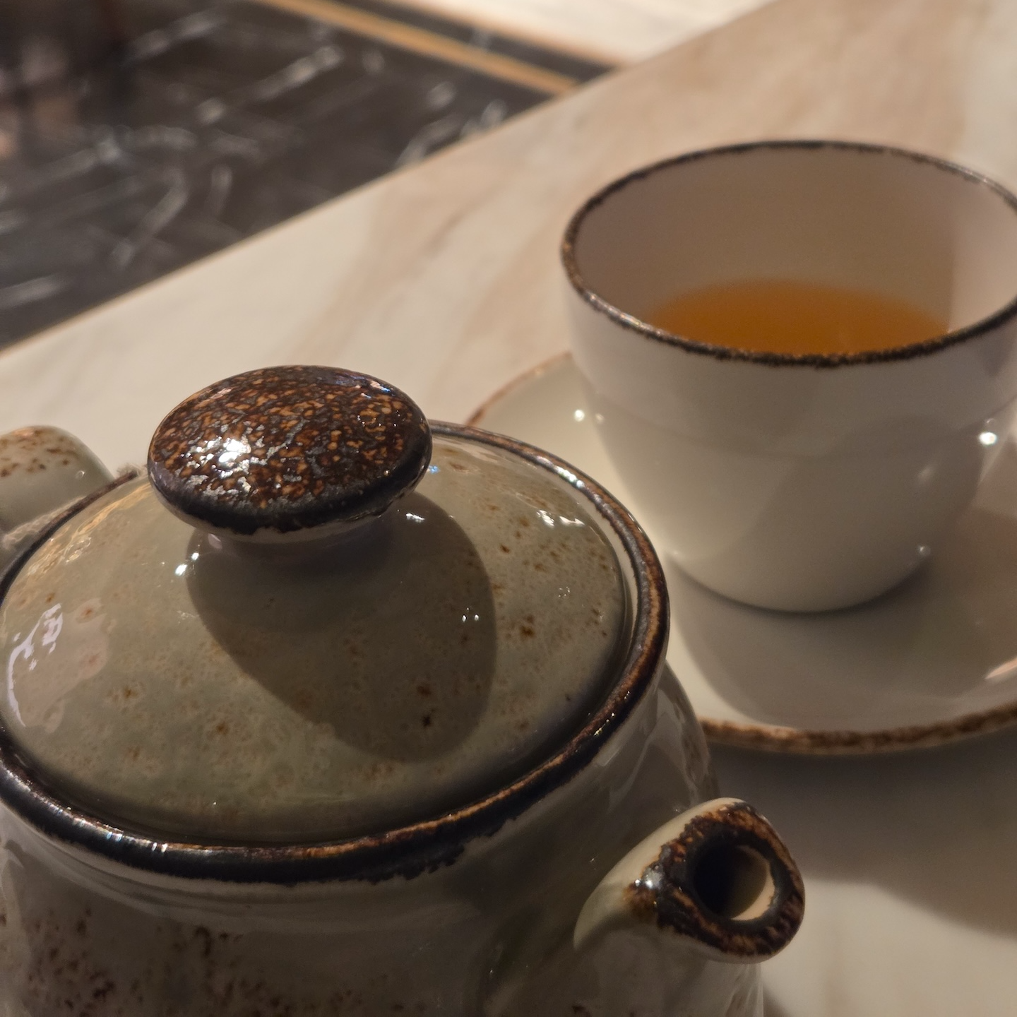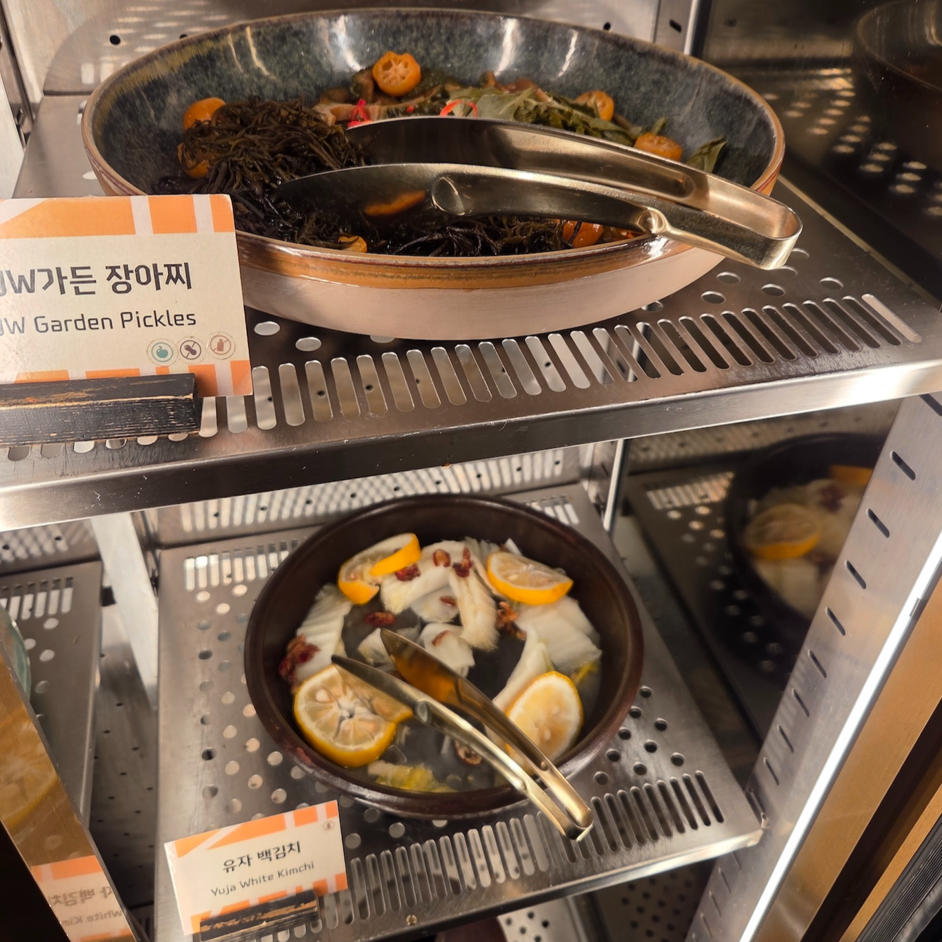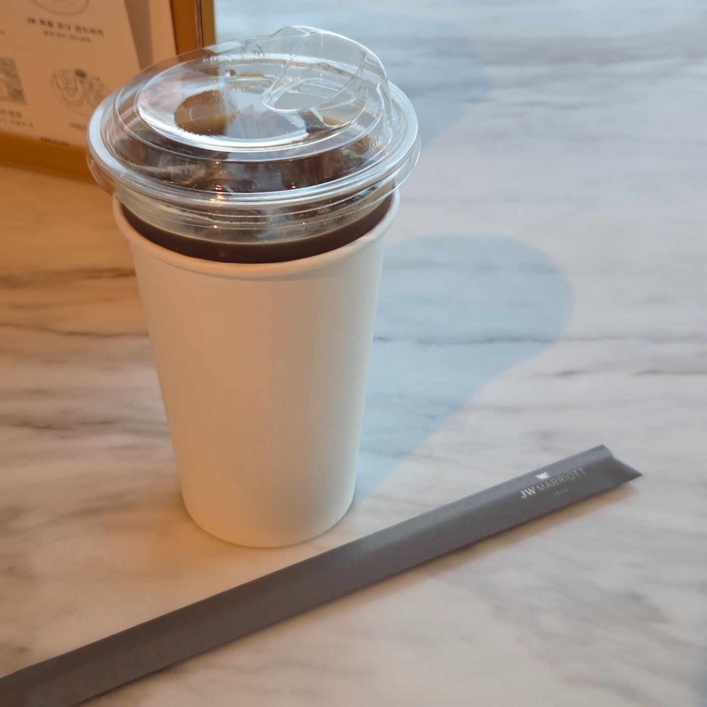 개인적으로는 유자 백김치가 특히 인상적이었고, 전반적으로 간이 세지 않아 음식들이 쉽게 물리지 않았던 점이 좋았습니다. 고기류의 굽기는 살짝 아쉬운 반면, 랍스터는 굽기가 특히 좋았다는 점이 기억에 남습니다. 커피와 차는 조식과 동일하게 에스프레소, 아메리카노, 카페라테, 카푸치노, 찐라떼, JW 가든과 제주 노을을 포함한 다양한 차가 제공되며, 식사 후 커피를 테이크아웃해 갈 수 있다는 점도 장점이었습니다.