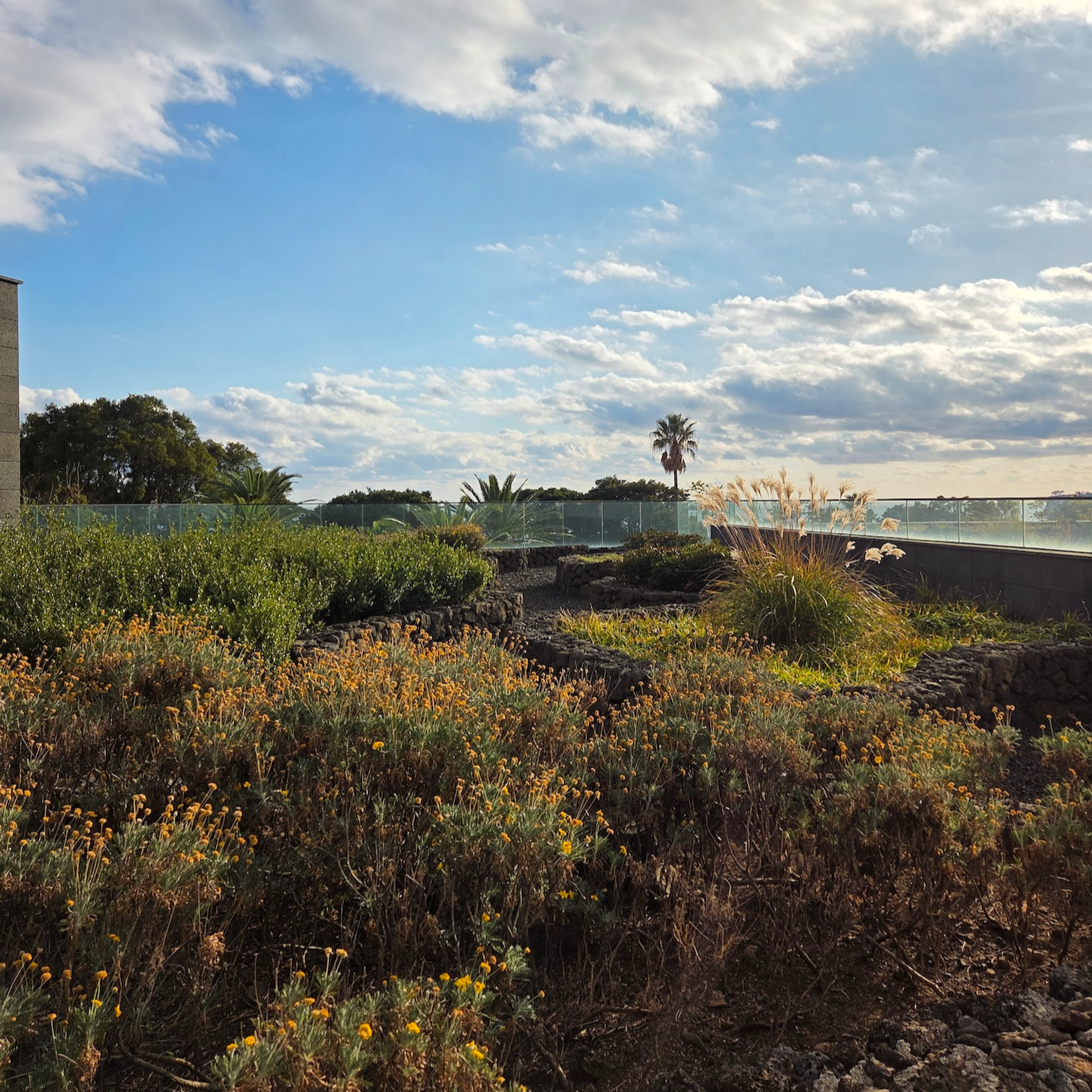 JW 메리어트 제주 리조트 & 스파 정원과 정원에서 바라본 게스트 룸