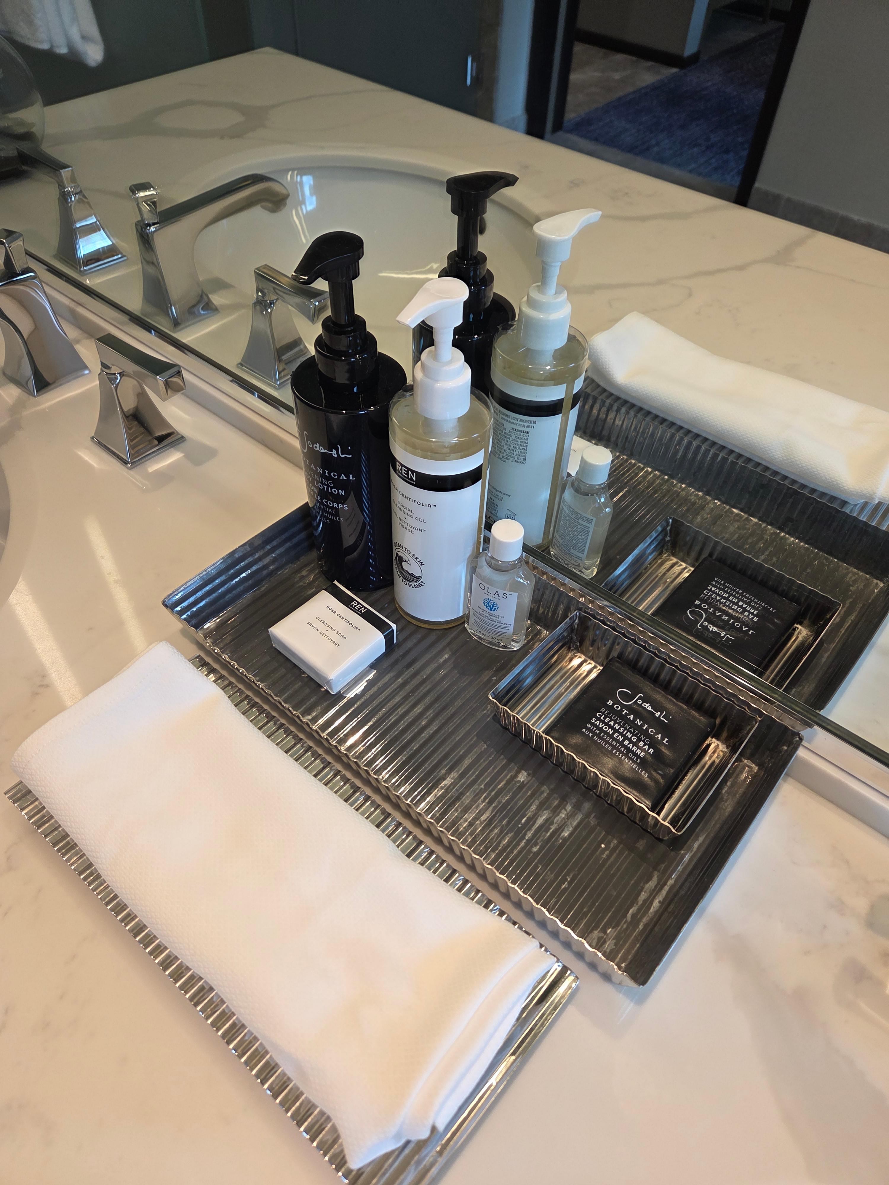 욕실 어매니티로는 스웨덴 브랜드인 Sachajuan제품의 샴푸와 컨디셔너가, Sodashi 브랜드의 바디워시가 대용량으로 제공되었습니다. 같은 브랜드의 바디로션과 클렌징 바, REN브랜드의 페이스 워시와 클랜징 비누도 제공되었습니다. 욕조가 있었음에도 베쓰 솔트는 기본으로 제공되지 않는다는 점은 조금 아쉬웠습니다. 세인트 레지스에서 사용되는 모든 어매니티의 경우 세인트 레지스 부티크에서 구입할 수 있기 때문에 이용후에 구입을 원하시면 세인트 레지스 부티크를 방문해 보시는 것도 좋을 것 같습니다.