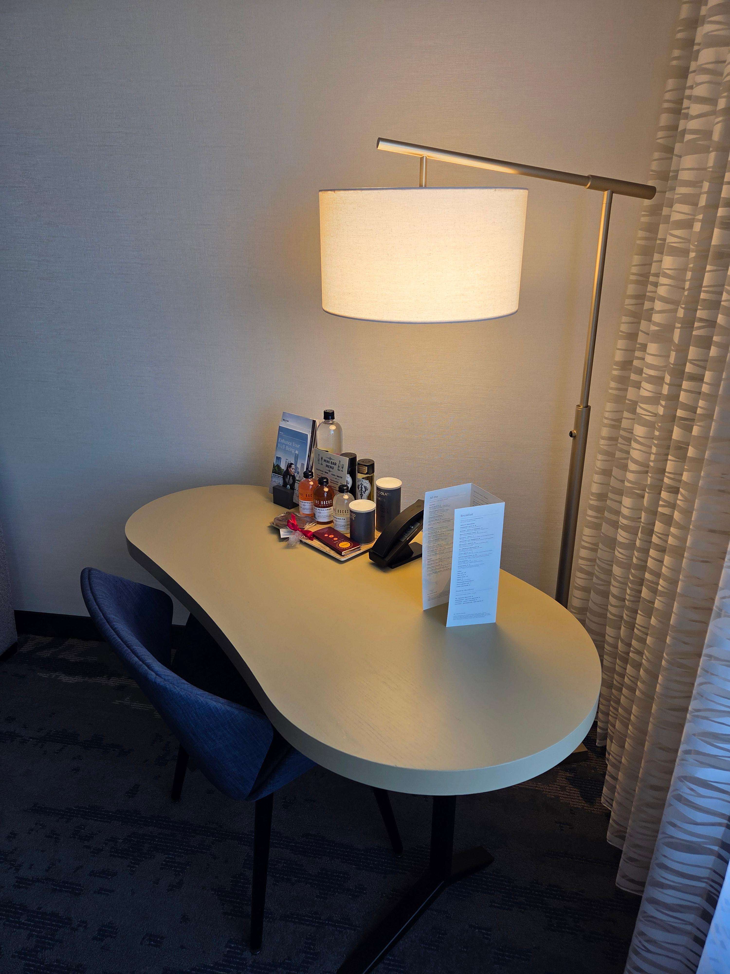 체크인은 1층에 있는 체크인 로비에서 진행됩니다. 건물 안으로 들어서면 왼쪽에 체크인 카운터가 위치해 있습니다. 체크인 또한 기다리는 사람이 없었기에 바로 진행할 수 있었습니다. 가장 먼저 Last Name을 물어보셨고, 그다음으로는 신분증과 결제카드를 요청하셨습니다. 숙박 내역에 대한 확인, 메리어트 본보이 엘리트 회원에 대한 감사 인사와 스위트 룸 업그레이드 안내를 받았고요, 뒤이어서 웰컴 어매니티로 무료 조식, 포인트, 웰컴 기프트 중 어떤 걸 원하냐고 물어보셔서 당연히 조식으로 받았습니다. 그 이후에 카드와 신분증을 받고 카드 결제 후에 체크인은 완료되었고, 혹시 물이 필요하냐고 하시길래 좋다고 했더니 시원한 물과 상온 물 중에 어떤 걸 원하는지 물어보셨습니다. 찬 물이라고 하니 냉장고에서 시원한 물 두 병을 꺼내 주셨고요, 뒤이어 엘리베이터 위치를 안내해 주셨습니다. 전반적으로 무난하고 빠진 것 없는 체크인이었습니다.