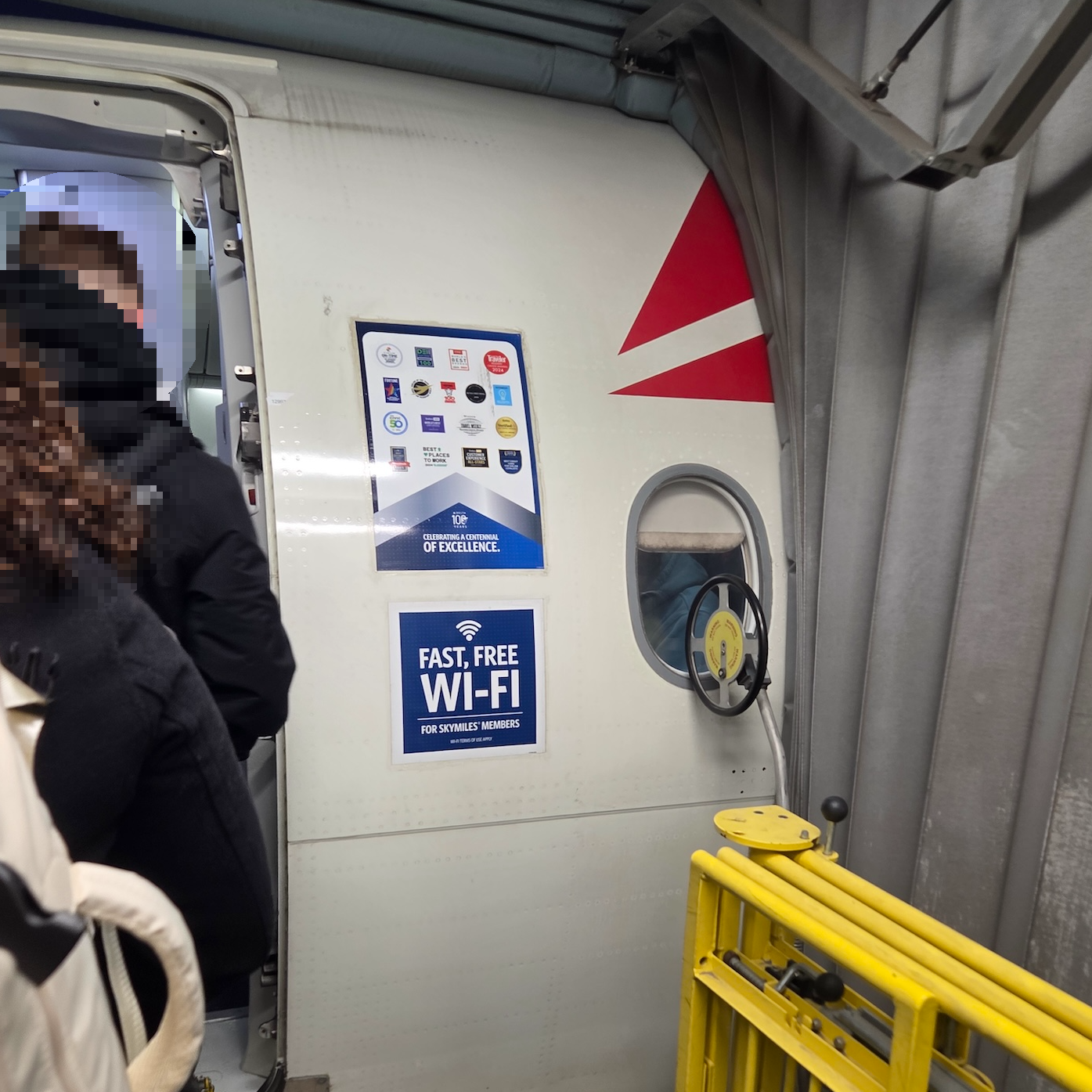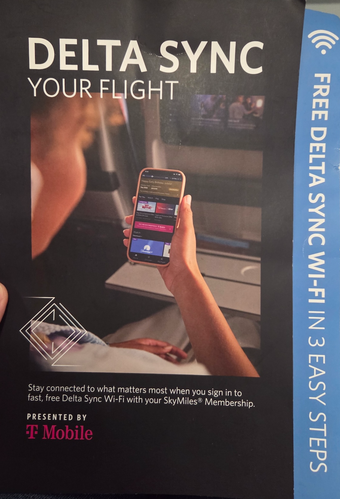 델타 항공은 기내 와이파이도 무료로 제공합니다. 다만 무료 이용을 위해서는 델타 항공의 고객 우대 프로그램인 스카이마일즈(SkyMiles) 회원이어야 하며, 비회원의 경우 기내에서 바로 가입이 가능합니다. 와이파이는 일부 항공사처럼 일정 고도(예: 10,000피트 이상)에 도달한 이후에만 제공되는 것이 아니라, 항공기에 탑승한 직후부터—탑승교가 분리되기 전부터—이용할 수 있다는 점이 인상적이었습니다.