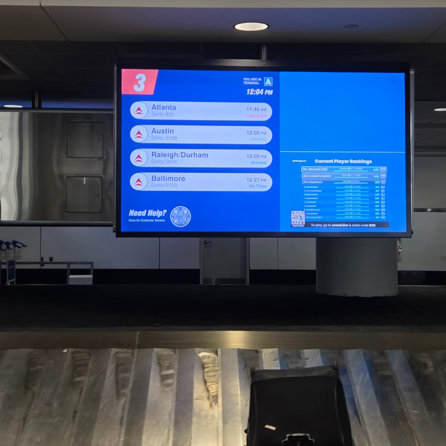 제가 탑승했던 날, 오스틴 버그스트롬 국제공항을 출발해 보스턴 로건 국제공항으로 향하는 델타 항공 DL2098편은 오스틴 국제공항 7번 게이트에서 출발했습니다. 이번 항공편은 만석으로 운항되었기 때문에 게이트 앞에는 출발 시간 전부터 많은 승객들이 모여 있었습니다. 델타 항공 역시 다른 미국 항공사들과 마찬가지로 보딩 존을 세분화해 운영하고 있는데요, 특히 이번과 같이 만석인 항공편의 경우 모든 승객의 기내 수하물을 수납할 만큼의 오버헤드 빈 공간이 부족할 수 있기 때문에 같은 그룹 내에서도 가능한 한 빨리 탑승하는 것이 중요합니다. 실제로 게이트에서는 지속적으로 기내 공간 부족으로 총 20개의 가방을 위탁해야 한다는 안내 방송이 나왔고, 일부 승객들은 자발적으로 기내 수하물을 게이트에서 위탁하기도 했습니다.