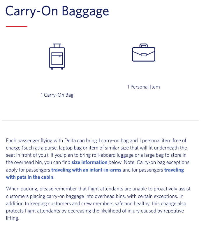 위탁 수하물의 경우에는 요금이 부과됩니다. 미국 국내선 기준으로 델타 메인 및 델타 컴포트 승객이 별도의 카드 혜택이나 엘리트 등급이 없는 경우, 첫 번째 위탁 수하물은 편도 기준 $35, 두 번째는 $45의 비용이 발생합니다. 각각의 수하물은 무게 50파운드(약 23kg) 이하, 그리고 가로·세로·높이의 합이 62인치(약 158cm)를 넘지 않아야 합니다. 델타 퍼스트의 경우에는 두 개의 수하물을 무료로 위탁할 수 있으며, 허용 무게도 수하물 1개당 70파운드(약 32kg)까지 증가합니다. 또한 델타 스카이마일 메달리온 회원이나 델타 스카이마일 아멕스 카드 보유자의 경우 첫 번째 위탁 수하물이 무료로 제공되는 등 예외 규정이 존재하니, 해당되시는 분들은 사전에 확인하시는 것을 추천드립니다. 일부 공항에서는 체크인 시 위탁 수하물 요금을 현금 대신 마일리지로 결제할 수도 있습니다. 전반적으로 델타 항공의 국내선 수하물 정책은 전통적인 미국 항공사의 구조를 따르고 있으며, 기내 수하물은 비교적 관대한 반면 위탁 수하물은 유료화된 형태라고 이해하시면 됩니다. 따라서 짧은 일정이나 가벼운 여행이라면 기내 수하물만으로 이동하는 것이 비용 절약 측면에서 가장 효율적인 선택이 될 수 있습니다.