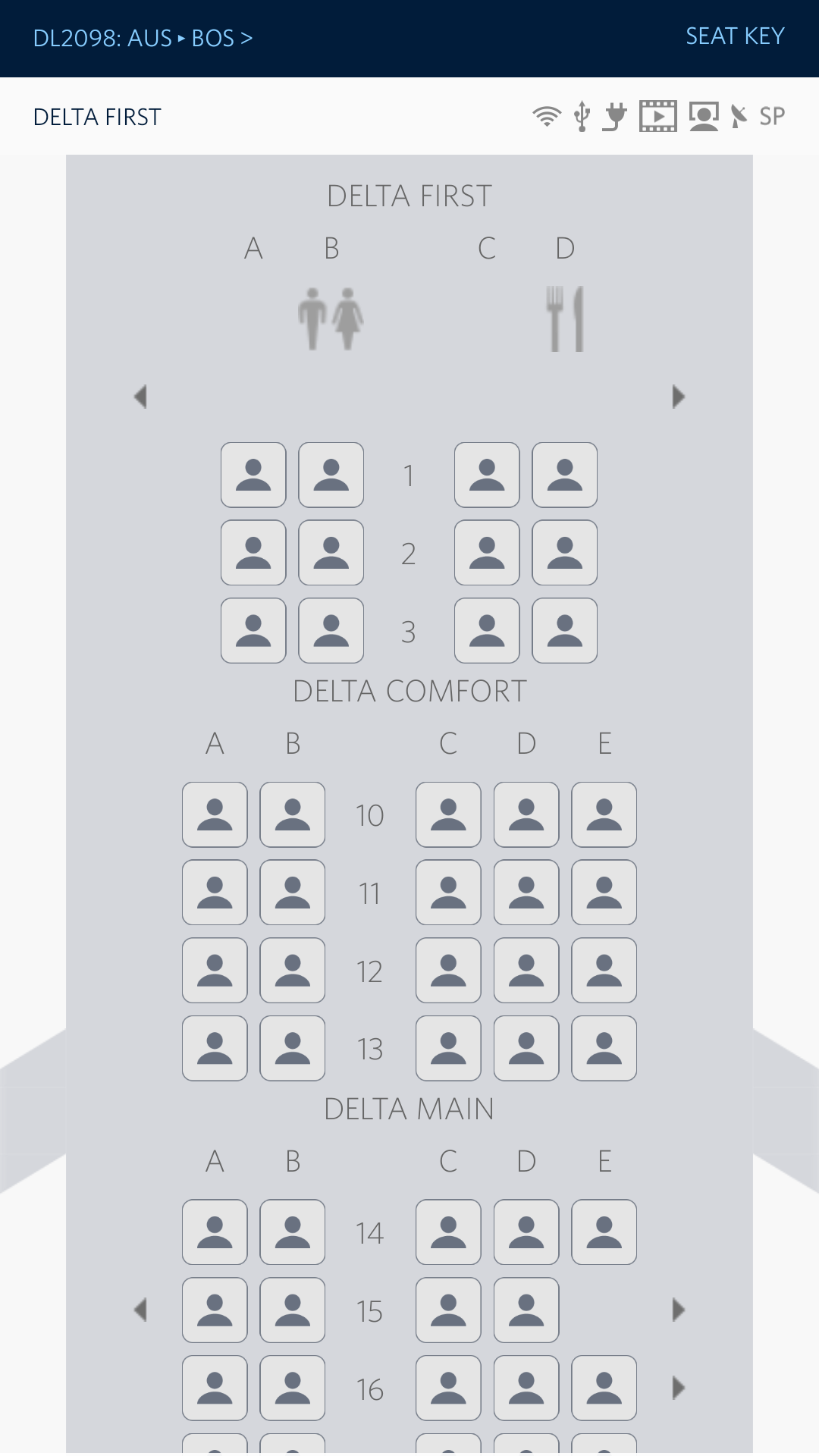 위에서도 언급했듯 저는 델타 메인 베이직 운임을 이용했기 때문에 사전 좌석 지정이 불가능했습니다. 이 경우 출발 24시간 전에 자동으로 좌석이 배정되는데, 다행히 동행과 나란히 좌석이 배정되었습니다. 다만 두 좌석이 붙어 있는 2열이 아닌 3열 좌석이 배정되었기 때문에, 체크인 이후 좌석 변경이 가능한지 확인해보았습니다. 결과적으로 일부 좌석이 남아 있었음에도 좌석을 변경하려면 추가 요금을 지불해야 했기 때문에 기존에 배정된 좌석을 그대로 이용했습니다.