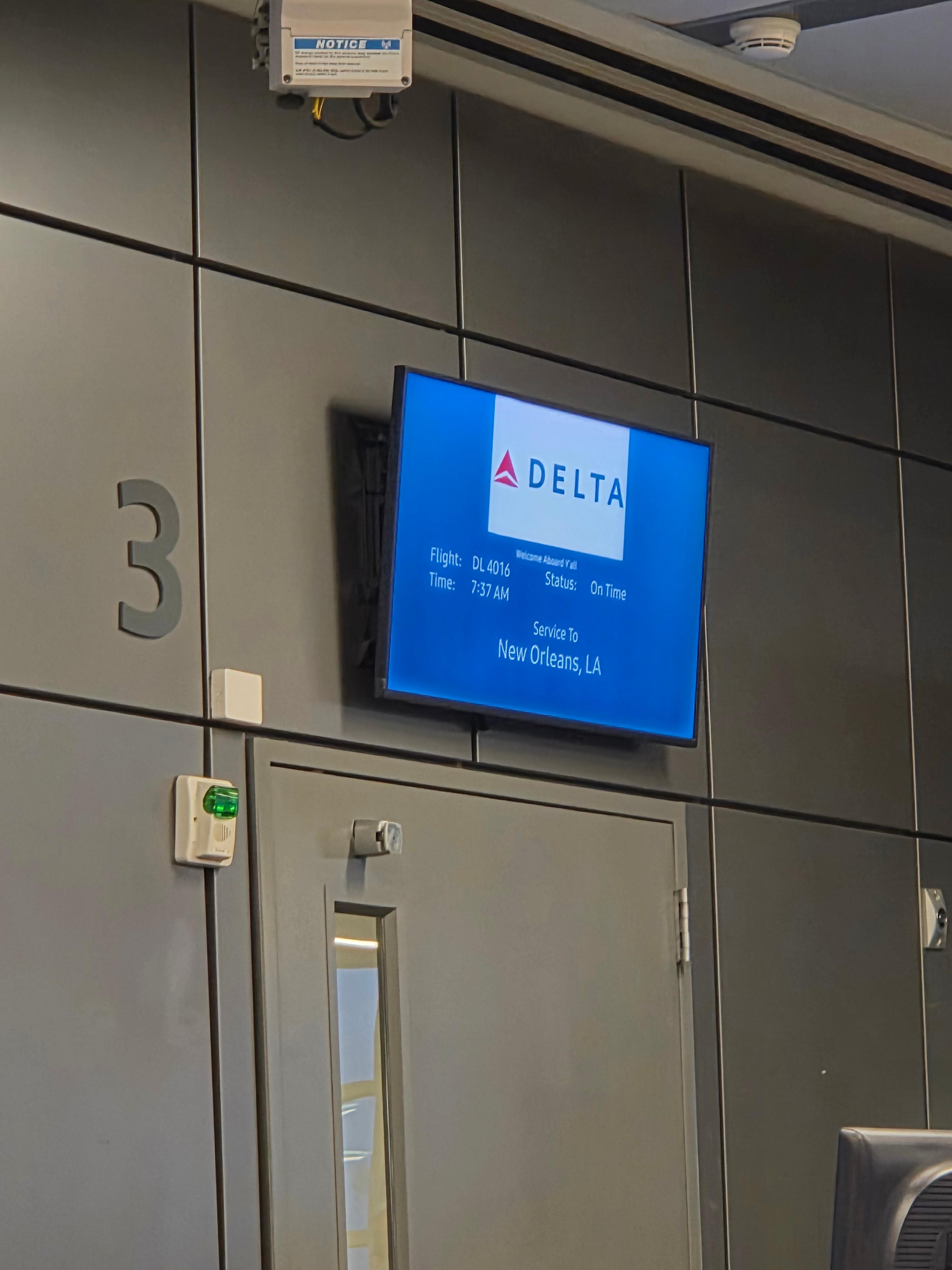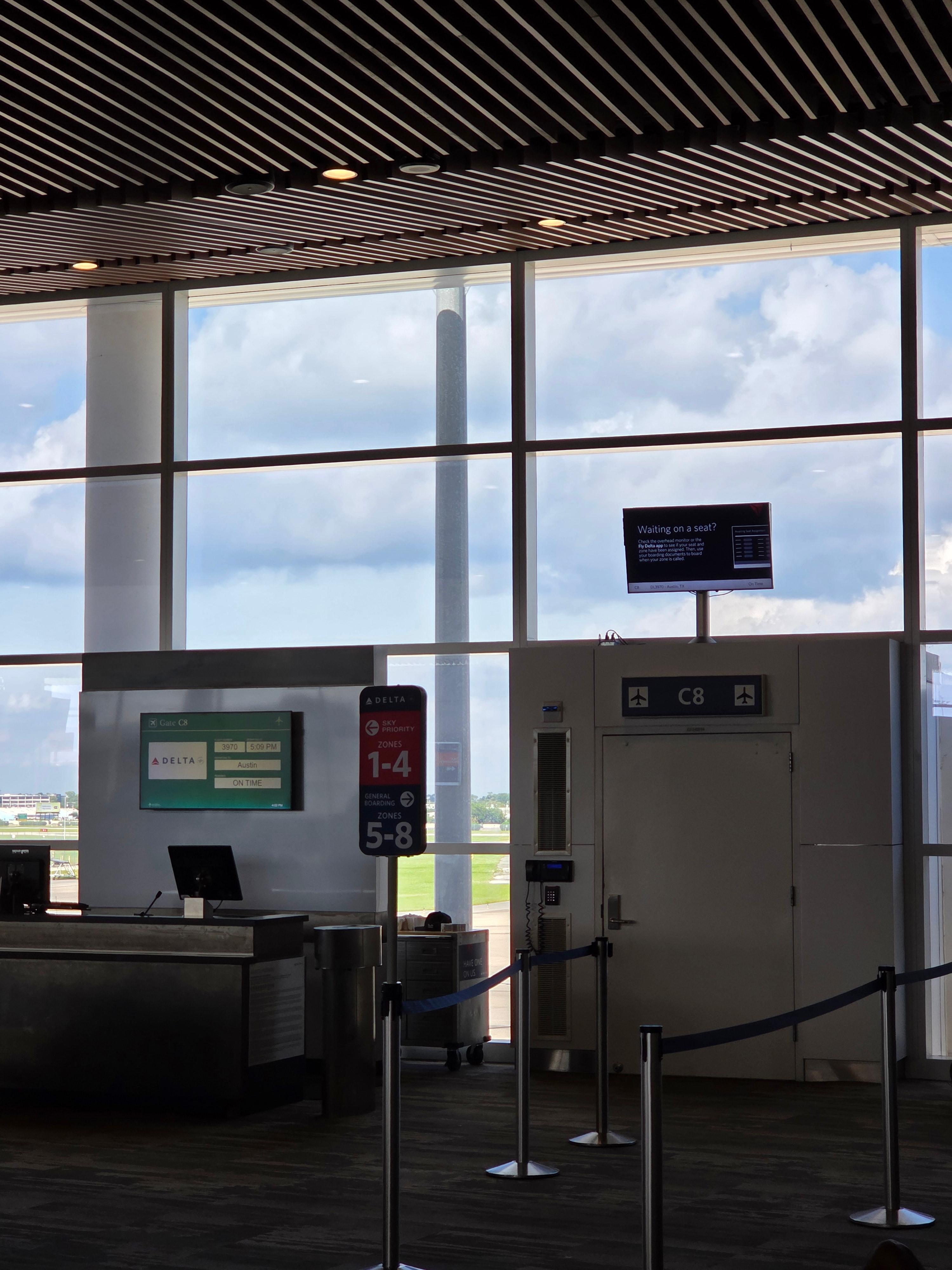 제가 탑승한 두 항공편 모두 출발 30분 전에 보딩을 시작했습니다. 오스틴 공항과 뉴올리언스 공항을 오가는 항공편의 경우 탑승 정원이 80명도 안되는 작은 항공기로 운항하기에 보딩은 금방 끝나는 편입니다. 델타 항공도 유나이티드 항공이나 아메리칸 항공과 같이 확실하게 보딩그룹을 나누고 있습니다. 국내선 일등석인 델타 퍼스트 탑승객의 경우 존 1로, 델타 컴포트 유상 구매 고객의 경우 존 3, 델타 메인 클래식 유상 고객의 경우 존 6~7, 델타 메인 베이직 운임 탑승객의 경우 마지막인 존 8로 탑승합니다. 참고로 탑승객 수가 100명이 넘지 않는 작은 리저널 항공기의 경우 오버헤드빈 공간이 훨씬 협소하기 때문에 먼저 탑승해서 탑승 좌석 근처에 짐을 보관하기 위해서는 최소 6~7 존에는 탑승하셔야 합니다. 델타 보딩 그룹과 관련한 자세한 사항은 이 링크에서 확인하실 수 있습니다.