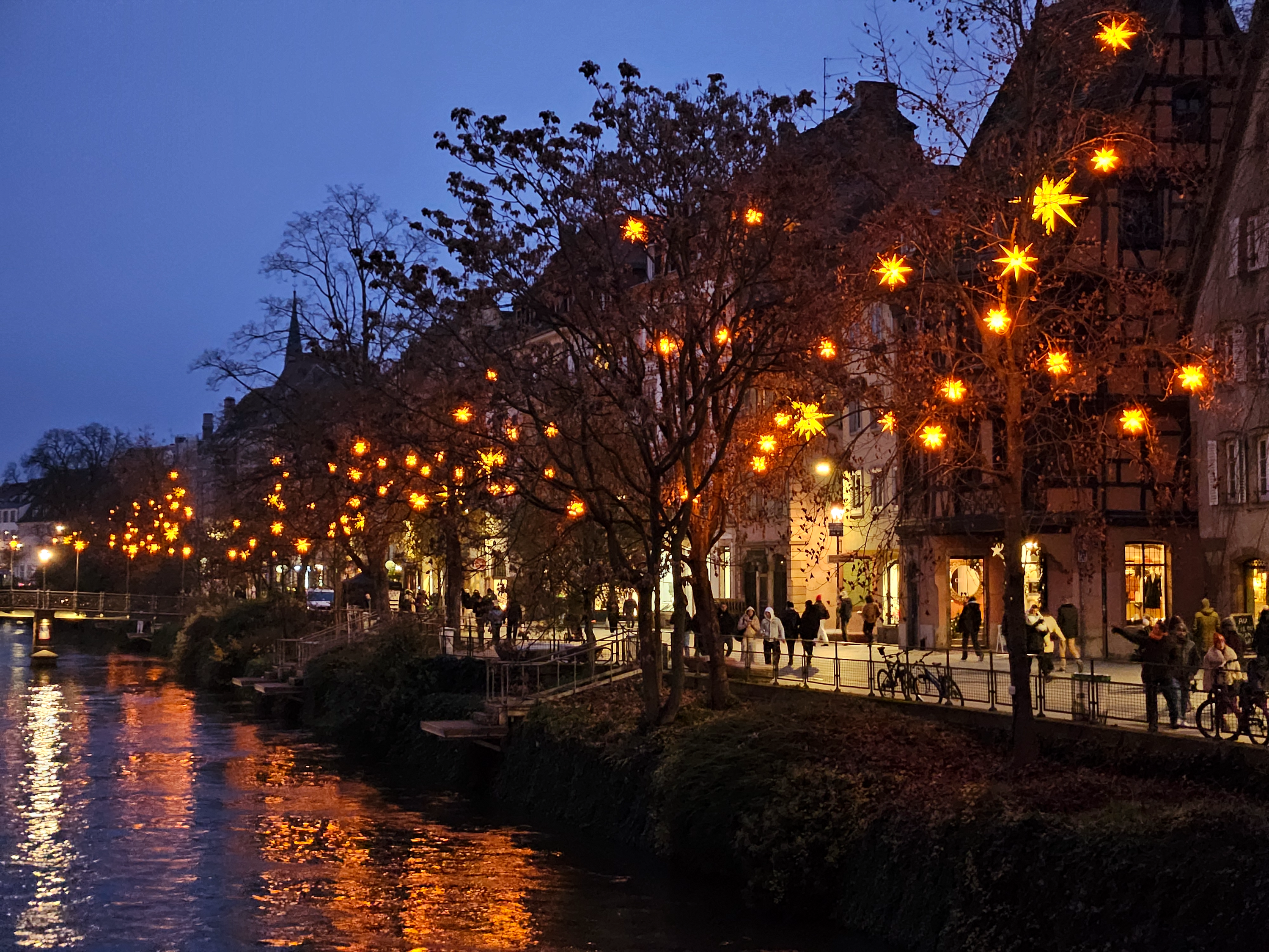 노트르담 성당을 지나서 계속 걷다보면 곧 쁘띠드 프랑스가 나옵니다. 쁘띠드 프랑스에는 독일문화권의 목조건축문화를 보여주는 파흐베르크양식의 건축물들과 함께 다양한 목조 건축물들이 강을 따라서 서 있습니다. 강을 따라 서 있는 나무들에는 수많은 주황색 별들이 달려있는데요, 이 별들이 목조 건축물들과 어우러져 쁘띠드 프랑스만의 독특한 아름다움을 선사합니다.