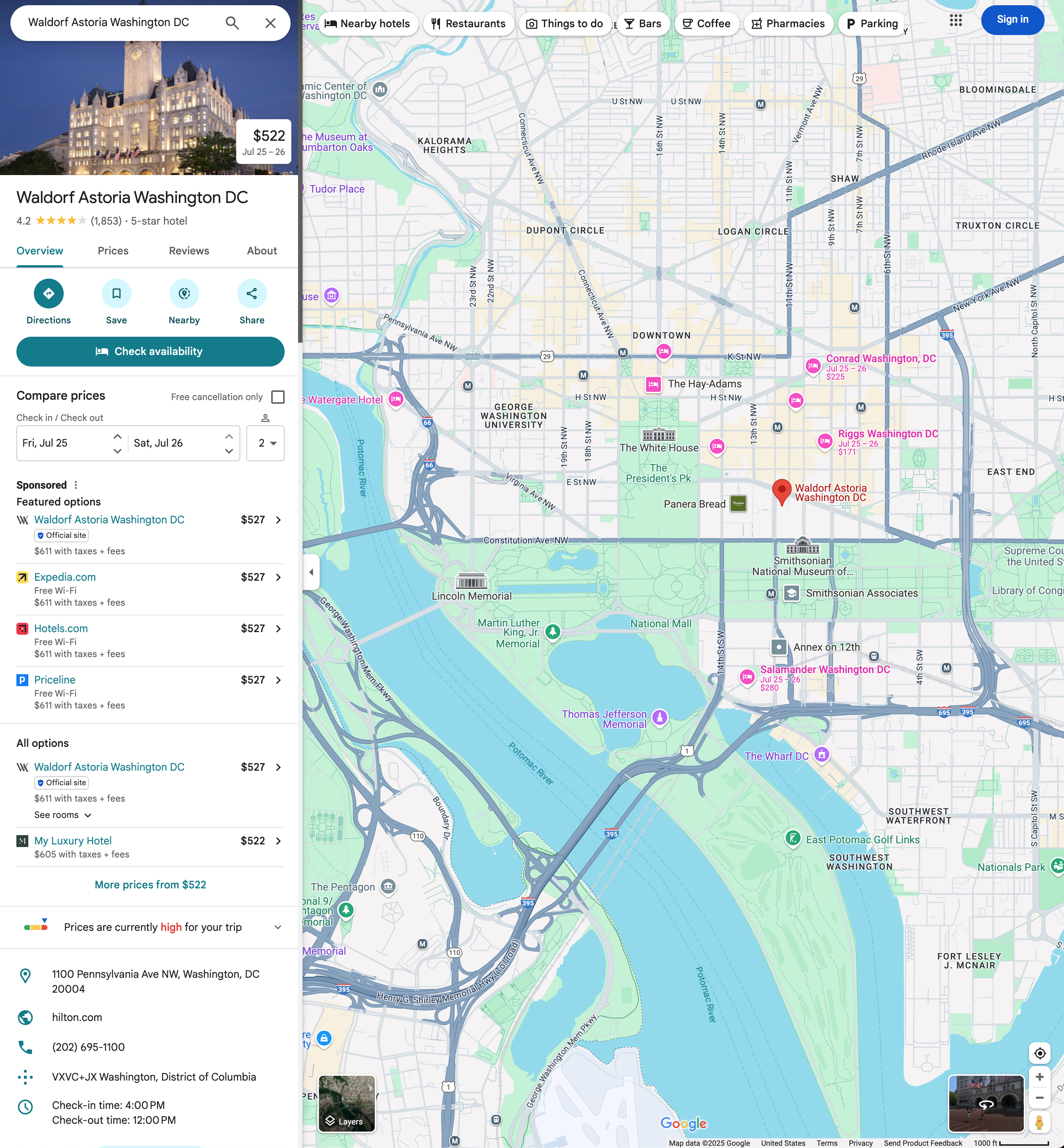 월도프 아스토리아 워싱턴 DC, Waldorf Astoria Washington DC (25년 7월 숙박)
