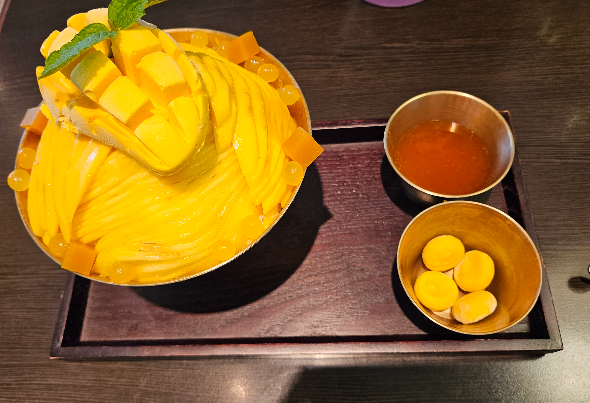 1층에 있는 로비 라운지에서는 5월 1일부터 8월 31일까지 낮 12시부터 밤 9시까지 망고빙수를 판매합니다. 인터컨티넨탈 그랜드 파르나스에서는 애플망고빙수를 팔고 있지만 코엑스 인터컨티넨탈에서는 애플망고빙수가 아닌 망고빙수를 판매하고 가격도 애플망고빙수에 비해 더 저렴합니다. 코엑스 인터컨티넨탈의 망고빙수는 2인기준 6만 5천 원, 토마토빙수는 2인기준 5만 5천 원입니다. 망고빙수의 가장 위에는 잘린 망고처럼 생긴 망고 아이스크림이 있고 그 아래로 노란 망고가 놓여있습니다. 망고 주위로는 망고젤리가 있습니다. 망고 아래에는 우유얼음이 있으며, 우유 얼음에 부어 먹을 수 있는 망고시럽과 작은 망고 초콜릿 4개도 같이 나옵니다. 망고빙수는 호텔에서 먹는 빙수를 생각해 볼 때, 가격과 맛에서 모두 괜찮은 편이었습니다. 다만, 처음에 물이 담긴 유리컵을 비롯해, 망고빙수가 담겨있던 용기, 망고 시럽과 초콜릿이 담겨있던 용기 모두에서 비릿한 냄새가 난 게 흠이었습니다. ▲ 목차로 돌아가기