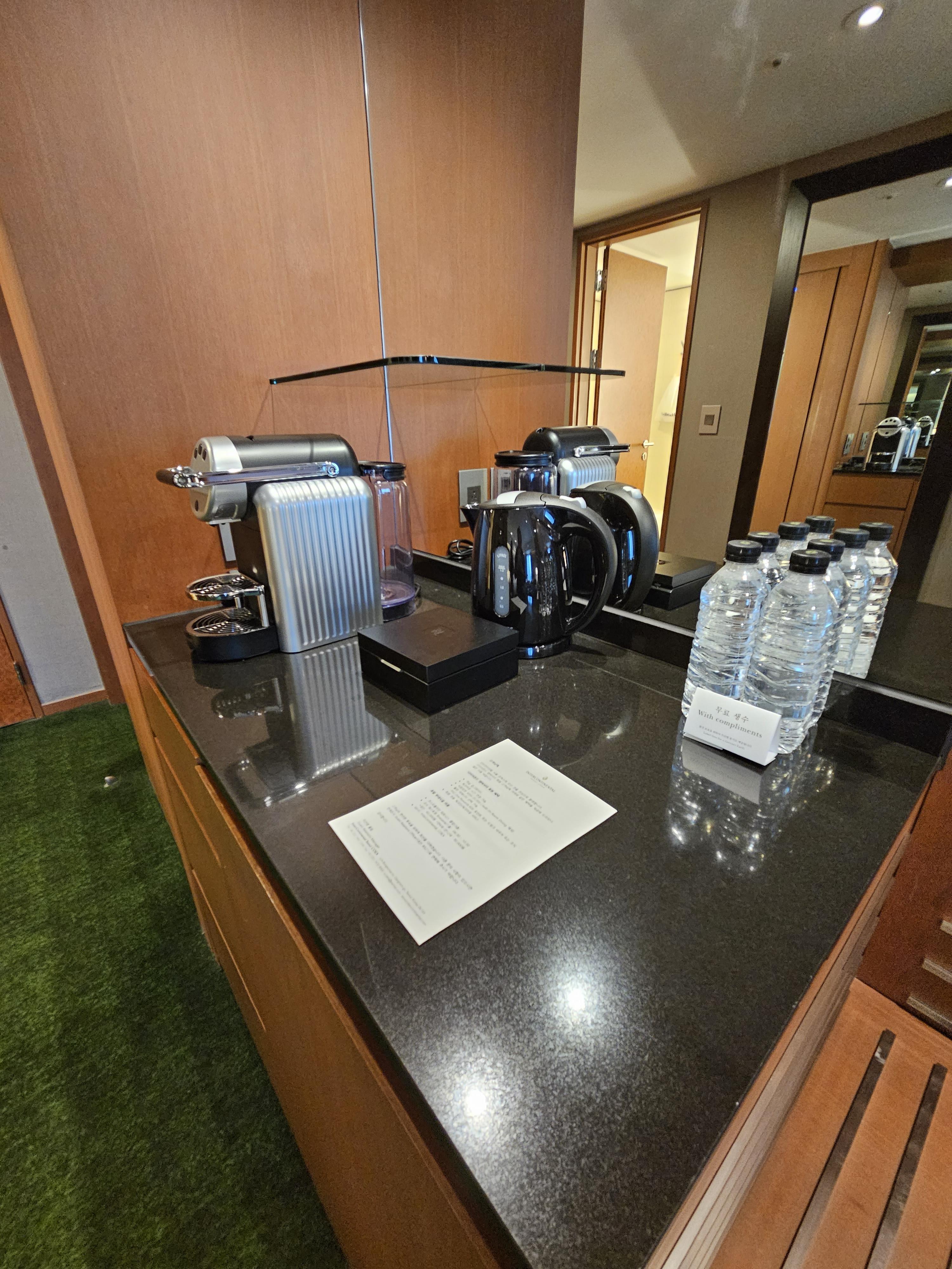 물은 기본적으로 500ml 페트병 4병이 매일 리필됩니다. 커피는 네스프레소 캡슐 3종류가 각각 2개씩 제공되며 각기 다른 4종류의 티가 각각 하나씩 제공됩니다. 거실에는 알코올 티슈가 2개가 제공되어 손이 많이 닿는 곳을 직접 한번 더 닦아서 사용할 수도 있습니다.