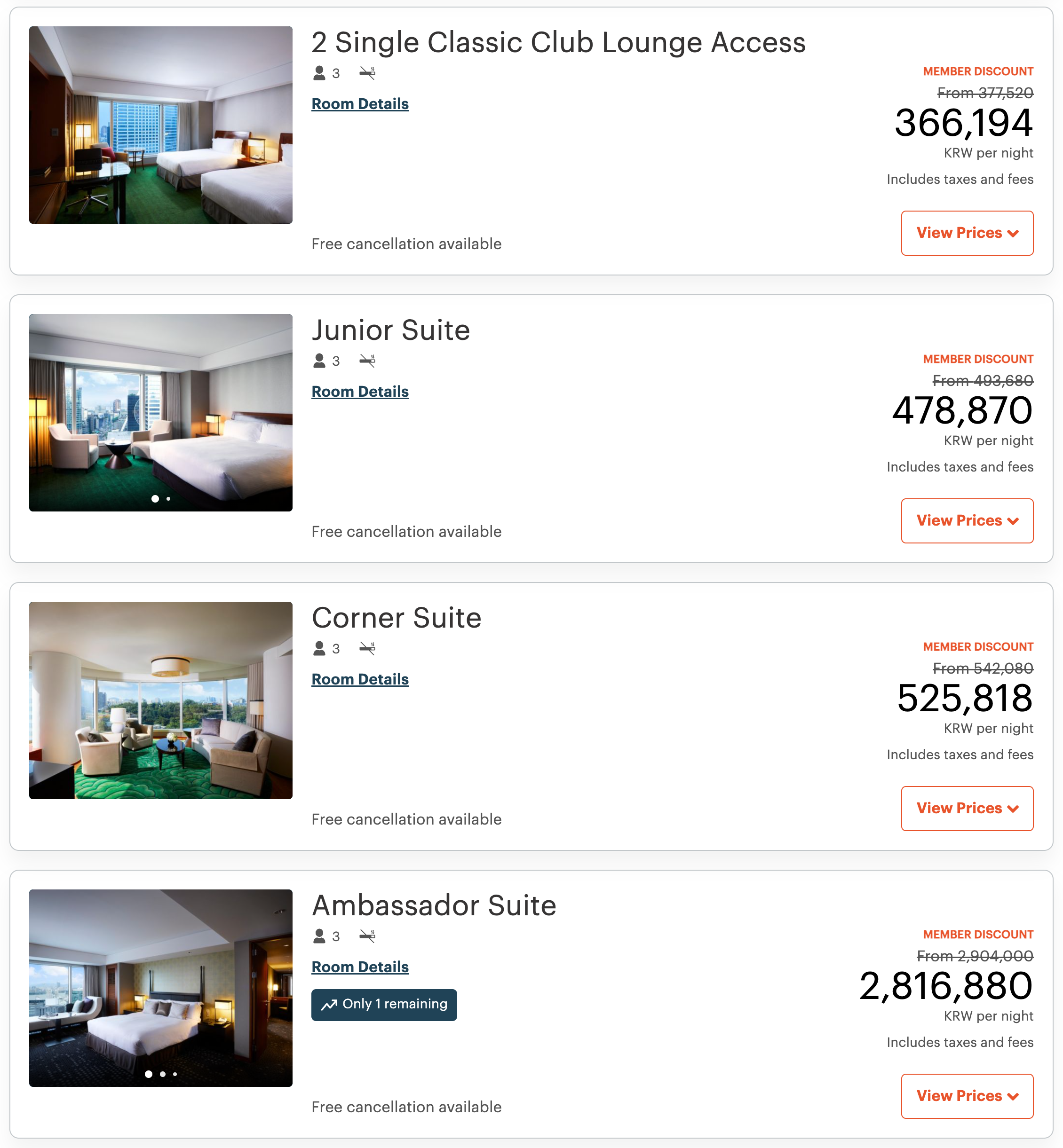 이번 숙박은 포인트로 예약을 했기 때문에 포인트로 예약할 수 있는 유일한 객실인 Classic Room으로 4박을 예약했습니다. ▲ 목차로 돌아가기