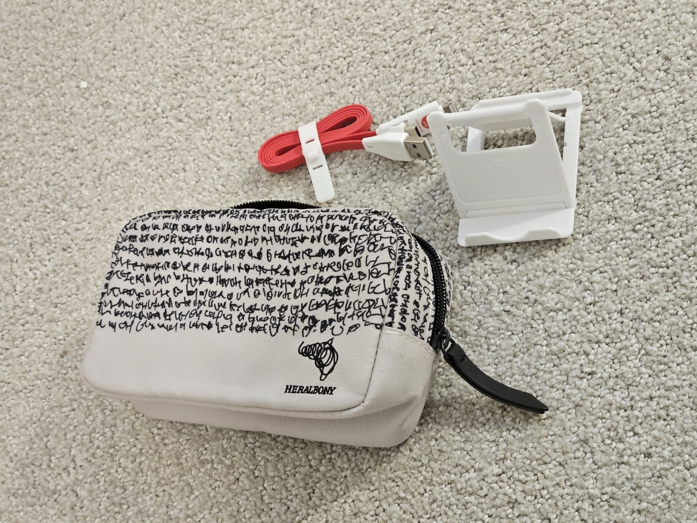 장거리 비행이기에 어매니티 킷도 제공됩니다. 이번에는 Heralbnony 일본 브랜드의 어매니티 세트를 받았습니다. 처음 들어보는 브랜드인데 2018년에 설립된 브랜드인데, 일본항공 홈페이지에서는 이를 an experimental welfare company라고 소개하고 있는데, 여러 디자이너들의 디자인을 어매니티백에 사용했습니다. 어매니티 킷에는 기본적인 치약, 칫솔, 휴지, 이어 플러그, 안대 등 위생용품과 편의용품이 들어있고요, 재밌던 점은 그동안은 보지 못했던 물건들이 추가됐는데 하나는 UBS케이블이었고, 다른 하나는 휴대폰 거치대였습니다. 특히 일본항공 기내 엔터테인먼트에 볼 게 없어 다운로드 받아온 넷플릭스를 보는데 휴대폰 거치대가 매우 유용했고요, USB케이블도 일본항공의 빨간색을 사용한 게 예뻐 보였습니다. 아쉬웠던 점은 예전에는 미스트나 로션 같은 것들도 있었던 것 같은데 이제는 이런 건 점점 없어지는 추세인가 봅니다. (하지만 일본항공 일등석 어매니티킷에는 림밤과 핸드로션에 더불어 시셰이도 화장품도 준다는..) 그 외의 어매니티로는 가디건을 요청하면 받을 수 있습니다. 저는 이불을 쓰지 않을 때는 가디건을 무릎 담요 대용으로 사용했습니다.