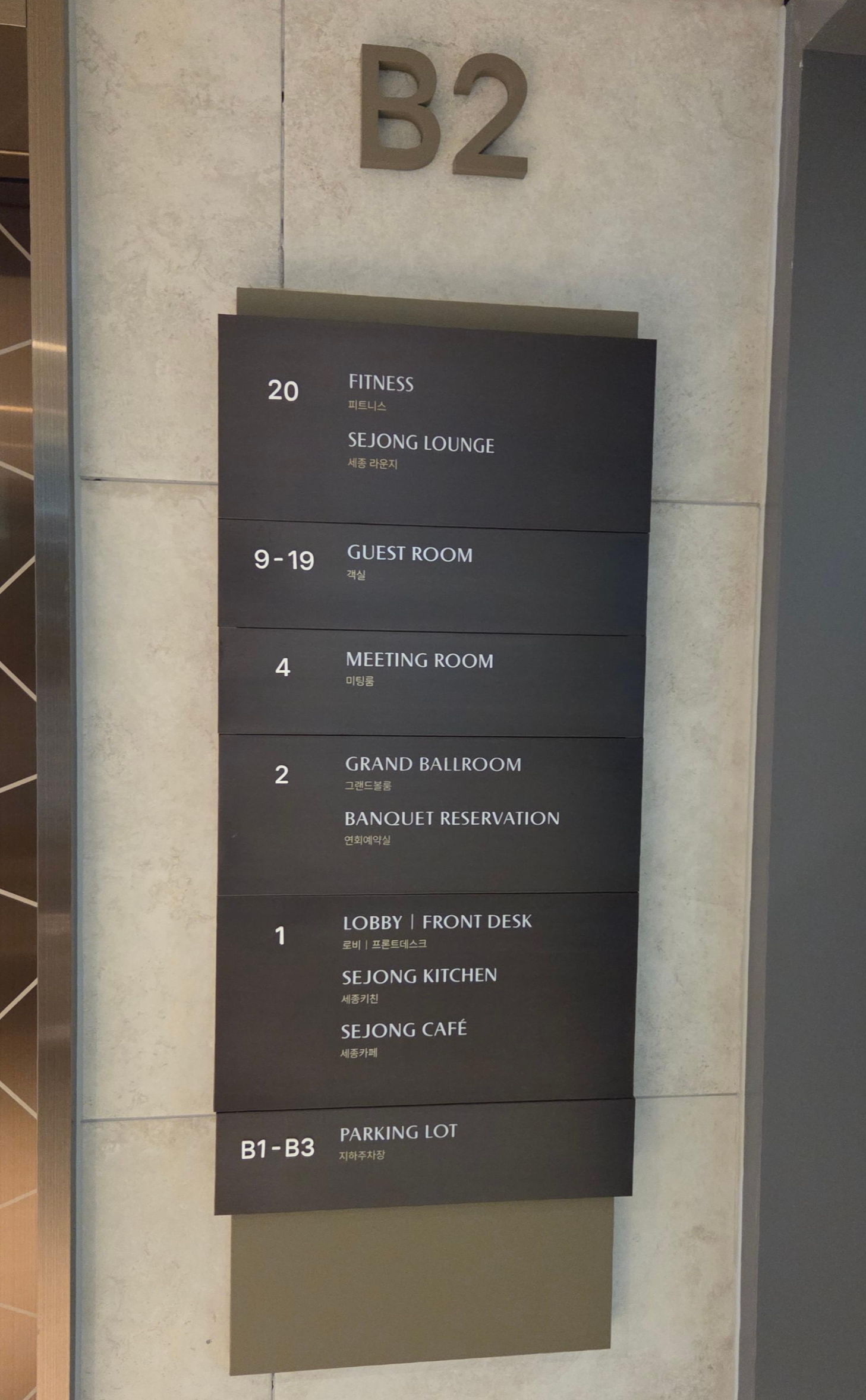 세종 키친에서 계절별로 계절 음식이나 디저트 등을 판매하고 있으니 투숙하는 시점에 어떤 시즌 요리들을 제공하는지 확인하시면 좋을 것 같고요, 1층 별관에 있는 The Cellar 와인바에서는 와인 1+1, 맥주 1+1 등의 이벤트를 진행할 때도 있으니 이 부분도 투숙하실 때 확인하시면 좋을 것 같습니다. 인터넷은 충분히 빠르고 접속이 끝기거나 하는 일은 없었고요, 주차장의 경우 지하 1층은 차들이 꽤 있는 편이었으나 지하 2층이나 3층은 공간이 여유로웠습니다. 엘리베이터를 타고 주차장 지하 1층으로 가나 2층으로 가나 큰 차이가 없으니 여유롭게 주차를 하고 싶으시다면 지하 2층 이하의 주차장을 이용하시면 좋을 것 같습니다.