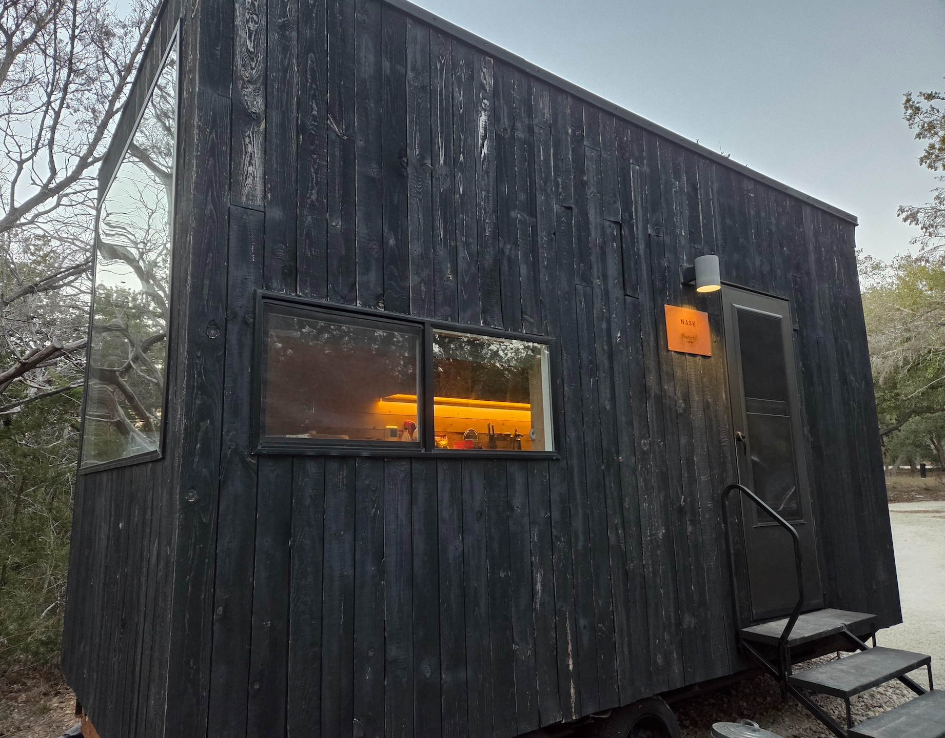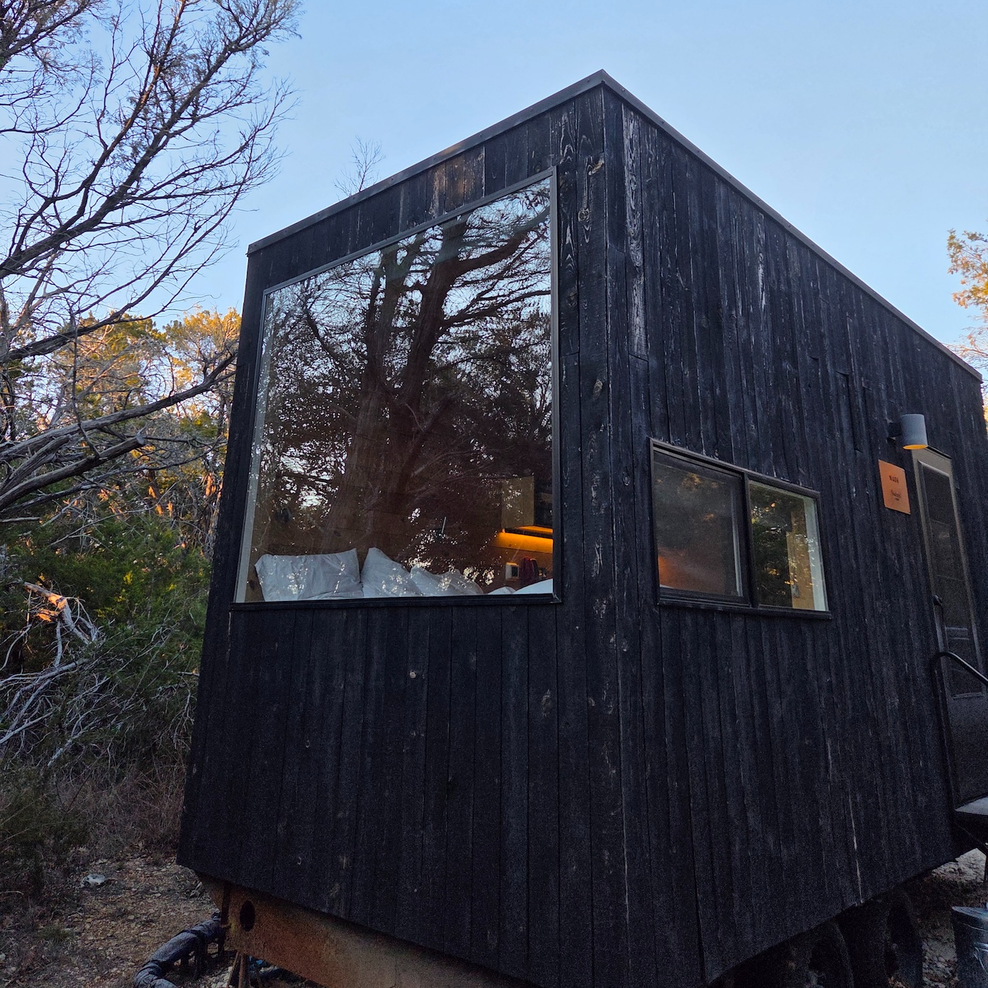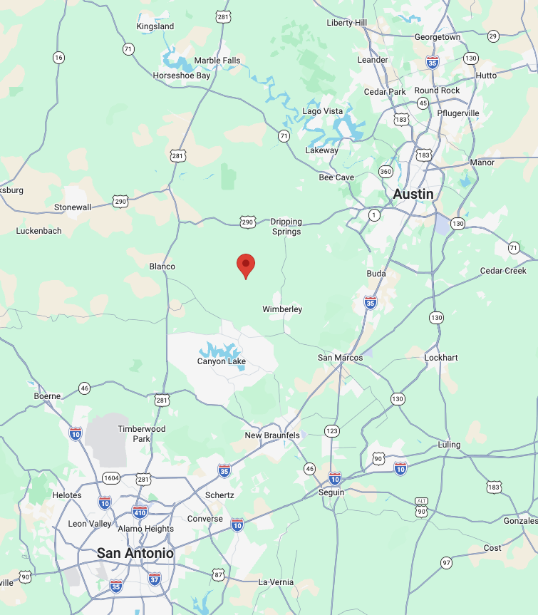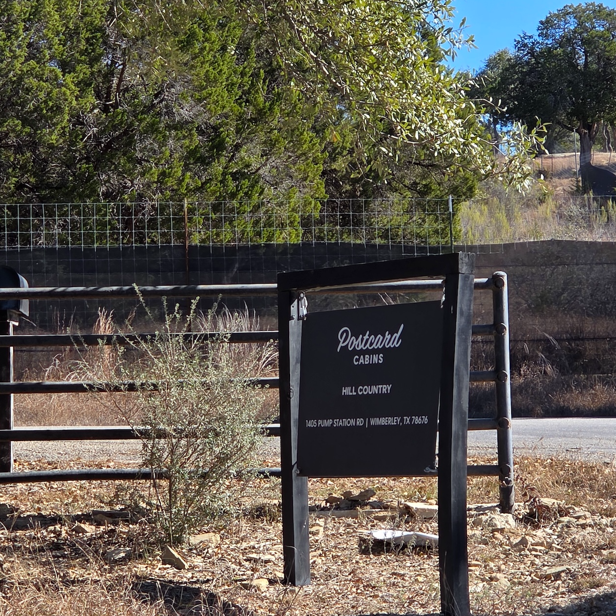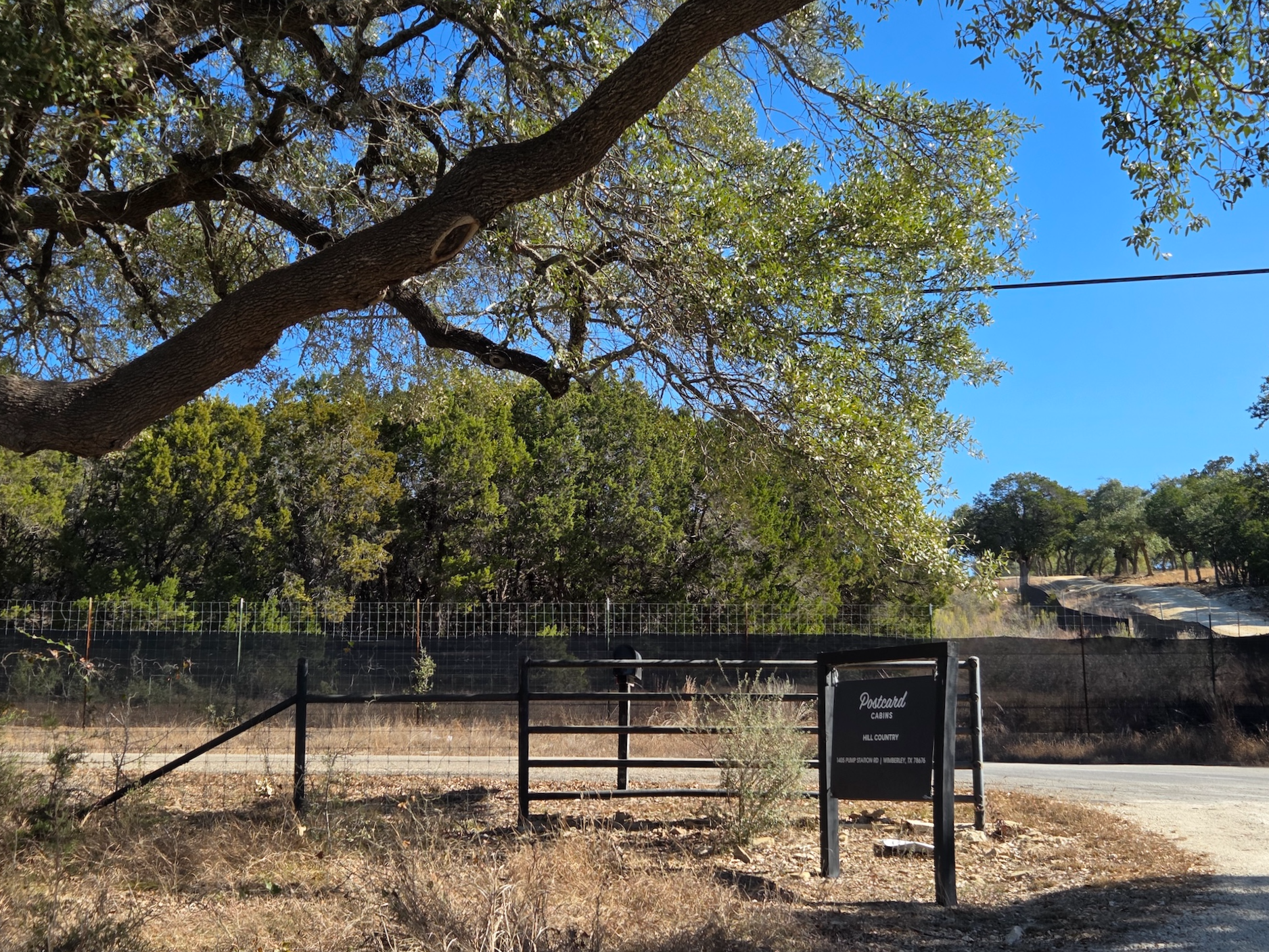 포스트카드 캐빈 힐 컨트리는 힐 컨트리에서도 드리핑 스프링스(Dripping Springs), 윔벌리(Wimberley), 블랑코(Blanco)를 잇는 삼각형 내부에 위치해 있습니다. 오스틴 다운타운에서는 차로 약 1시간 15분 정도, 샌안토니오 다운타운에서는 약 1시간 30분 정도 소요되며, 가장 가까운 마을인 윔벌리까지는 약 13분 정도 걸립니다. 힐 컨트리는 개인적으로 텍사스에서도 손에 꼽히게 예쁜 지역 중 하나라고 생각합니다. 흔히 텍사스 하면 떠오르는 평평한 대지나 사막과는 달리, 완만한 구릉과 작은 하천, 호수들이 어우러져 전체적으로 아기자기한 느낌이 강한 동네입니다. 그래서 포스트카드 캐빈처럼 글램핑을 즐기기에는 정말 잘 어울리는 지역이라고 느껴졌습니다. 다만 위치 특성상 차량 없이 대중교통이나 우버로 접근하기는 어렵고, 캐빈 내에는 간단한 마트나 생필품을 구매할 수 있는 시설이 없어 필요한 물건이 있다면 미리 준비하거나 윔벌리까지 나가야 한다는 점은 참고하시는 게 좋을 것 같습니다.