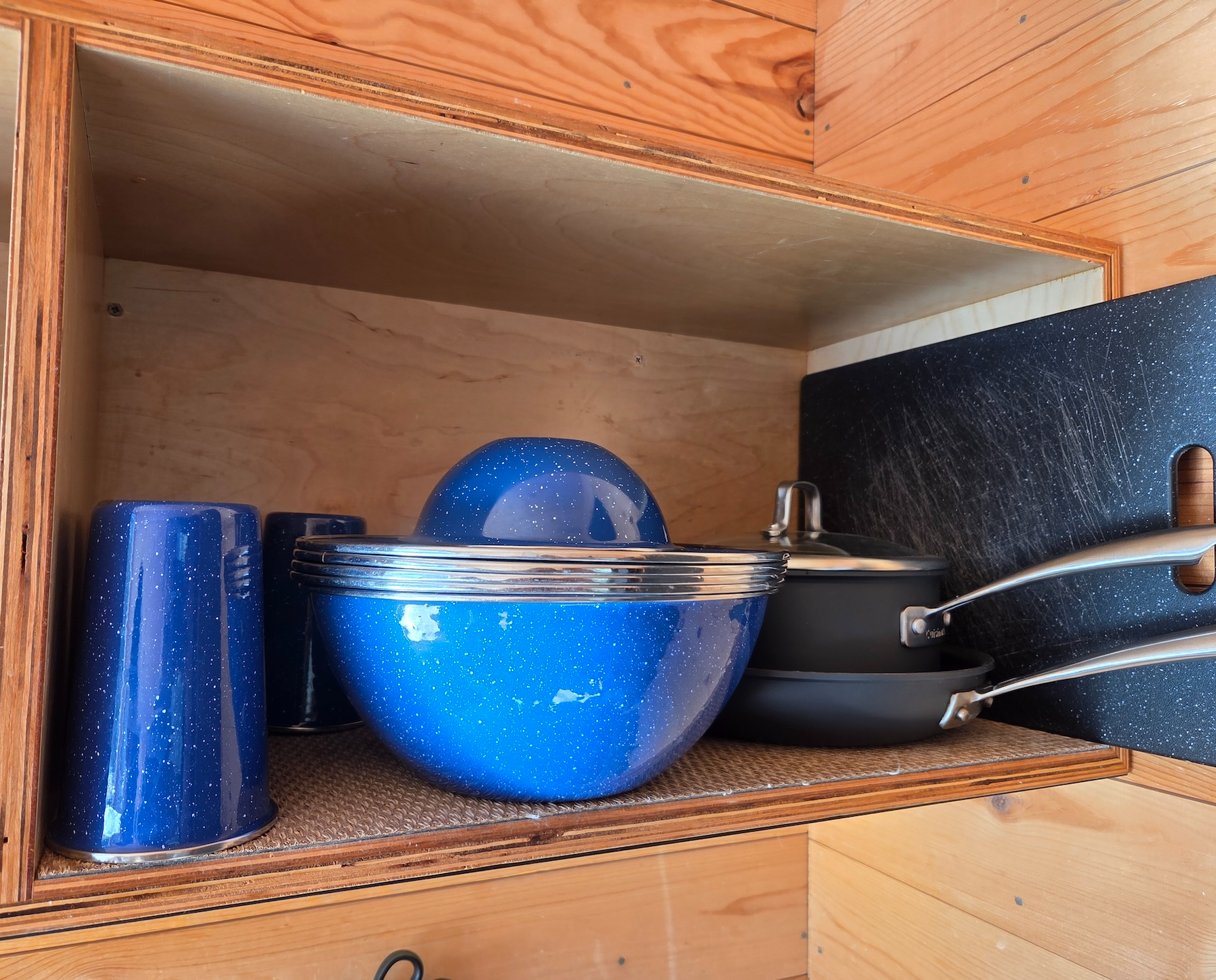 포스트카드 캐빈 힐 컨트리는 글램핑을 하면서 필요한 것들 중 식료품을 제외한 대부분의 물품이 준비되어 있었습니다. 가장 먼저 주방용품으로는 칼과 도마, 가위, 집게, 와인 오프너, 행주, 캔 오프너, 프라이팬, 냄비, 주전자가 준비되어 있었고, 식기로는 물컵, 큰 볼, 작은 볼, 접시가 각각 4개씩 구비되어 있었습니다. 미국이다 보니 젓가락은 따로 없었지만 숟가락, 포크, 나이프도 4개씩 준비되어 있었습니다. 기본적인 간을 위한 소금과 후추도 함께 제공되었습니다.