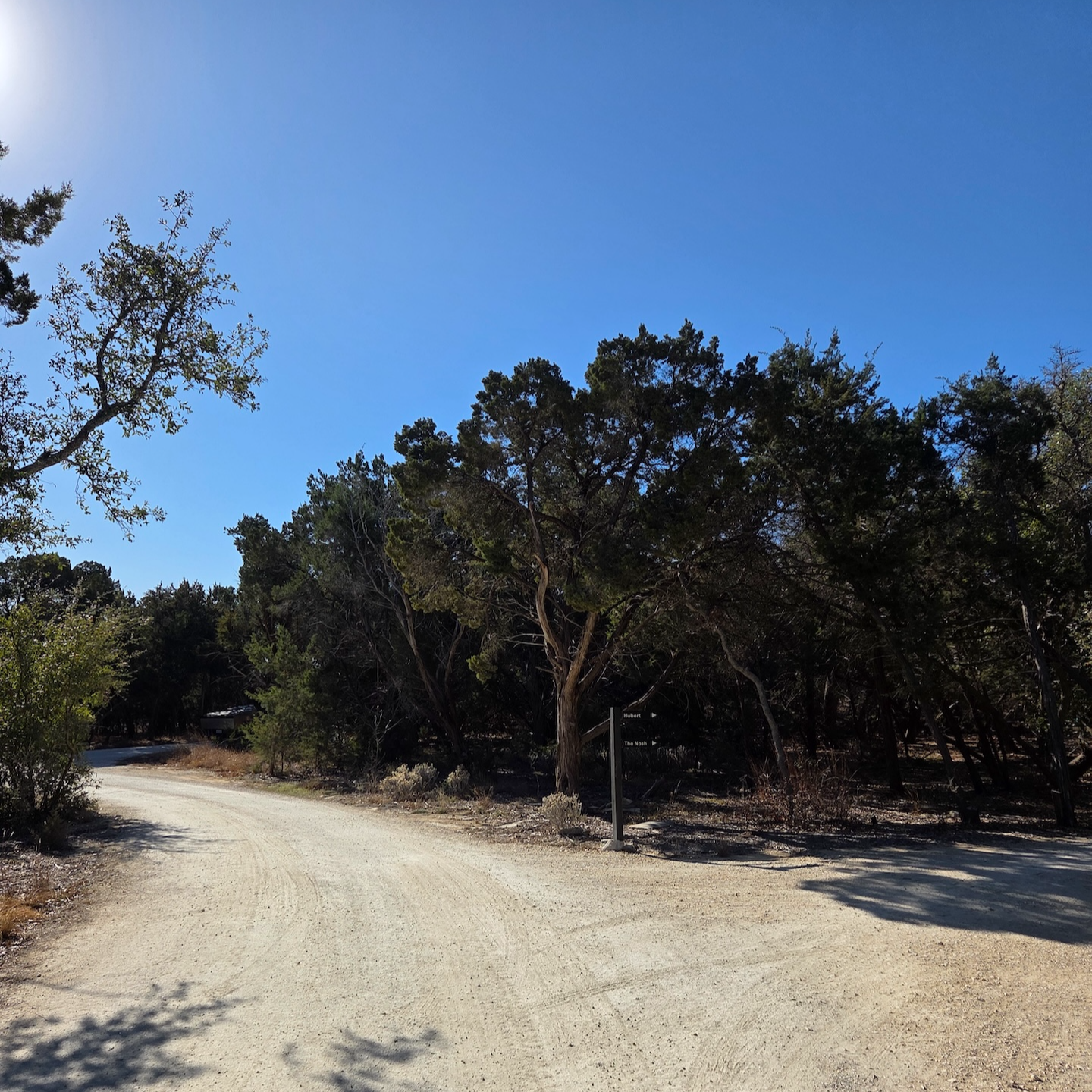 포스트카드 캐빈 힐 컨트리에는 산책로가 마련되어 있습니다. 산책로는 입구 쪽에 위치해 있으며 길이는 길지 않아 걷는 속도에 따라 약 10분 정도면 한 바퀴를 돌 수 있는 정도입니다. 산책로는 정비가 잘 되어 있고 안내 표시도 명확해 길을 잃을 염려는 없었습니다. 제가 방문했을 때는 겨울이라 나무의 푸른 잎이 무성하지는 않았지만, 그럼에도 나무들이 만들어내는 풍경이 꽤 인상적이었습니다. 아마 나무가 더 푸르러지는 계절에는 훨씬 더 예쁜 분위기를 보여주지 않을까 싶습니다. 제가 머무른 내쉬 캐빈은 포스트카드 캐빈 힐 컨트리에서도 가장 안쪽에 위치해 있어 산책로와는 거리가 있는 편이었지만, 산책로까지 이어지는 길 자체도 걷기에 나쁘지 않았습니다. 다만 낮 시간에는 체크아웃 및 체크인 차량과 캐빈 정비를 위한 스태프 차량 이동으로 인해 먼지가 다소 발생하는 편이었고, 산책로에 나무 그늘이 많지 않아 여름에는 꽤 덥겠다는 생각이 들었습니다.