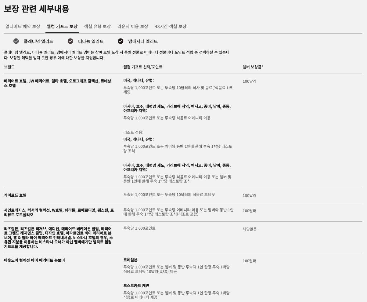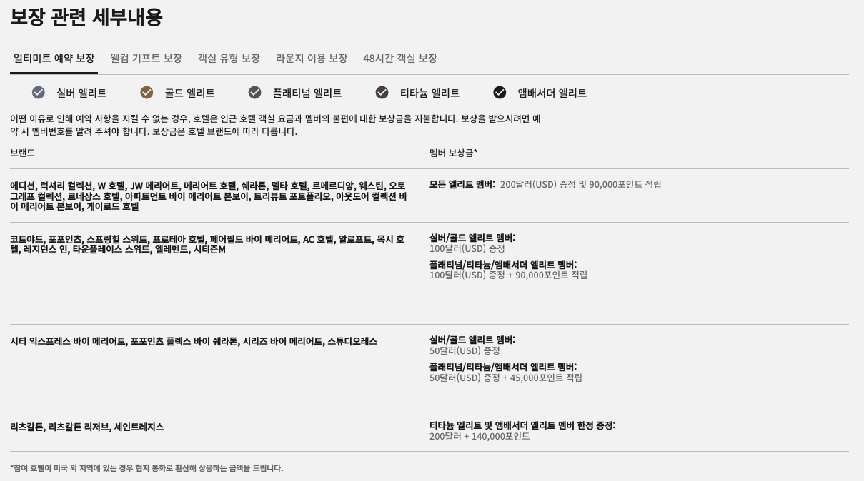 - 숙박 시점 호텔 멤버십 등급 & 혜택