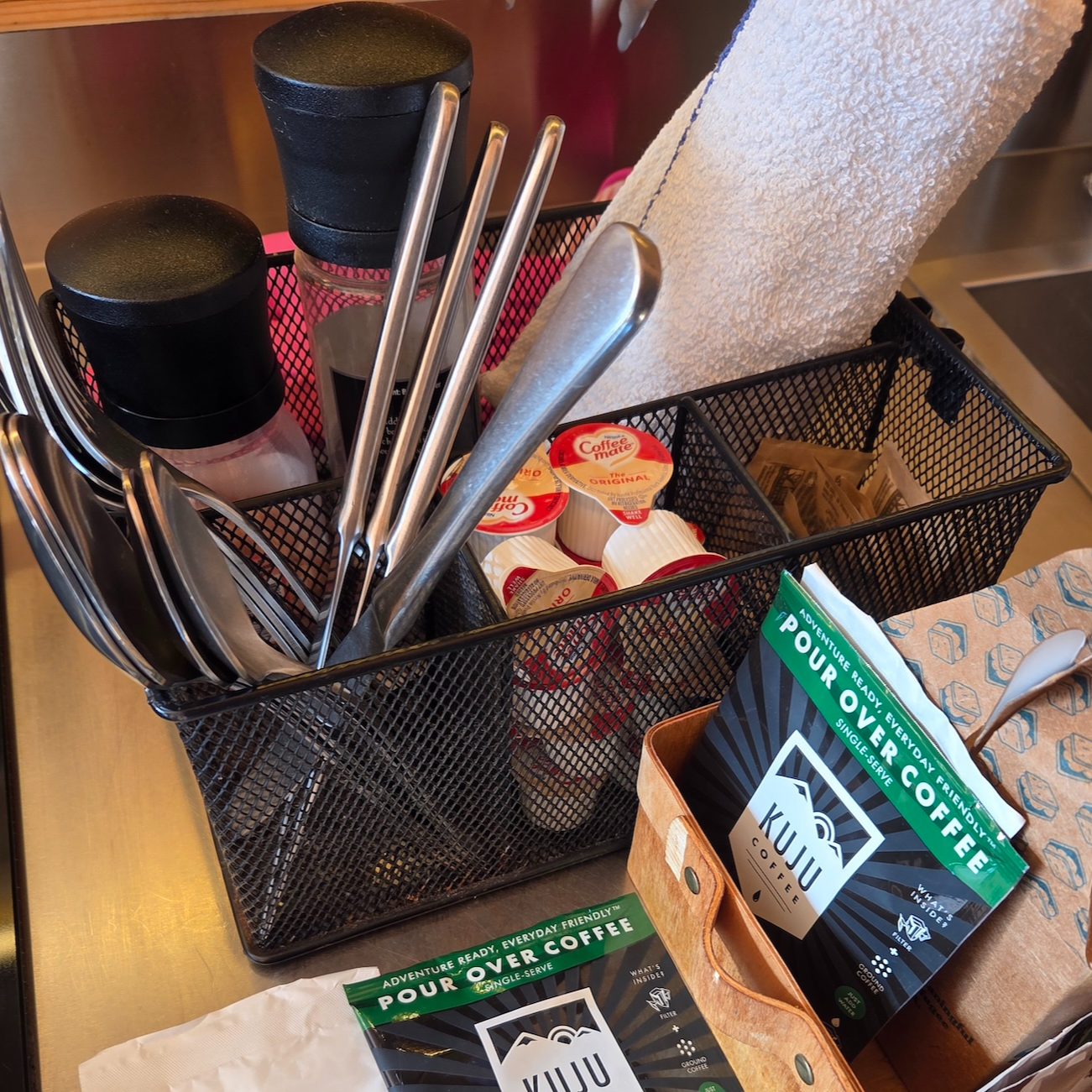 포스트카드 캐빈 힐 컨트리에서는 별도의 조식을 제공하지 않습니다. 다만 캐빈 내부에 준비되어 있는 인스턴트 오트밀 정도를 간단한 조식 대용으로 볼 수는 있을 것 같습니다. 참고로 포스트카드 캐빈 힐 컨트리 주변에는 아침 식사를 할 만한 식당이 많지 않고, 가장 가까운 옵션이 윔벌리(Wimberley) 정도에 위치해 있습니다. 따라서 번거롭게 외출하고 싶지 않으신 분들은 계란이나 빵, 시리얼 같은 간단한 식재료를 미리 준비해 오셔서 캐빈에서 아침 식사를 해결하시는 것도 좋은 선택이라고 생각합니다.
