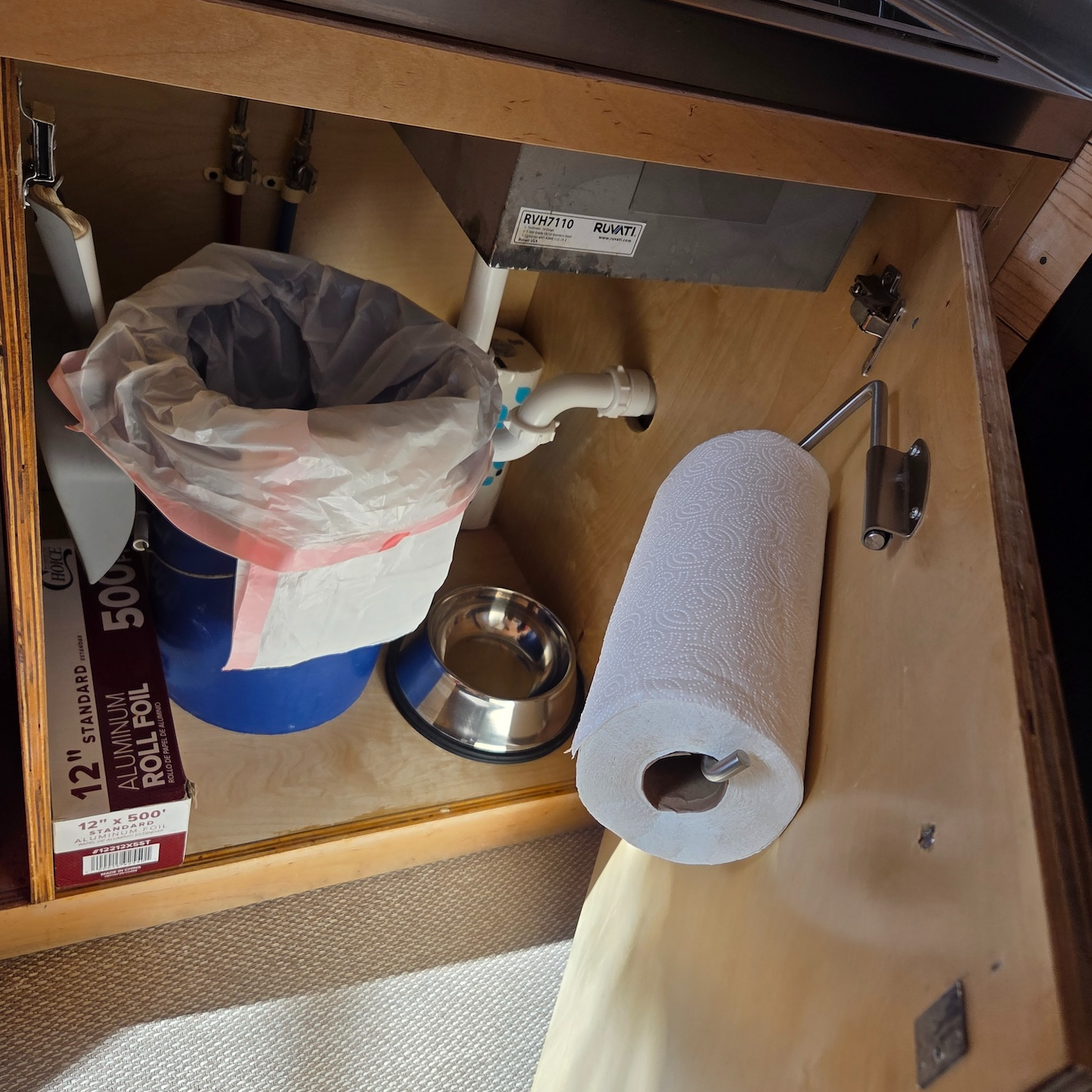 싱크대 아래에는 키친타월과 호일, 쓰레기봉투 등이 준비되어 있었고, 반려견 동반 투숙객을 위해 강아지 물그릇도 마련되어 있었습니다. 싱크대에는 수세미와 함께 손과 식기를 모두 세척할 수 있는 액체 비누가 준비되어 있었고요. 욕실에는 샴푸, 컨디셔너, 바디워시가 대용량으로 제공되었으며, 수건은 큰 수건과 손수건이 각각 4개씩 구비되어 있었고 여성용품도 함께 준비되어 있었습니다. 그 외 실내 어매니티로는 휴대용 손전등이 있었는데 디자인도 괜찮아서 야외와 실내 모두에서 유용하게 사용할 수 있었습니다.