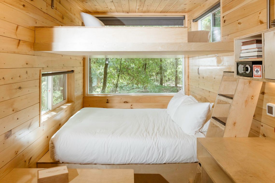 이번에 머무른 포스트카드 캐빈은 오스틴 근교 힐 컨트리에 위치한 ‘포스트카드 캐빈 힐 컨트리(Hotel Review, Postcard Cabins Hill Country)’입니다. 포스트카드 캐빈 힐 컨트리의 객실은 각각 독립적인 트레일러 형태의 캐빈으로 구성되어 있고, 총 40개의 캐빈이 위치해 있습니다. 캐빈 타입은 세 가지로, 총 투숙 정원이 2명인 1 퀸 스탠다드, 총 투숙 정원이 4명인 2 퀸 벙커베드 스탠다드, 그리고 Accessible 타입의 1 퀸 캐빈이 있습니다. 1 퀸 스탠다드는 가장 작은 14제곱미터 캐빈에 퀸 사이즈 침대 1개가 설치되어 있고, 2 퀸 벙커베드 스탠다드는 15제곱미터 캐빈에 퀸 사이즈 침대 2개가 위아래로 2층 침대처럼 설치되어 있습니다. Accessible 캐빈은 17제곱미터 크기의 캐빈에 퀸 사이즈 침대 1개가 설치되어 있으며, 휠체어 접근성을 위해 바닥이 모두 평평하게 설계되어 있는 캐빈입니다. 각 캐빈들은 침대 구성 이외에 나머지 캐빈 내부 구성이나 외부 어매니티에 큰 차이는 없습니다.