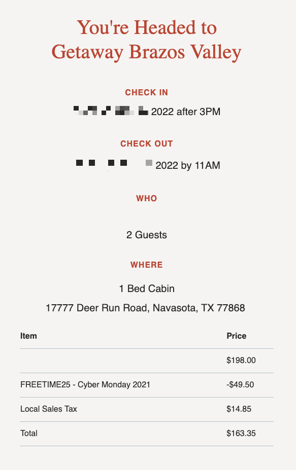 저는 이번 포스트카드 캐빈 이용이 처음은 아니었습니다. 원래 포스트카드 캐빈은 ‘겟어웨이(Getaway)’라는 이름으로 2015년에 시작되었습니다. 이후 겟어웨이에서 포스트카드 캐빈으로 브랜드명이 변경되었고, 2024년 메리어트 본보이 포트폴리오에 편입되면서 포스트카드 캐빈 아웃도어 컬렉션이라는 이름을 가지게 되었습니다. 저는 겟어웨이 시절에 몇 차례 포스트카드 캐빈을 이용한 적이 있었는데, 당시에는 힐 컨트리가 아닌 휴스턴 근교의 ‘Brazos Valley’ 지역에 위치한 캐빈을 주로 이용했었습니다. Brazos Valley 캐빈은 힐 컨트리보다 훨씬 울창한 숲속에 위치해 있다는 장점이 있었지만, 그만큼 벌레가 많다는 단점도 있었습니다. 그럼에도 불구하고 전반적인 경험은 당시 겟어웨이 시절과 현재의 포스트카드 캐빈 아웃도어 컬렉션이 큰 차이 없이 비슷한 수준으로 유지되고 있는 것 같았습니다. 물론 가격은 예전에 비해 꽤 많이 오른 편이지만요. (당시에는 1박에 약 80~90 달러 수준으로 이용 가능했습니다) 포스트카드 캐빈 아웃도어 컬렉션은 텍사스 외에도 미국 전역에 다양한 지역에 위치하고 있으니 거주하시는 지역에서 가장 가까운 포스트카드 캐빈 아웃도어 컬렉션 프로퍼티를 찾아보시는 것도 좋을 것 같습니다. 개인적으로는 가을에 단풍이 예쁜 뉴햄프셔에 있는 'Postcard Cabins Blake Brook, Outdoor Collection by Marriott Bonvoy'에 투숙해 보고 싶습니다.
