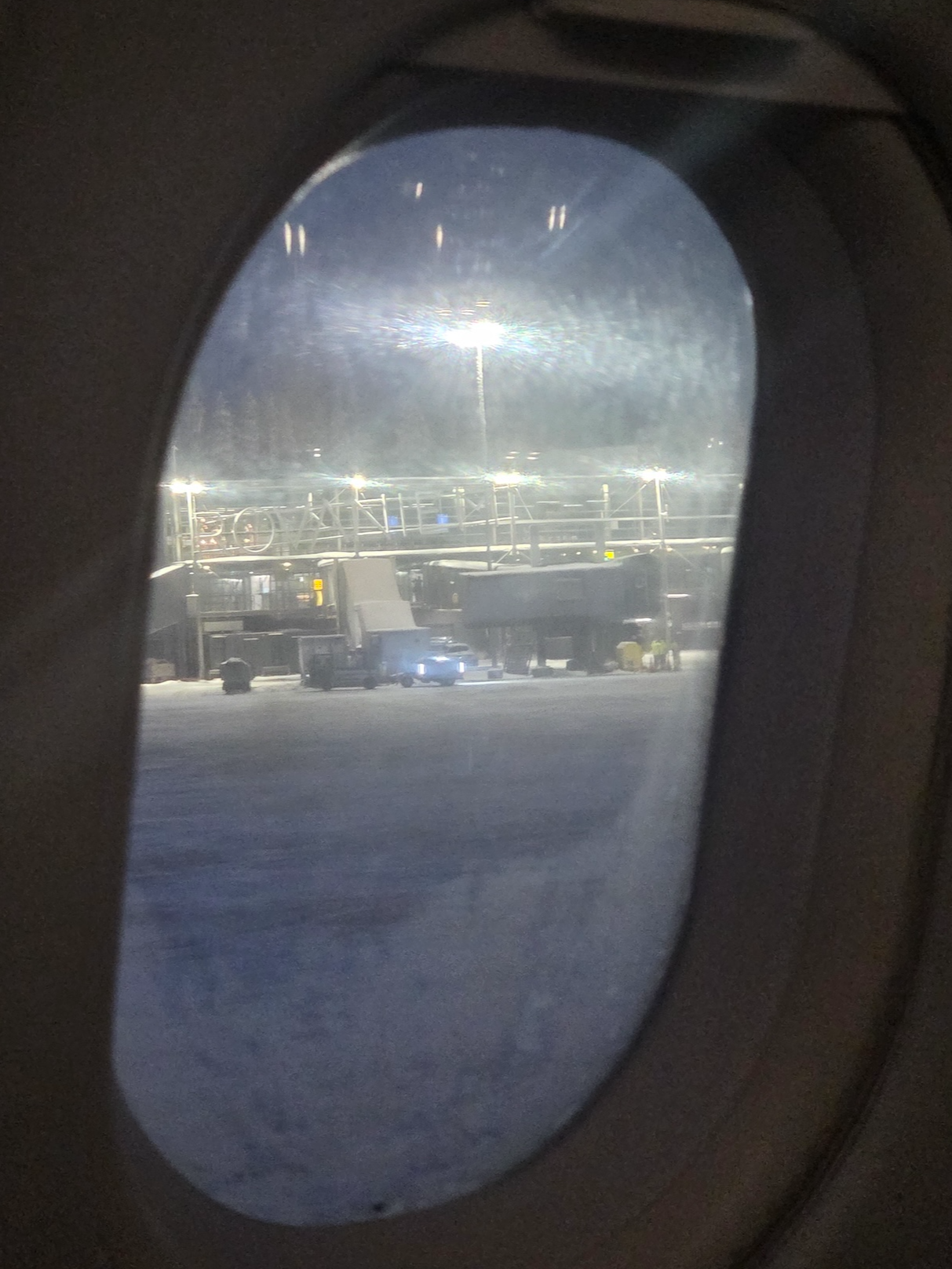 제가 탔던 AY541편은 헬싱키 반타 공항에서 출발한지 약 1시간 후에 로바니에미 공항에 도착했습니다. AY541편은 원래 로바니에미 공항에서 약 45분 머문 후에 출발한 예정이었는데요, 실제로는 1시간 20분이 지난 오전 9시 53분에 이륙을 했습니다. 사실 저도 테크니컬 랜딩을 하는 직항, 1 스탑 항공편이 처음이라 로바니에미에서 경유하는 과정이 상당히 흥미로웠습니다.