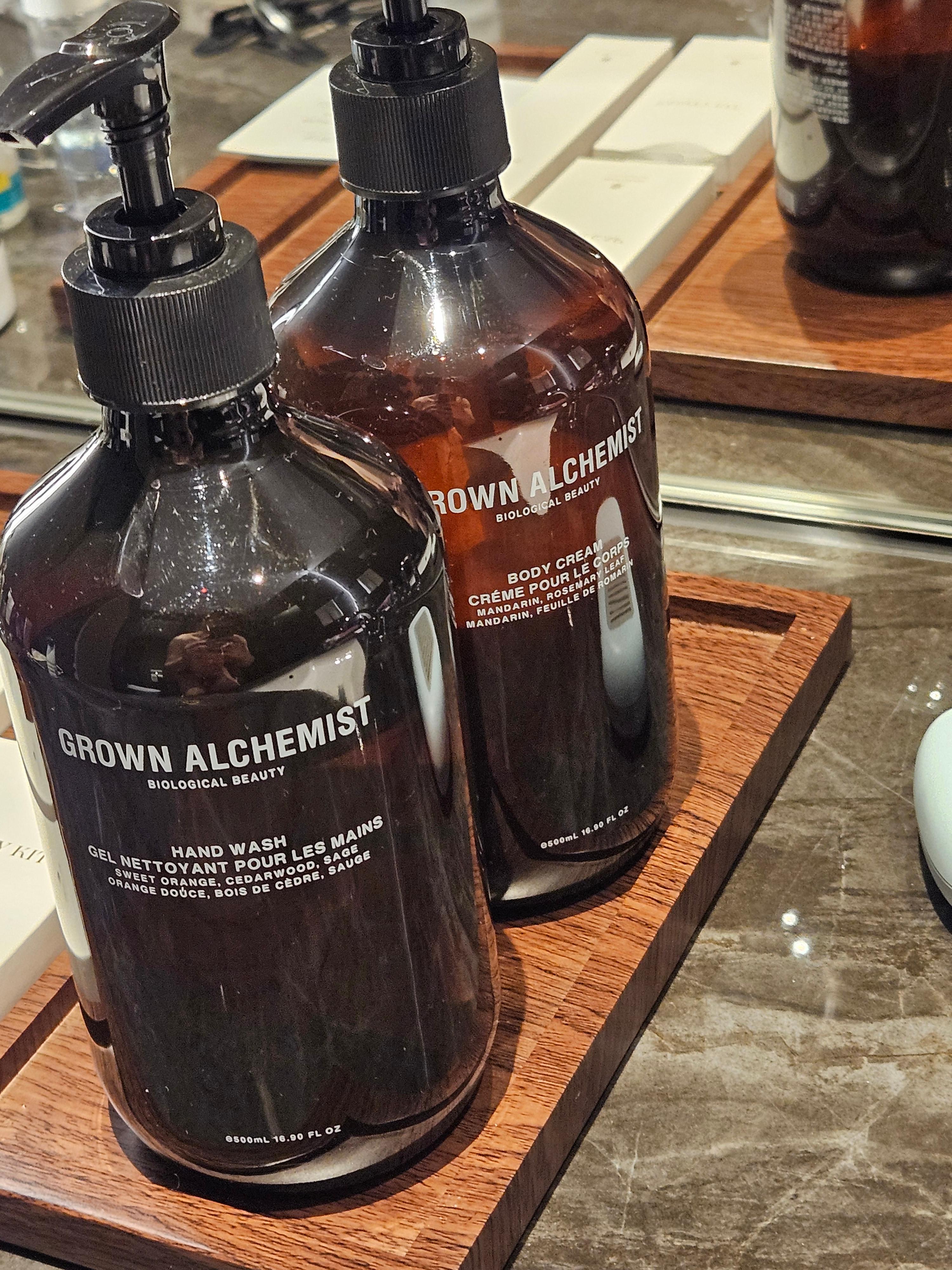 욕실 어매니티로는 그로운 알케미스트 제품이 대용량으로 제공이 됩니다. 이제 칫솔과 치약 면도기 등은 객실에 기본으로 있지 않고 프런트 데스크에 요청 시 유료로 제공이 되고요, 화장솜과 면봉은 제공이 됩니다. 이 외에 슬리퍼, 배스로브, 슈 미트도 제공이 됩니다.