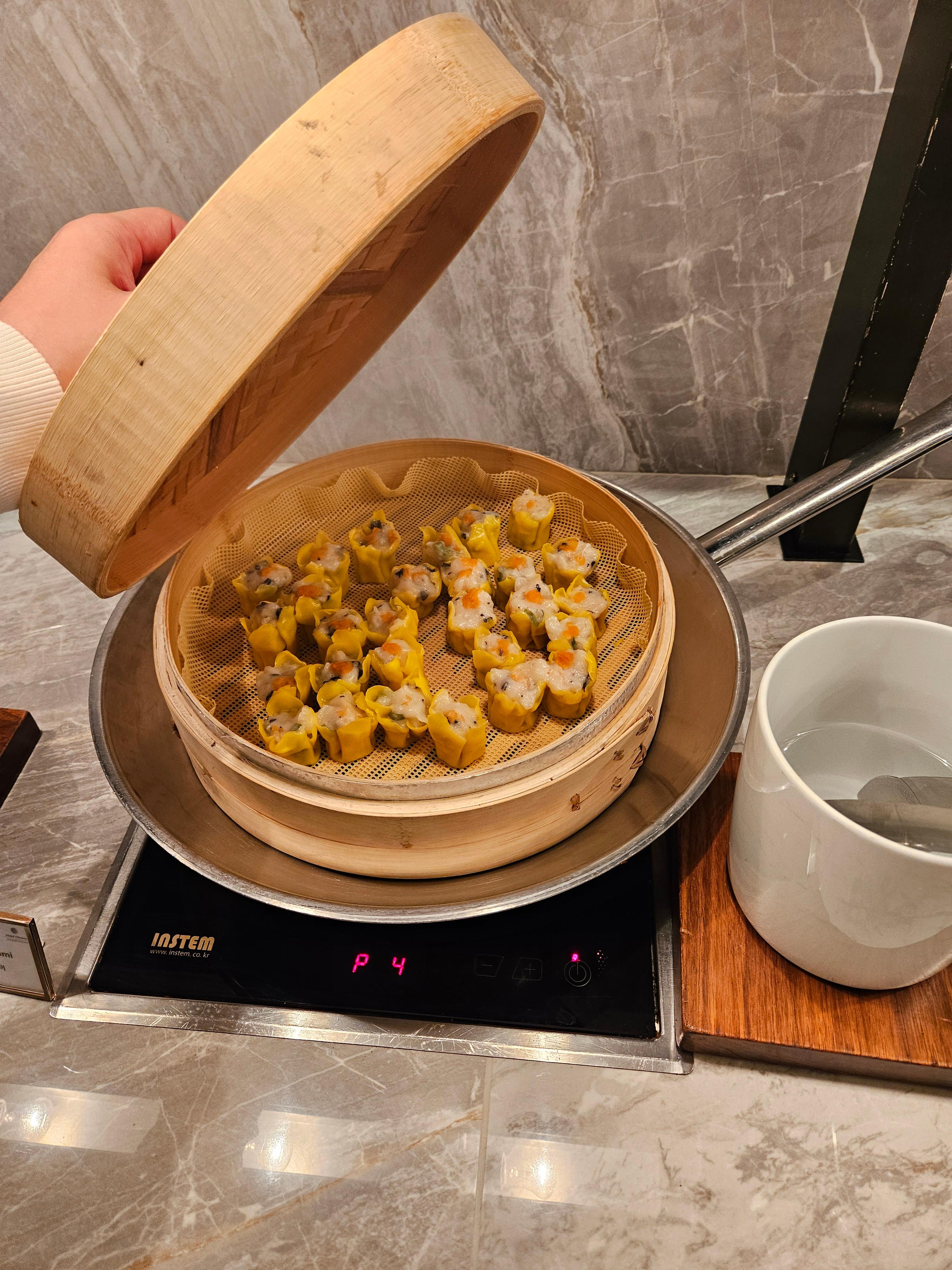 중식 메뉴로는 딤섬 2종류와 볶음밥이 있습니다. 개인적으로는 호텔 오노마 조식 뷔페에서 가장 아쉬운 점이 바로 이 딤섬인 것 같습니다. 샤오롱바오는 안에 육즙이 거의 없었고 집으면서 딤섬 피가 쉽게 찢어져서 매우 조심스럽게 집어야 했고, 해물 슈마이 같은 경우도 새우가 얼마나 들어갔는지는 모르겠지만 제가 예상한 그 탱글한 텍스쳐가 아니라 아쉬웠습니다.