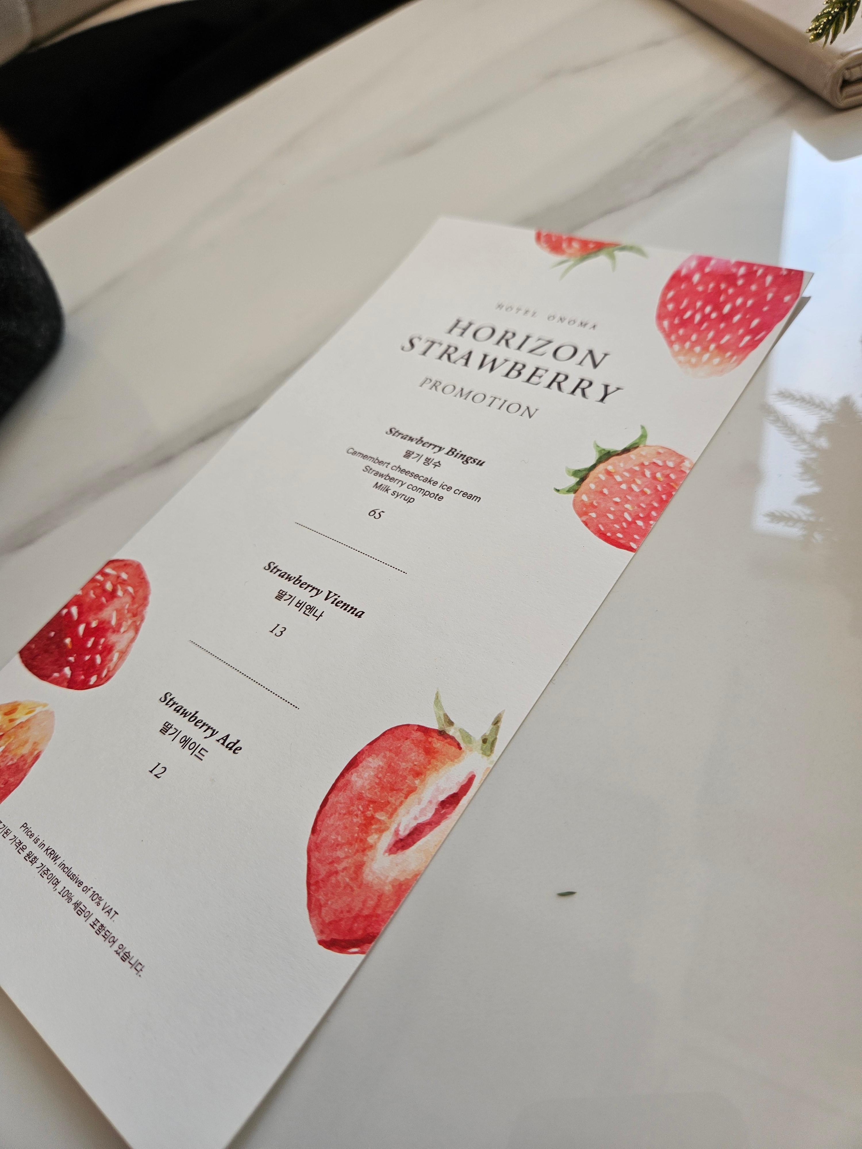 호텔 내부 시설로는 수영장과 피트니스 센터, 사우나가 있습니다. 이 중 수영장과 피트니스 센터는 투숙객은 무료로 이용할 수 있으며 사우나는 유료로 제공이 됩니다. 호텔 오노마의 수영장과는 참 인연이 없는 게, 지금까지 4번 방문하면서 10박 정도를 했는데, 이런저런 이유로 수영장을 이용해 본 적은 없었습니다. 이번에도 투숙 중에 수영장 정기점검일이 껴 있어서 또 사용을 못했습니다. 사우나도 이용해 본 적이 없고요. 피트니스 센터는 종종 방문하는데, 피트니스 센터에는 외부에서 신던 신발은 신지 못하게 하는 정책이 있습니다. 따라서 실내용 운동화를 챙겨가야 합니다. 호텔 오노마의 피트니스 센터에는 테크노 짐 기구들이 있고 삼성 헬스 연동도 되어서 항상 편리하게 이용하고 있습니다. 제가 방문했을 때는 1층의 카페에서 딸기 빙수를 팔고 있기에 먹어봤습니다.