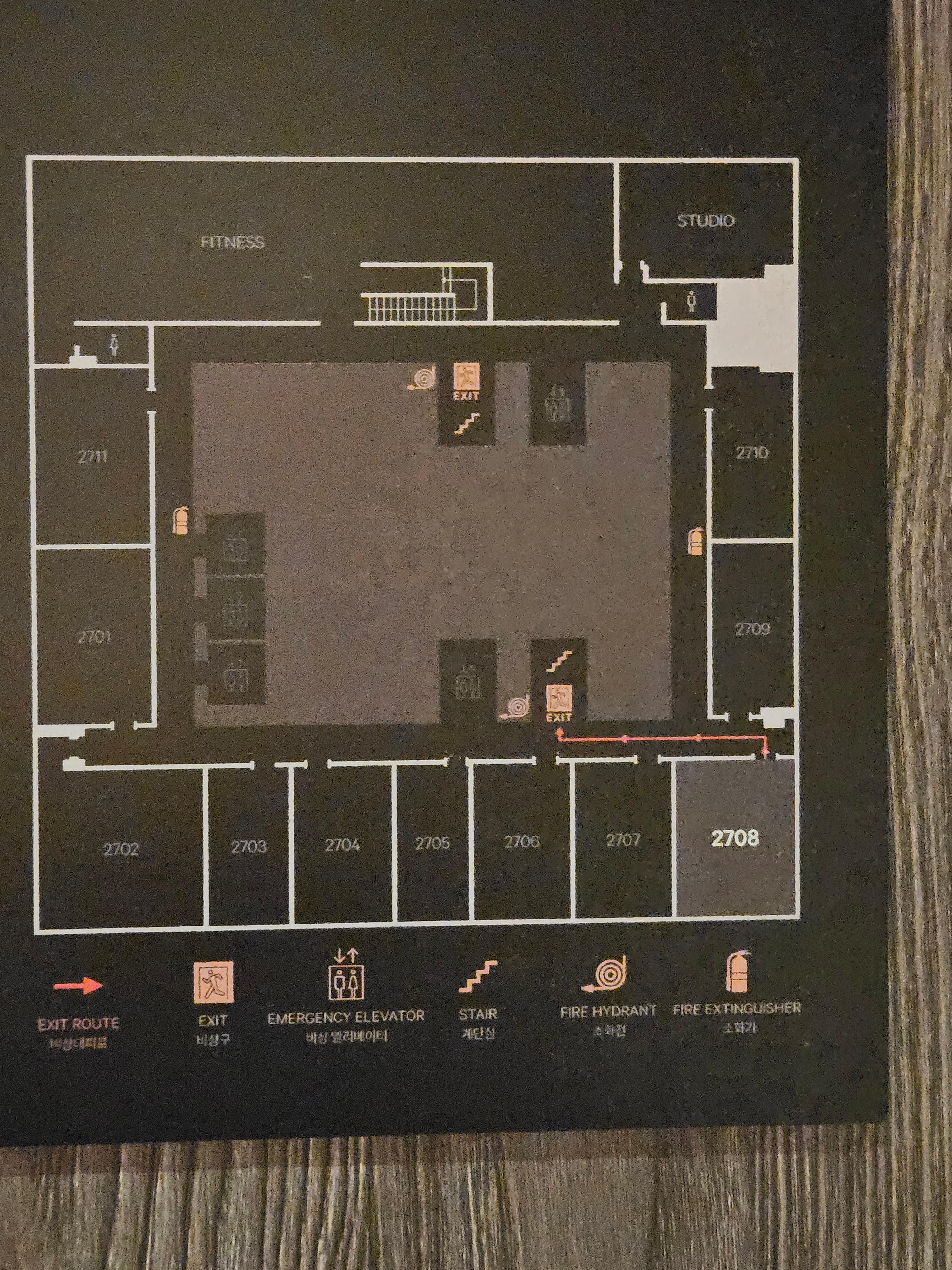 이번 숙박에서는 27층에 위치한 2708호 프리미어 코너 룸을 이용했습니다. 항상 30층 중반대의 방을 배정받았는데 이번에는 상대적으로 낮은 층을 배정받았습니다. 타워 건물 중 26층부터 객실이 위치하고 있으니 사실상 가장 낮은 층이었지만, 대전에 고층 빌딩이 많이 없고 호텔 앞과 뒤, 양옆으로 높은 건물이 없기에 27층 객실 또한 꽤 괜찮은 전망을 보여줬습니다.