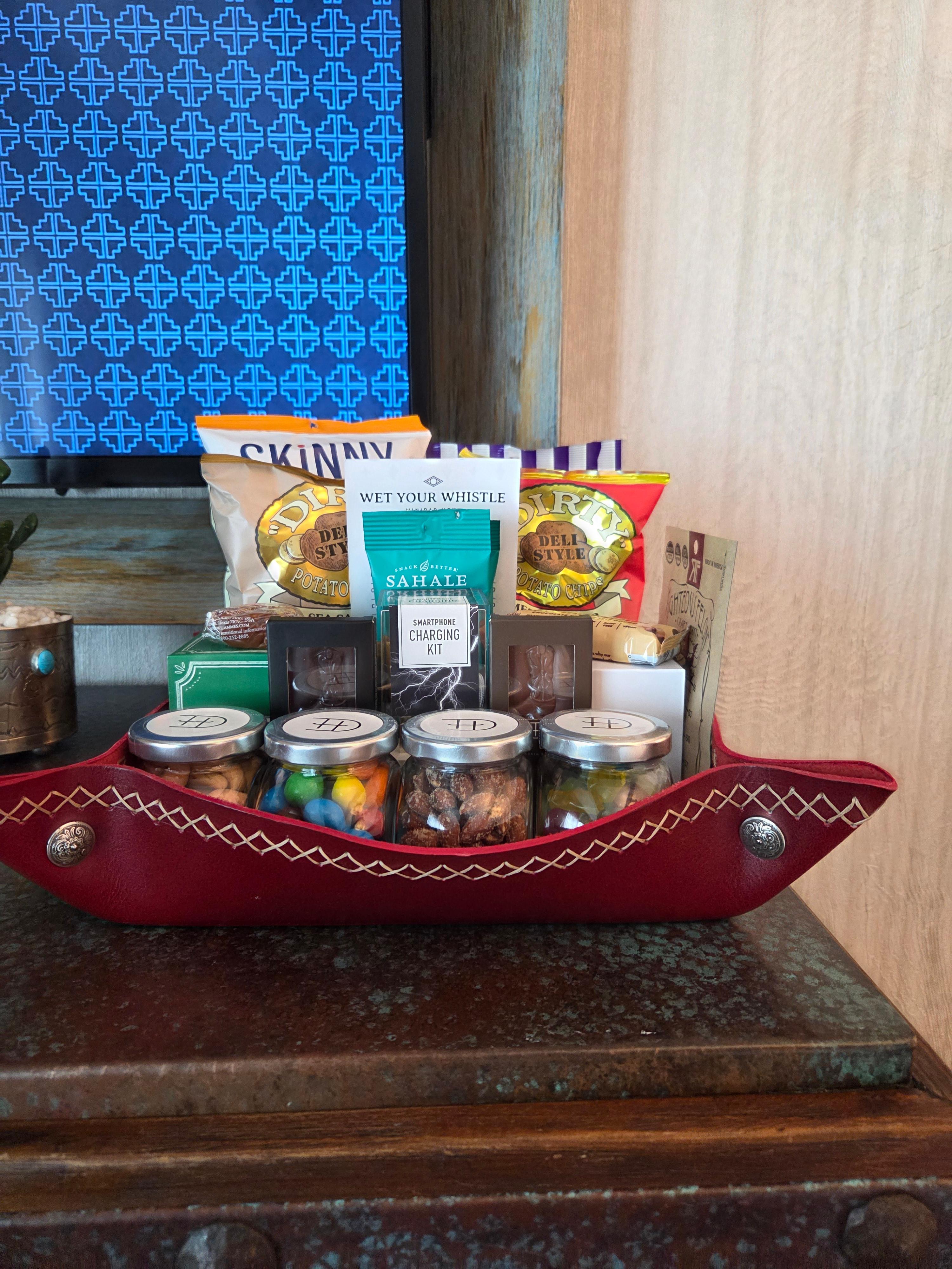 호텔 드로버 오토그래프 컬렉션의 기본 어매니티로는, 네스프레소 머신과 버츄오 캡슐 6개 (에스프레소, 디카페인, 블랙커피 각각 2개씩), 잉글리시 브렉퍼스트와 얼그레이 티백 2개씩, 약 350ml 정도 되는 물 2개가 커피 스테이션에 위치해 있었습니다. 철제 머그컵 4개에 더불어 종이컵도 4개가 있어 커피를 내려서 밖으로 가지고 나가기 좋아 보였습니다. 옷장에는 다림판과 다리미, 캐리어 거치대, 우산, 금고가 기본적으로 위치해 있었고, 커피 스테이션 아래의 냉장고는 미니바 냉장고로 사용되고 있었는데 미니바 아이템 또한 샤이너 맥주와 렌치 워터 등 텍사스 느낌이 물씬 풍기는 아이템들로 챙겨있었습니다. 그 외의 인상적인 룸 어매니티로는 마셜 스피커가 있었습니다.