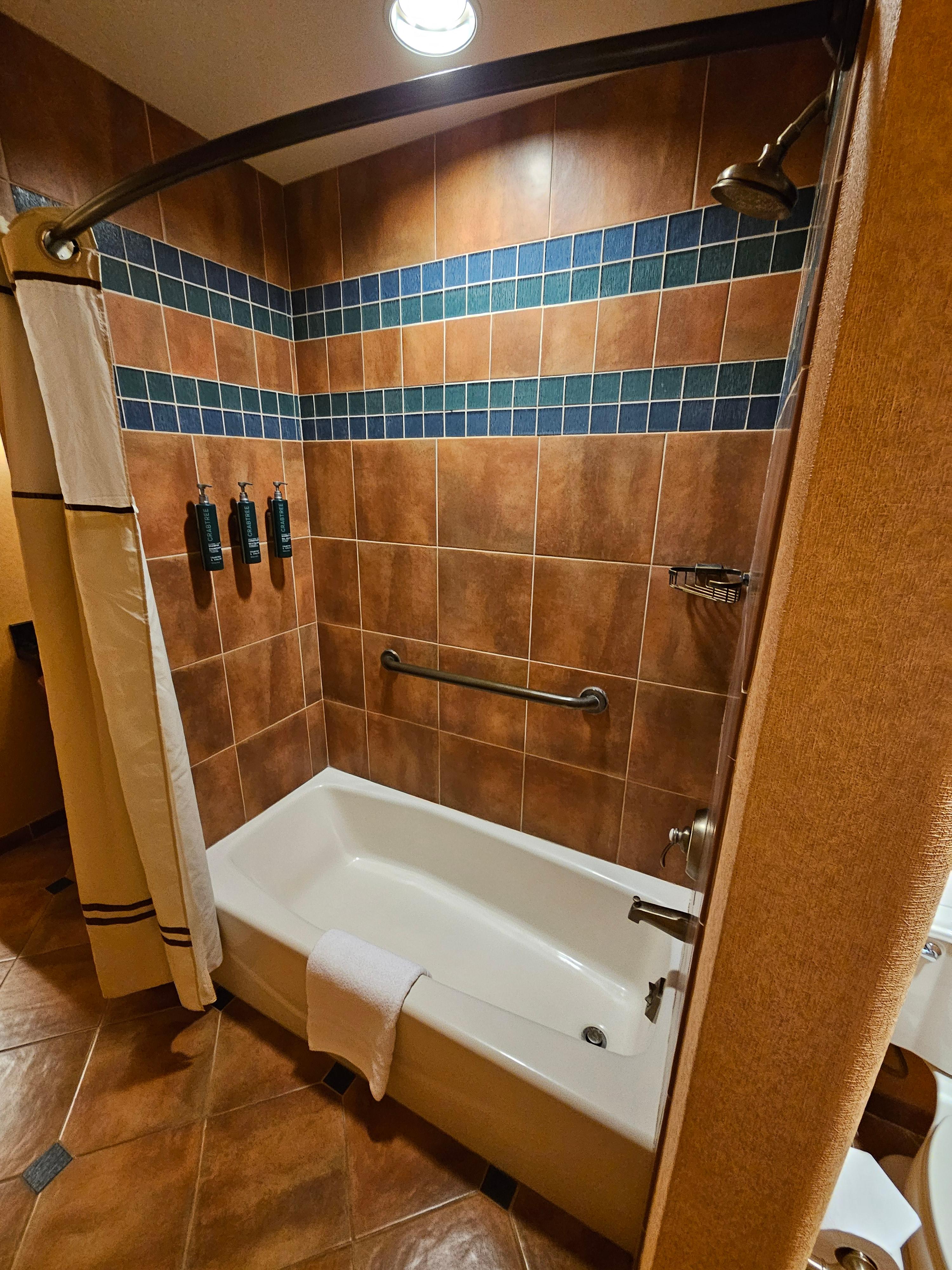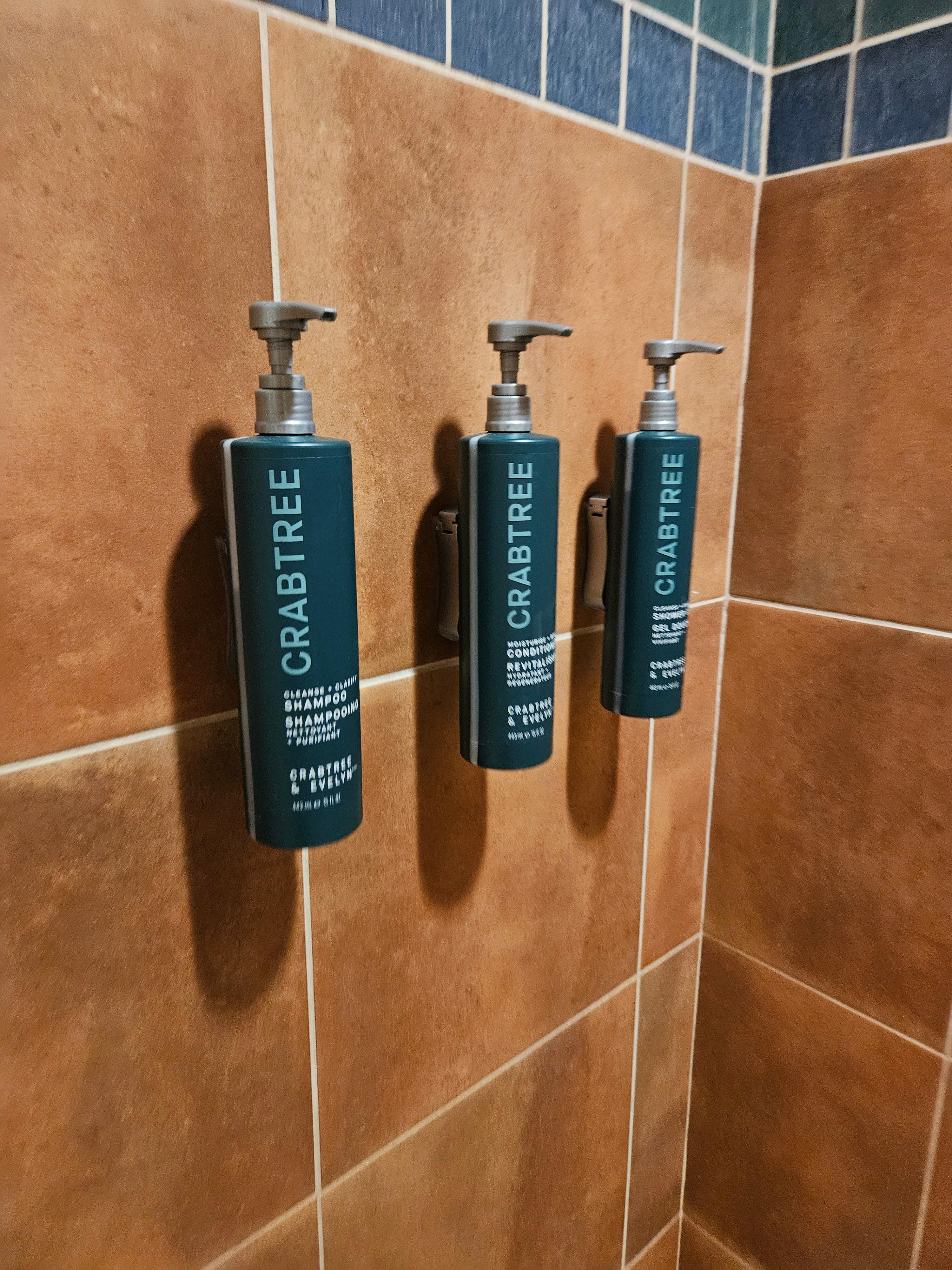 대부분의 미국 호텔들이 그렇지만 어매니티는 간소한 편이었습니다. 힐튼 싼타페 버팔로에서는 다른 힐튼 호텔들처럼 Crabtree 브랜드 제품을 사용하고 있었습니다. 샴푸, 컨디셔너, 샤워 젤과 바디 로션이 대용량으로 비치되어 있었고, 핸드워시 대신 비누가 준비되어 있었습니다. 수건의 경우 오래 사용했는지 부드럽기보다는 뻣뻣해서 이 부분은 조금 아쉬웠습니다.