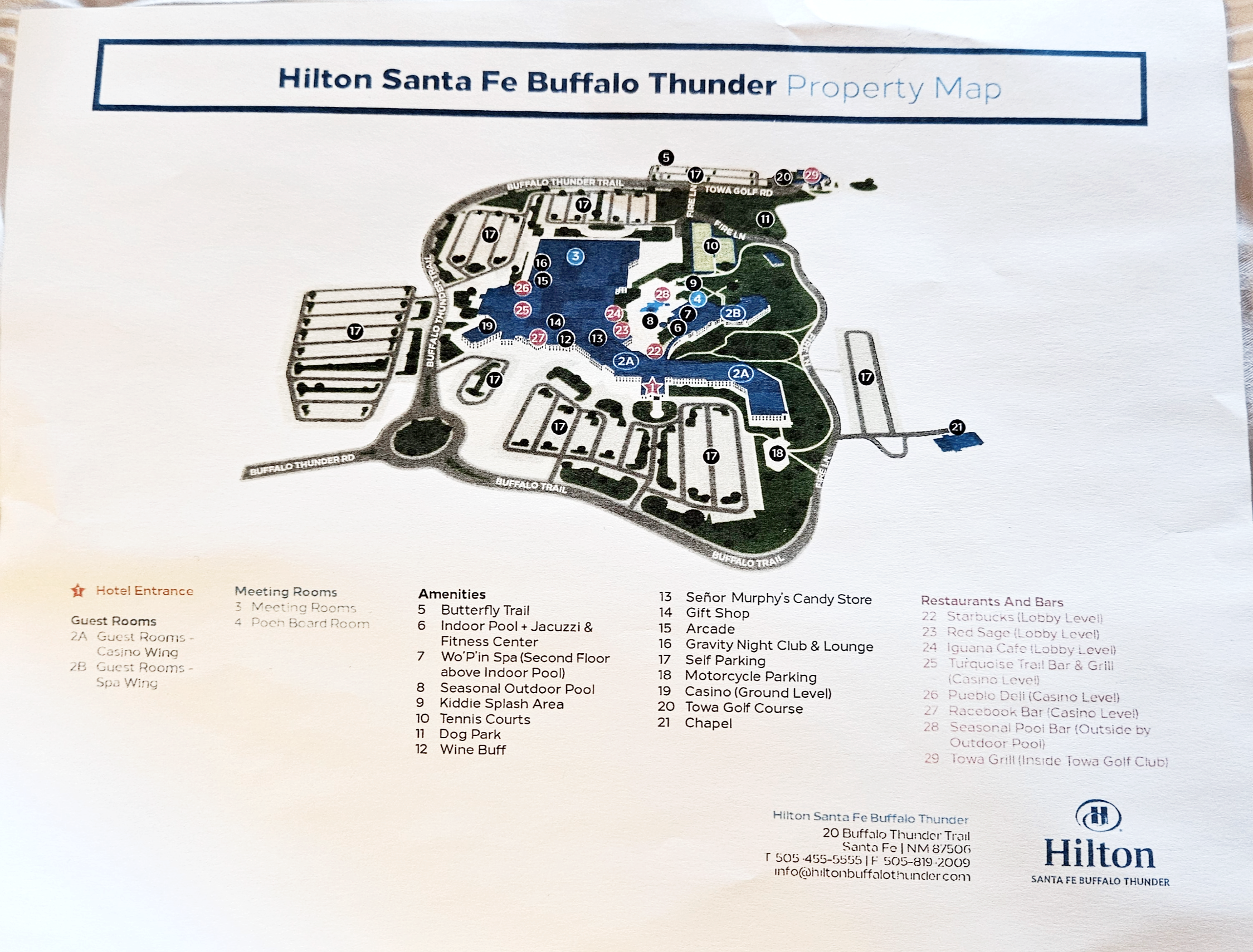이 부분이 참 할 말이 많은 부분인 것 같습니다. 먼저 힐튼 싼타페 버팔로 호텔에 대해서 말해보자면, 아메리칸 원주민이 소유한 리조트형 호텔로 호텔 내에 카지노, 골프장, 수영장, 식당 등등 많은 시설을 보유했고, 호텔도 엄청 큰 편입니다. 문제는, 비수기에 사람이 없을 때 이 모든 시설들을 운영할 필요는 없다고 생각했는지 닫는 시설들이 꽤 있고, 그중에 식당을 가장 많이 닫습니다. 특히 막 주말이 끝난 월요일과 화요일에 말이죠.