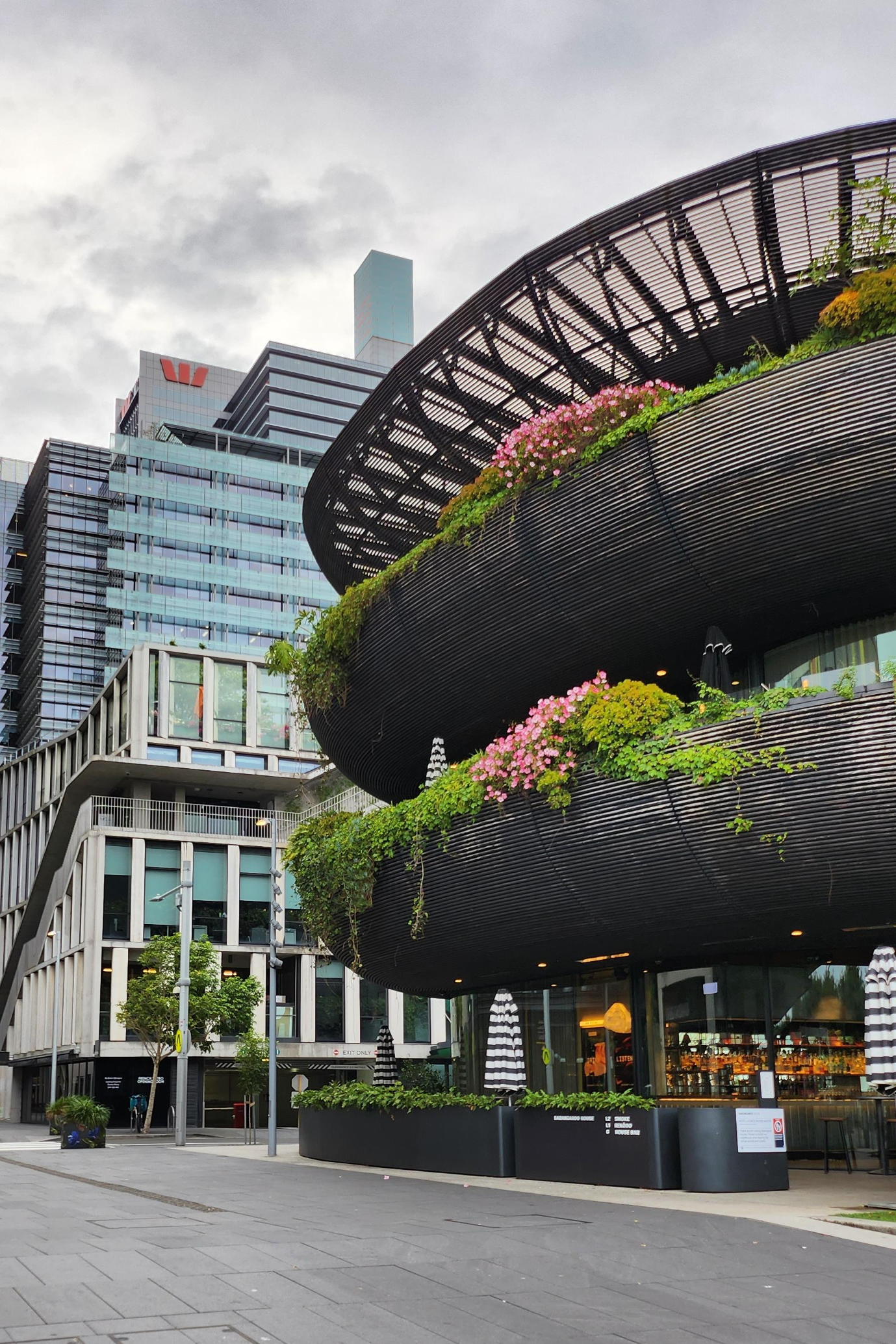 시드니 하버의 옛 부두들을 지나면 바랑가루의 북쪽 끝인 바랑가루 리저브(Barangaroo Reserve)라는 공원을 마주합니다. 바랑가루 리저브는 원래 컨테이너 터미널로 사용한 매립부지가 있는 지역이었는데, 컨테이너 터미널이 들어가기 이전의 모습으로 복원하는 걸 목적으로 해 개발된 수변공원입니다5. 바랑가루 리저브를 중간지점 이상 지나면 본격적으로 바랑가루에 들어선 고층건물들이 눈에 들어옵니다. 롤렉스의 로고와 비슷하게 생긴 왕관이 붙어있는 건물은 크라운 타워 시드니로 고급 호텔이 들어와 있습니다. 그 옆으로는 사무실과 주상복합으로 이용되는 건물인 인터내셔널 타워가 들어서 있습니다. 그리고 이 두 건물 사이에는 하이테크 건축의 대가라고 불리는 렌조 피아노가 설계한 원 시드니 하버6가 건설 중에 있습니다. 사실 인터내셔널 타워도 하이테크 건축으로 유명한 리처드 로저스가 설계했고7, 크라운 타워도 영국의 유명한 건축사무소인 윌킨슨 에어 아키텍처에서 설계한 건물8입니다. 이 정도면 사우스 바랑가루는 최신 도시재생 프로젝트에서의 트렌드를 볼 수 있는 지역이 아닐까 개인적으로 생각해 봅니다.