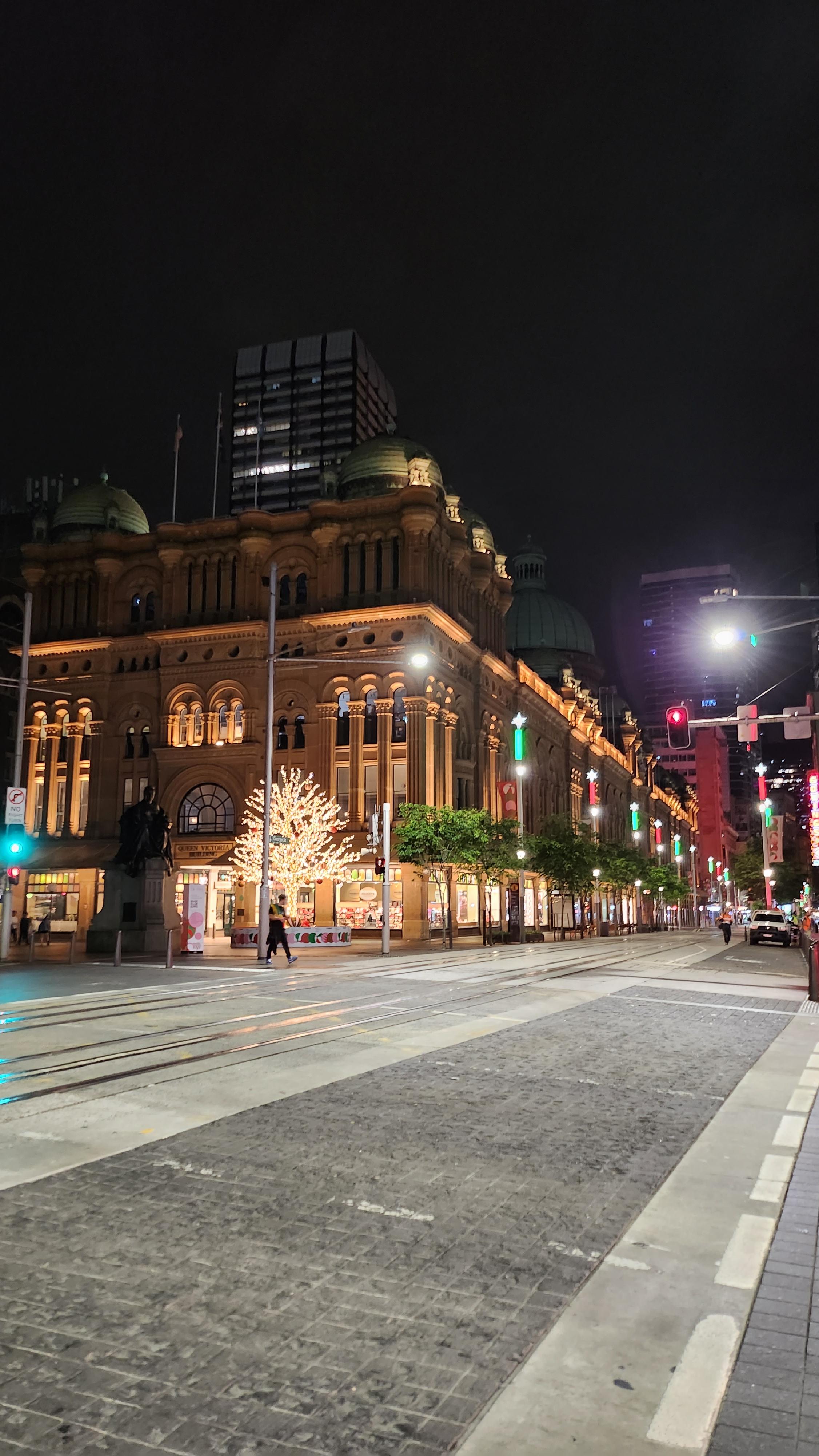 QVB에서 시드니 오페라 하우스까지 시드니 중심업무지구를 관통하는 거리는 밤에는 낮과 다른 또 다른 매력을 뽐냅니다. 새벽 4시 30분에 길을 나섰음에도 생각보다 위험하다는 생각은 들지 않습니다. 시드니 타운홀과 QVB의 외벽과 크리스마스 장식, 조명들이 합해져 색다른 매력을 뿜습니다.